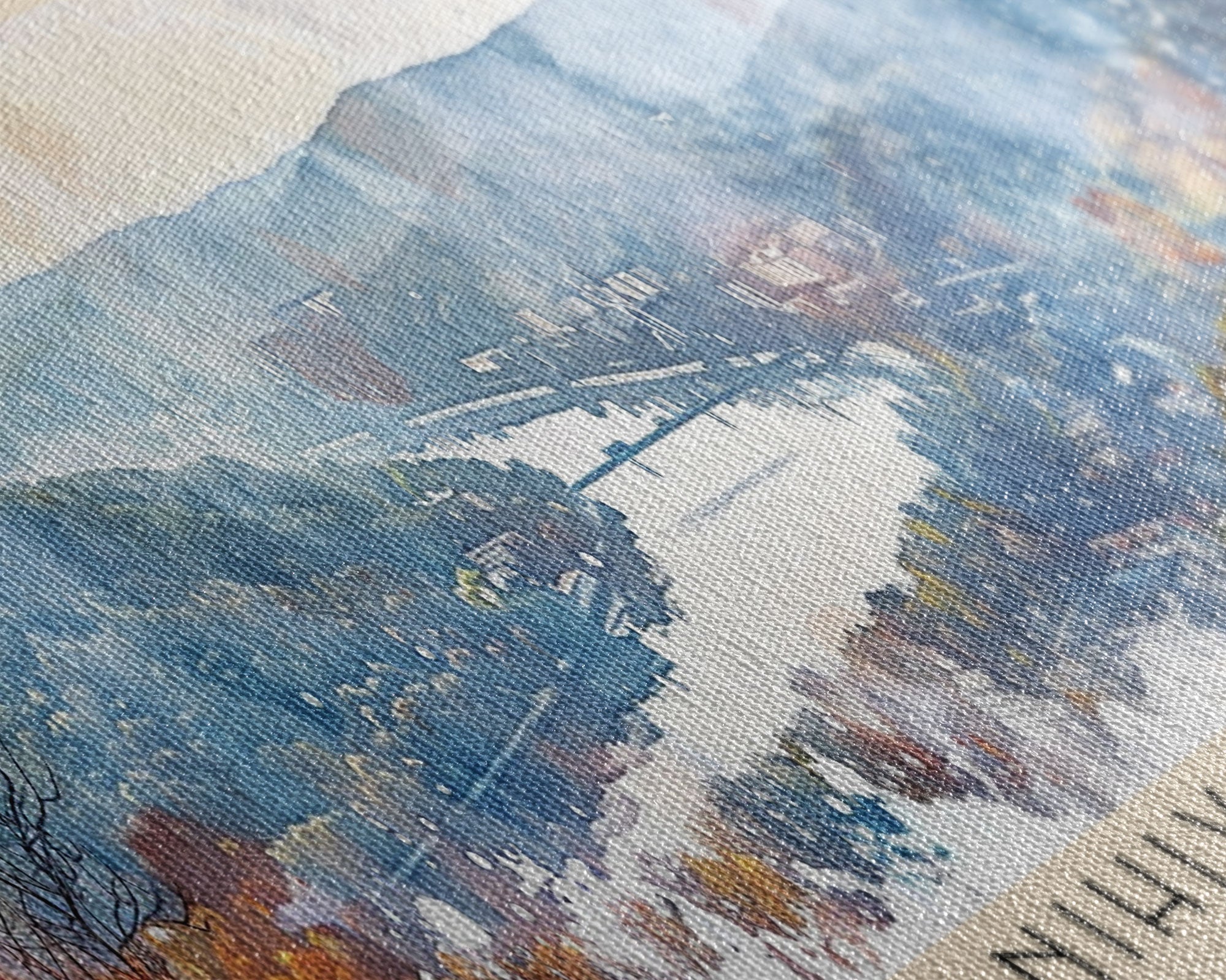 Most of our canvases are made in the USA, with the exception of canvases ordered with the light oak unstained frames, and any large canvases (24x48, 30x60, 16x48 and 20x60) ordered WITH a frame. These are temporarily made in and shipped from Europe, while we try to find a more consistent supplier in the USA.
