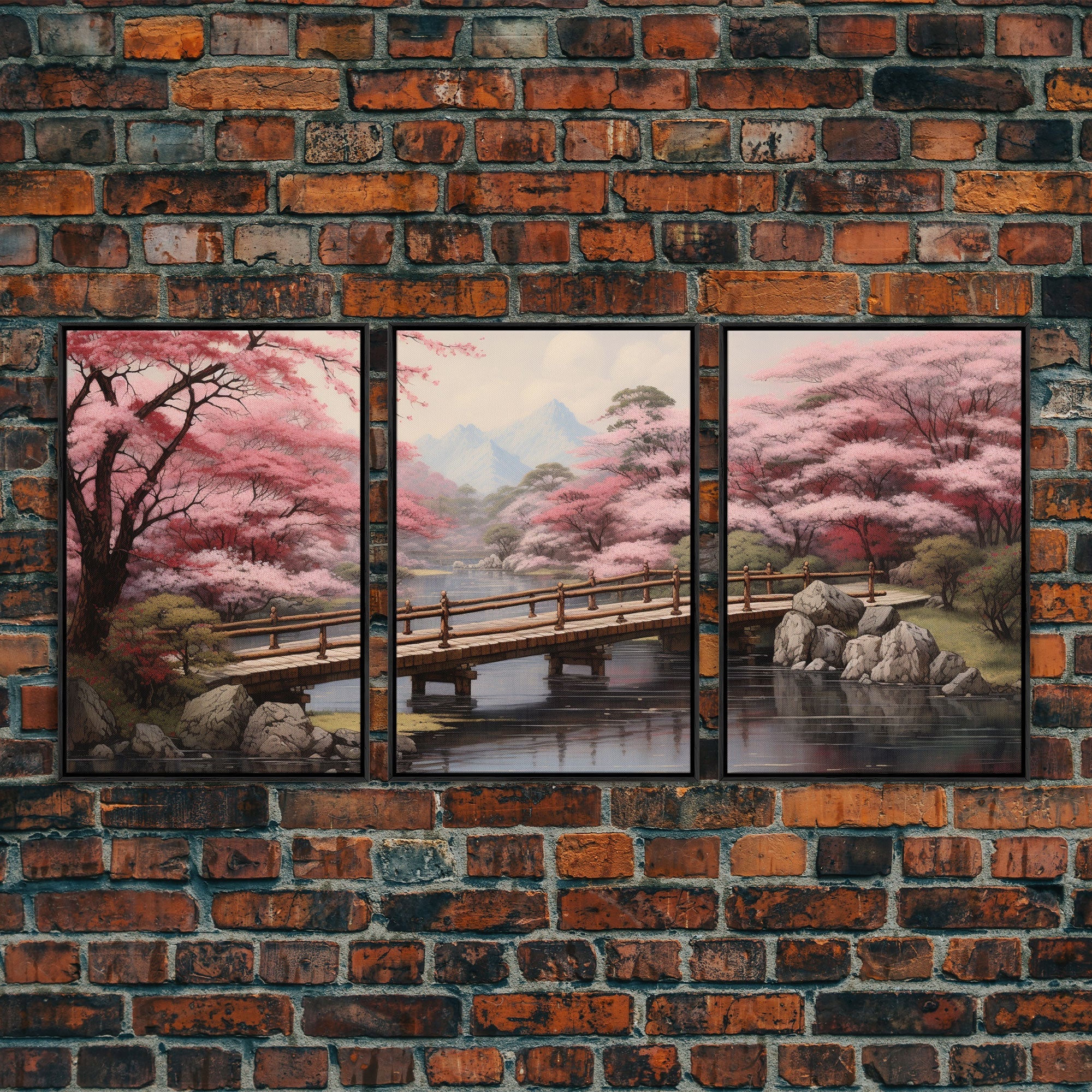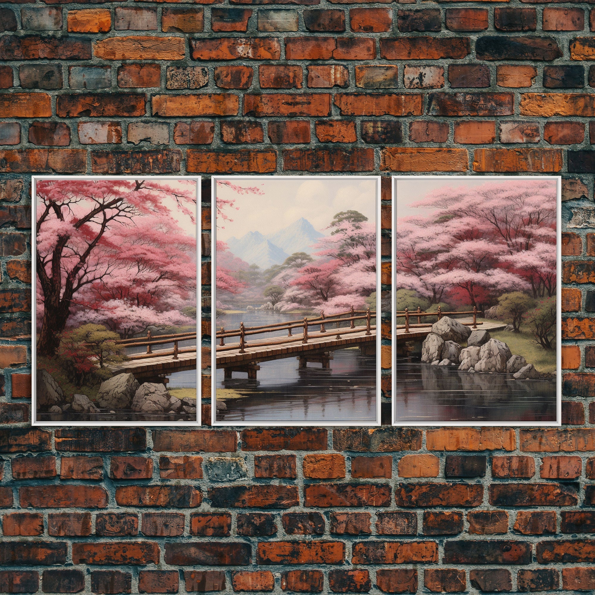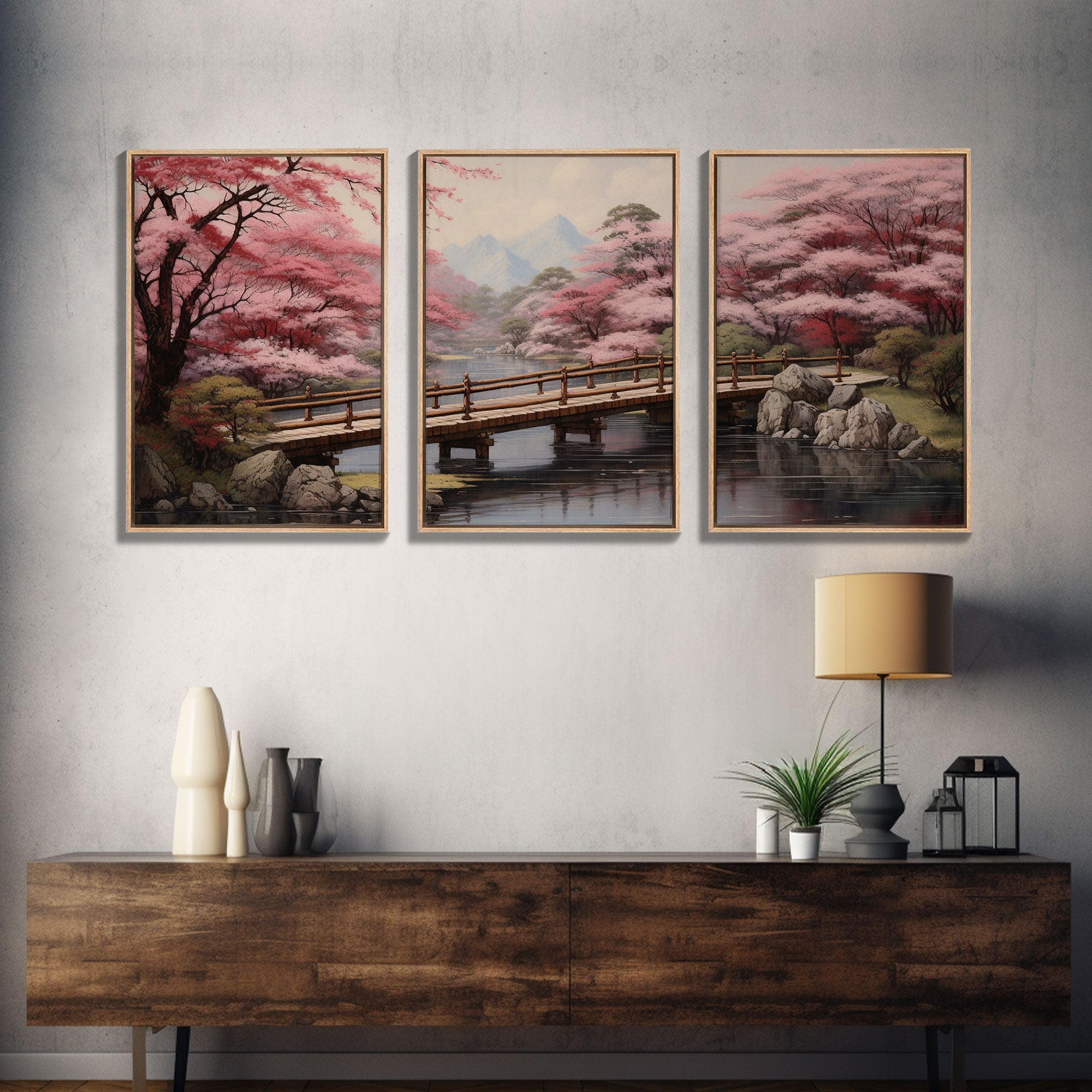 Cherry Blossom Wall Art, Japanese Print, Landscape Wall Art, Canvas Print, Wall Art, 3 Piece Wall Art, Farmhouse Wall Decor, Above Bed Art