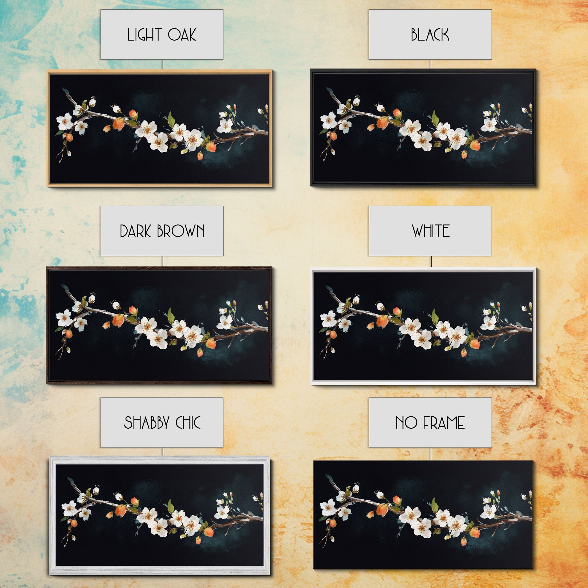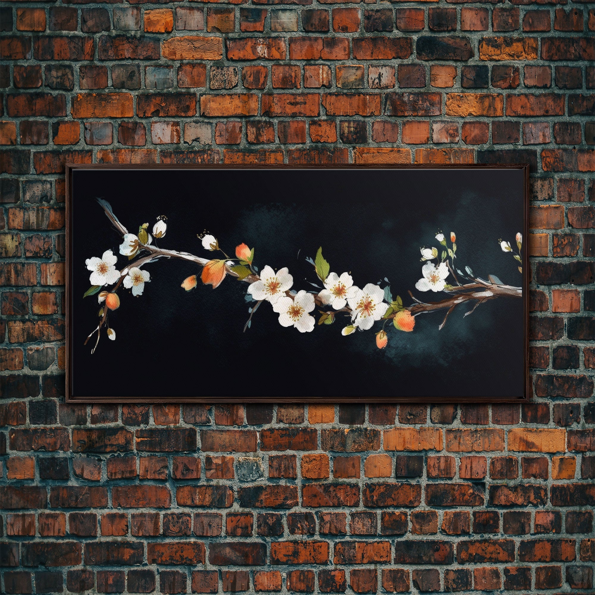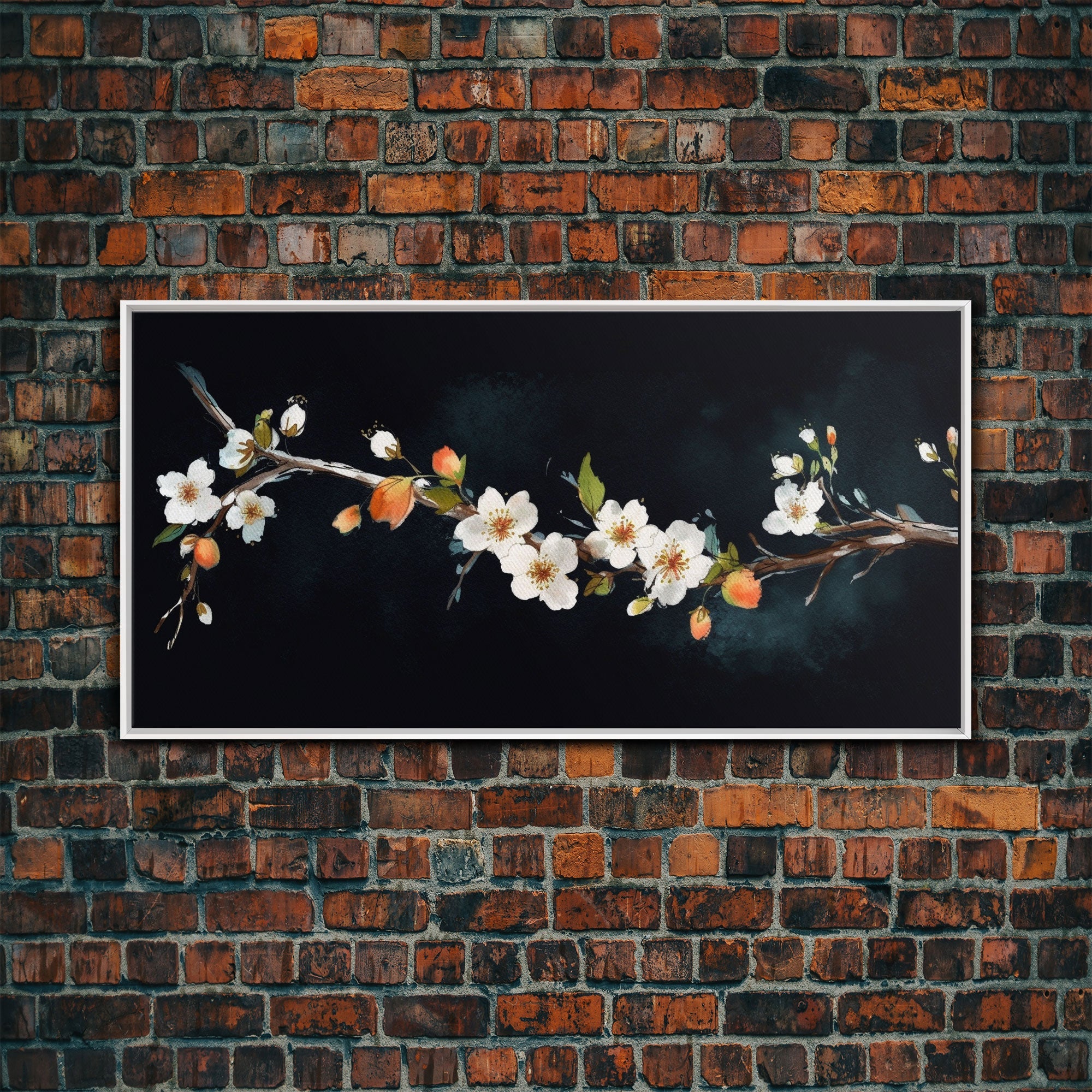 Cherry Blossoms Wall Decor, Floral Wall Art, White Flowers Wall Art, Panoramic Wall Decor, Canvas Print, Wall Art, Framed Canvas Art
