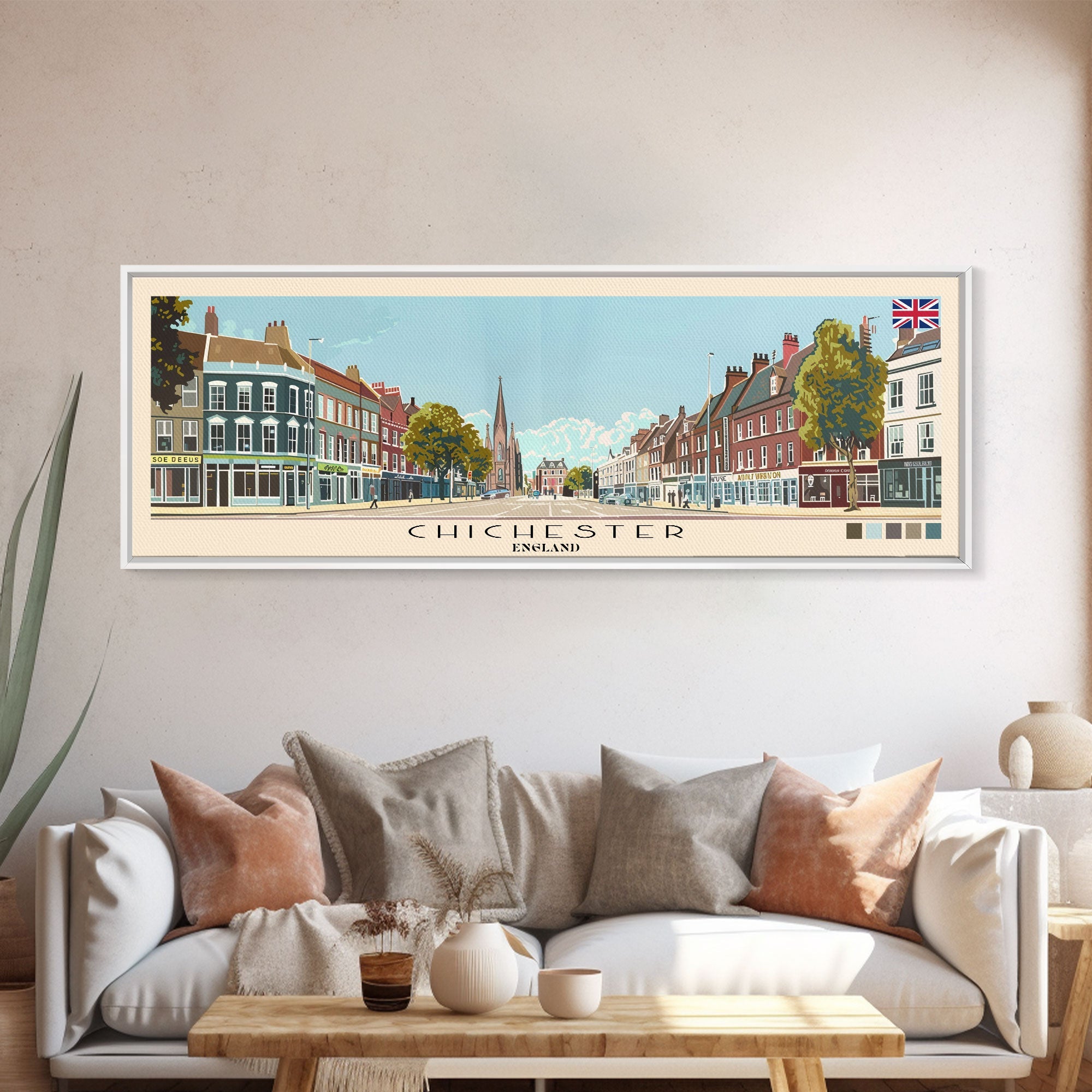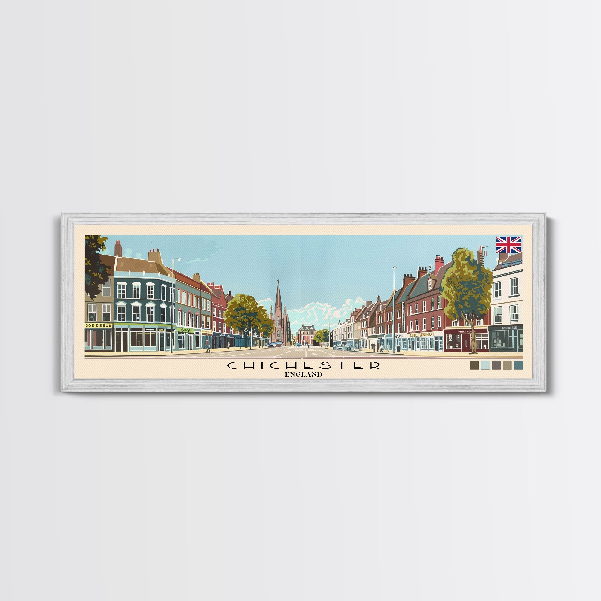 Chichester, England Panoramic Canvas Print, Chichester, England Painting, England Art, Chichester Travel Poster, Travel Art, Housewarming Gift