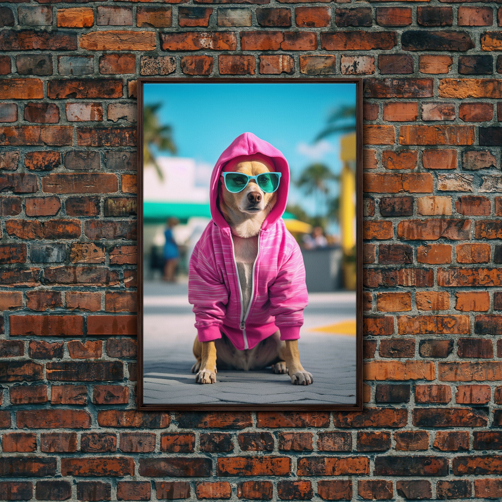 Chihuahua Wall Print, Copy of Dog Sunglasses, Pink Hoodie, Dog Wall Art, Funny Wall Art, Framed Wall Art, Framed Canvas, Wall Print
