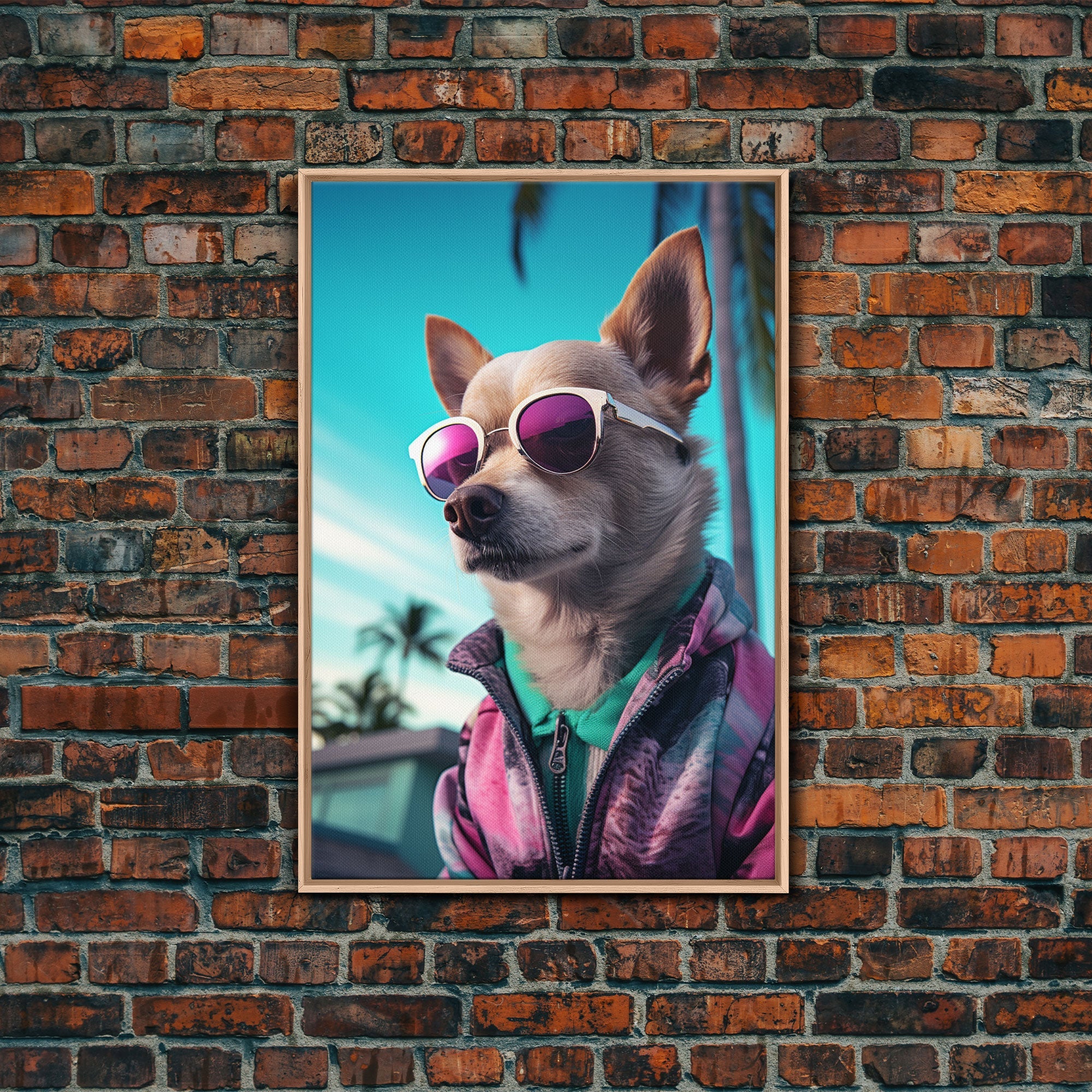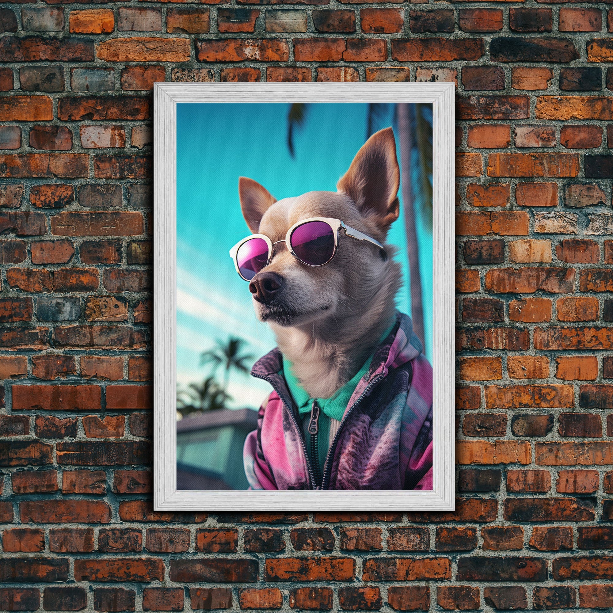 Chihuahua Wall Print, Dog Pink Sunglasses, Dog Wall Art, Animal Art, Funny Wall Art, Framed Wall Art, Framed Canvas, Wall Print, Wall Canvas