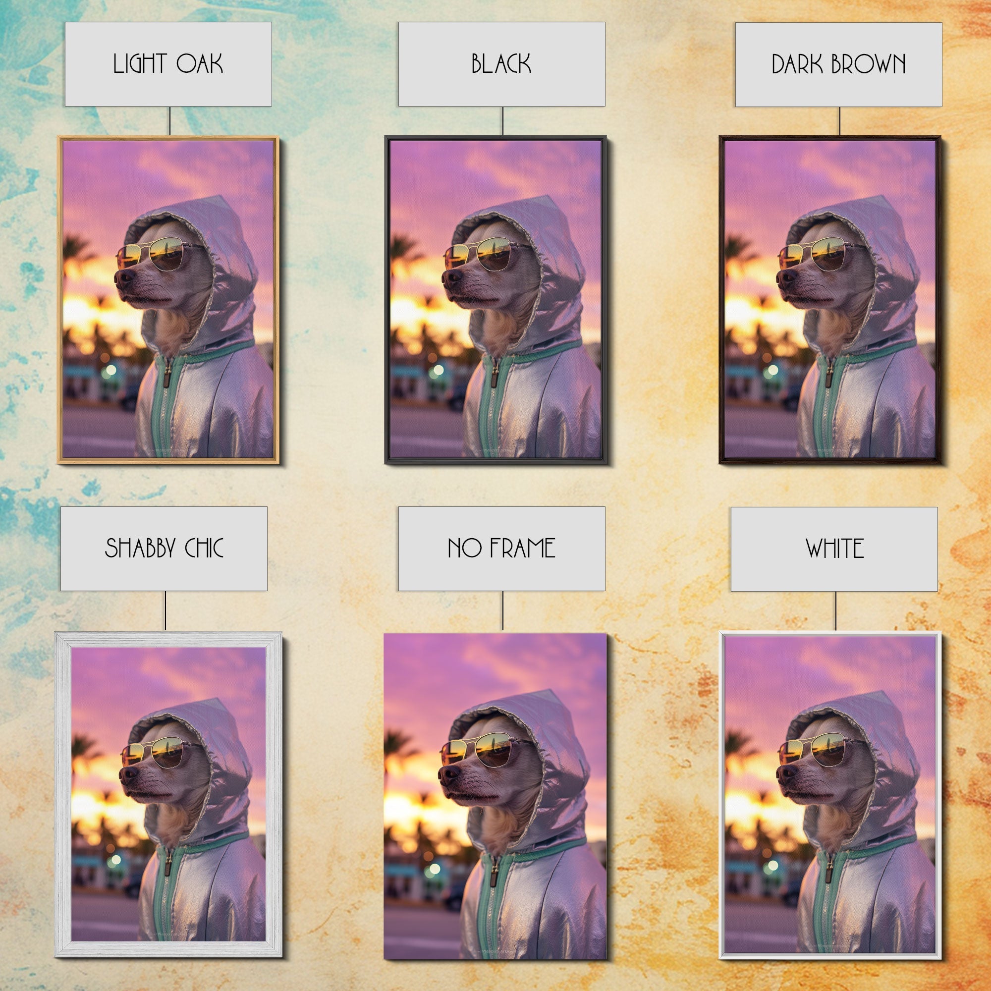 Chihuahua Wall Print, Dog Wall Art, Dog Sunglasses, Dog In Pink Hoodie, Funny Art, Framed Wall Art, Framed Canvas, Wall Print, Wall Canvas