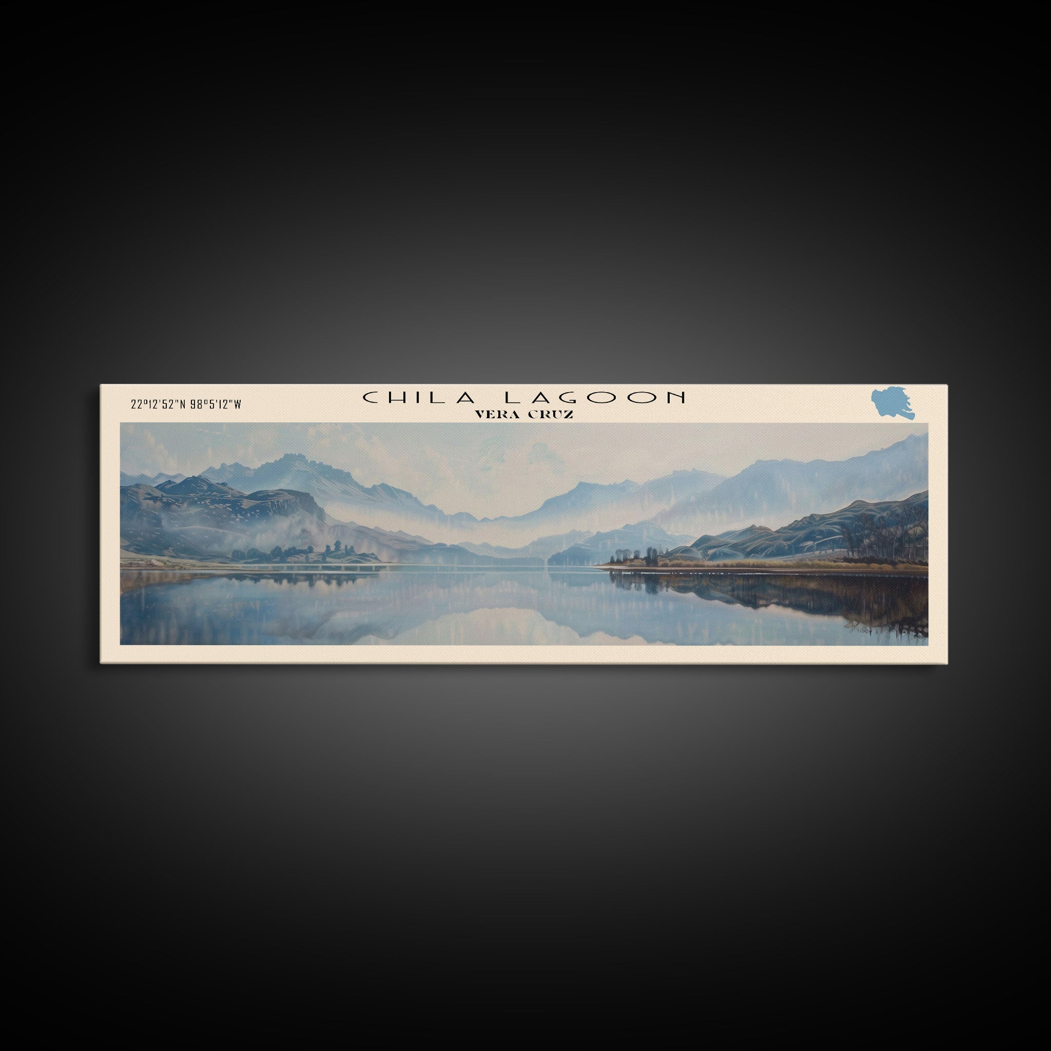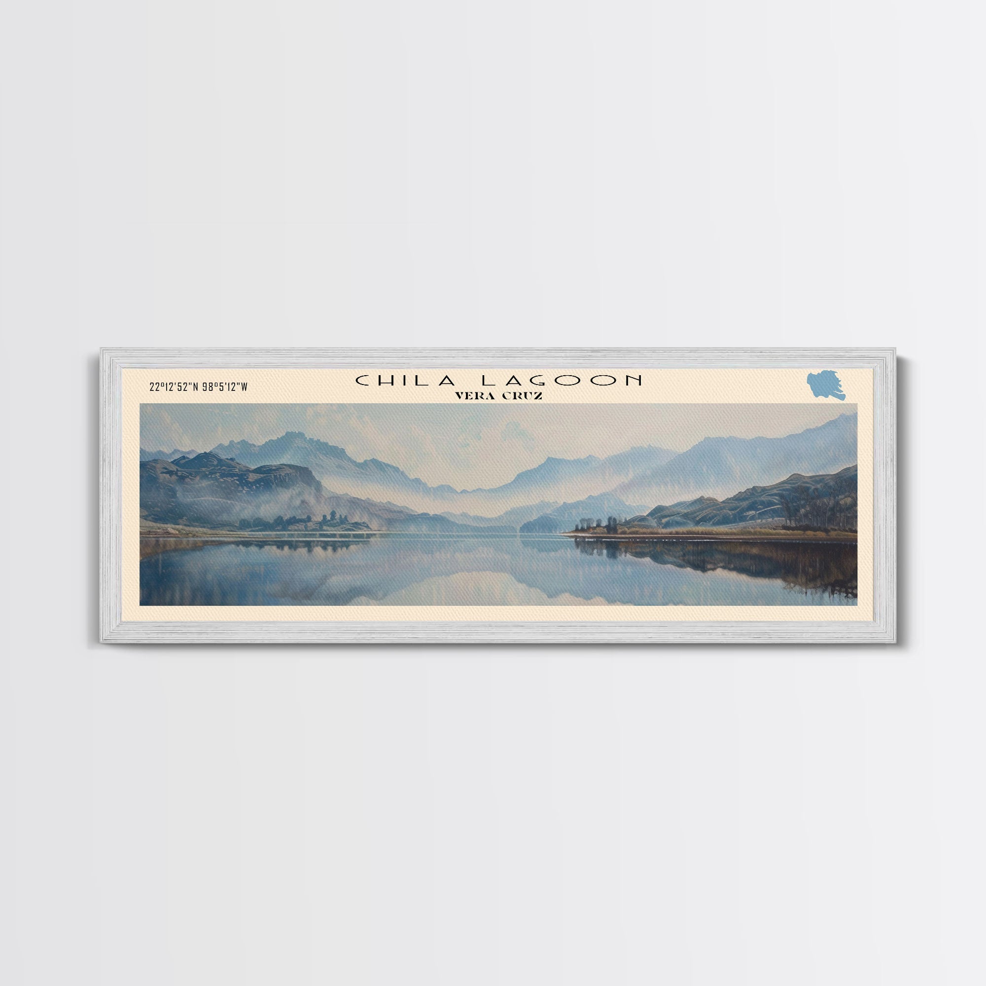 Chila Lagoon Framed Canvas Print, Panoramic Lake House Decor, Wide Wall Art, Travel Poster, Rustic Lake Painting, Home Decor