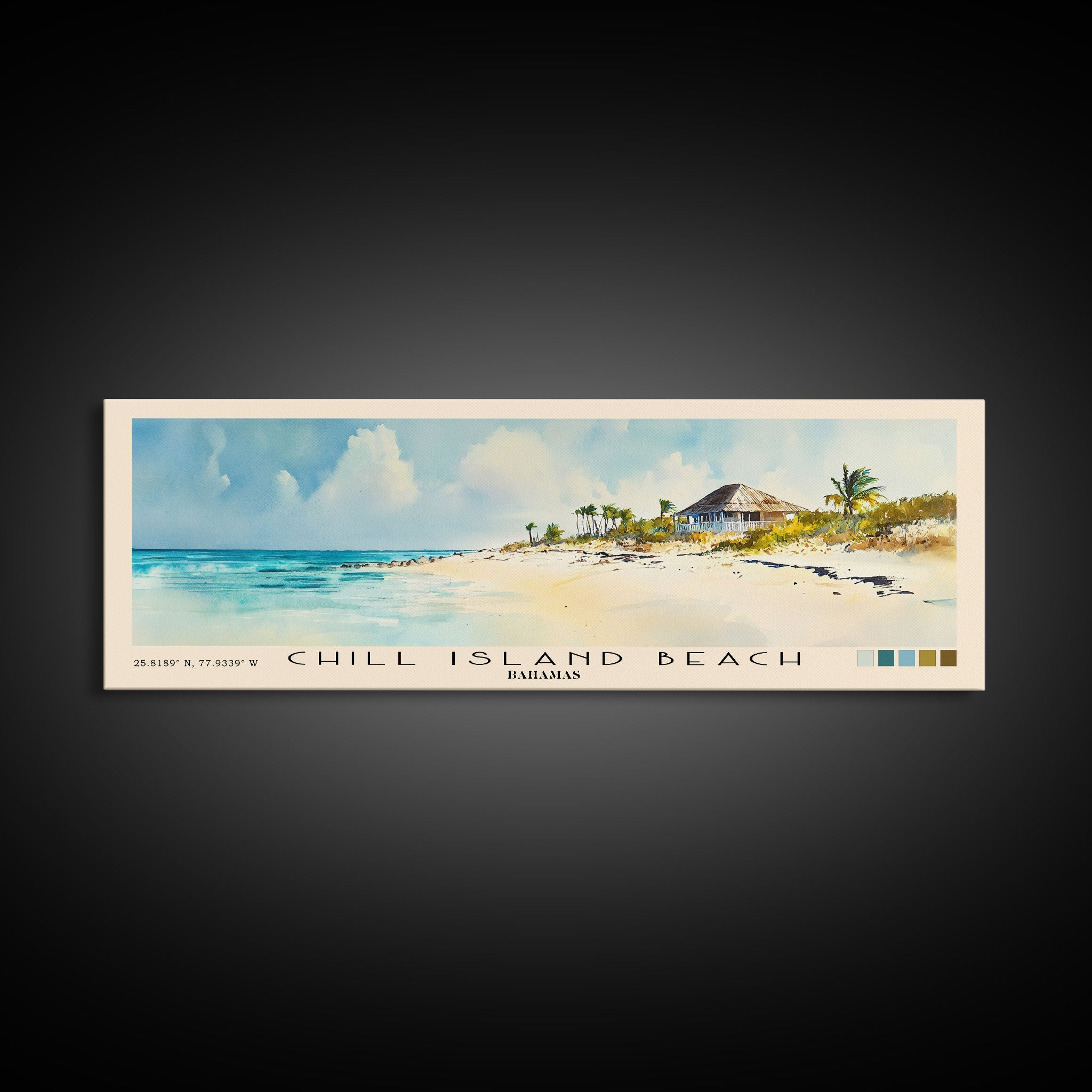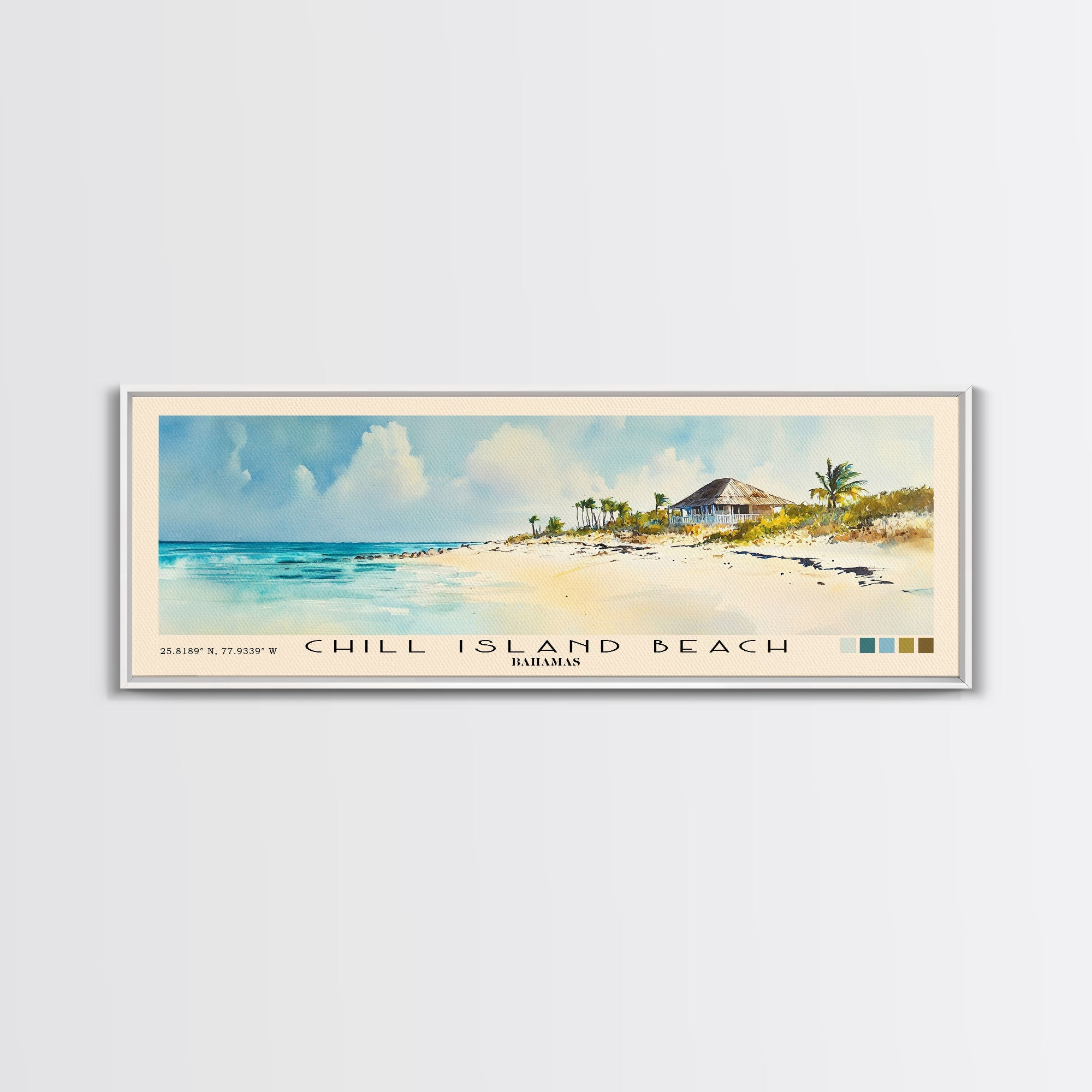Chill Island Beach, Bahamas Watercolor Beach Print, Vacation Gift, Bahamas Wall Art, Framed Canvas Print, Framed Beach Painting