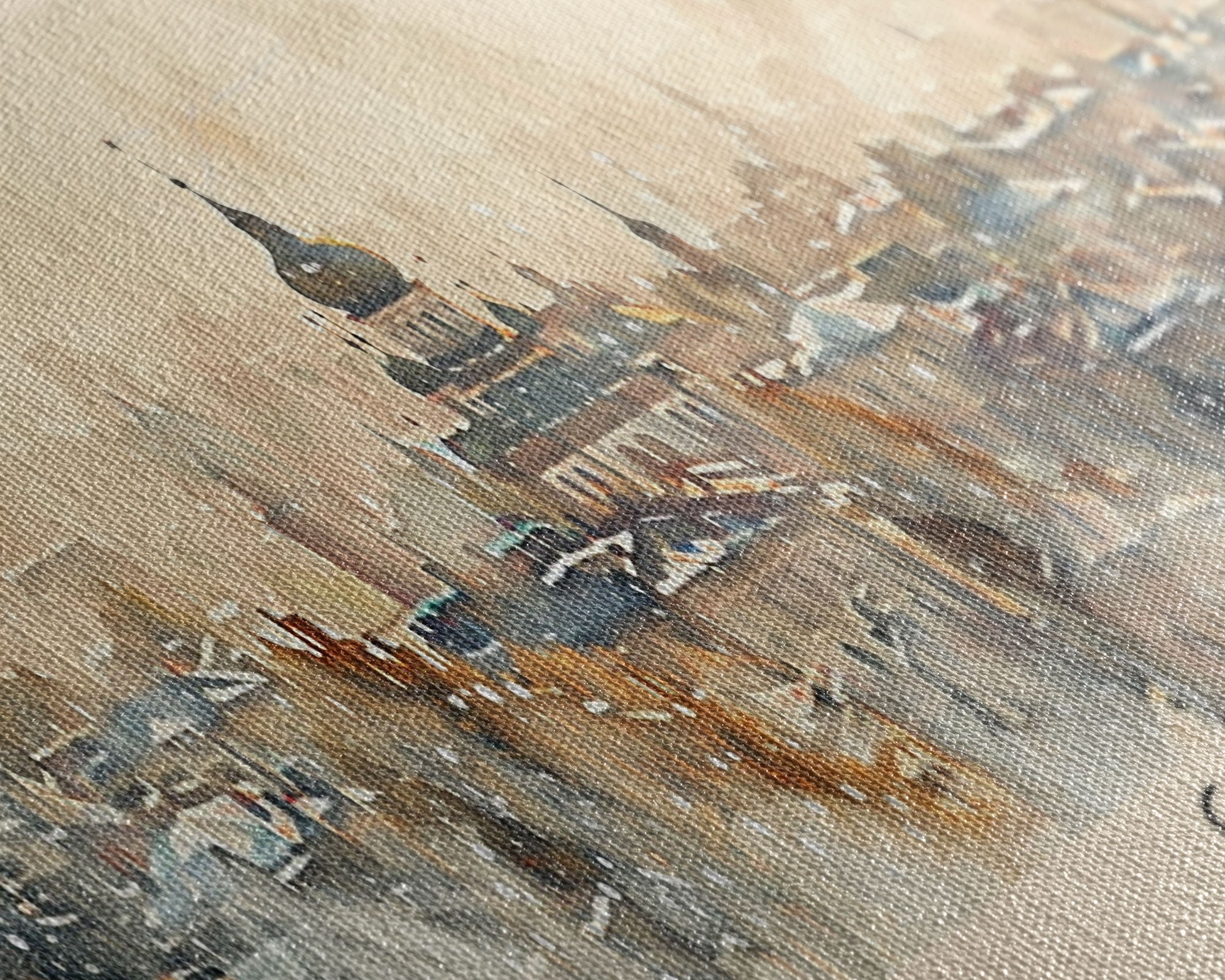 Most of our canvases are made in the USA, with the exception of canvases ordered with the light oak unstained frames, and any large canvases (24x48, 30x60, 16x48 and 20x60) ordered WITH a frame. These are temporarily made in and shipped from Europe, while we try to find a more consistent supplier in the USA.