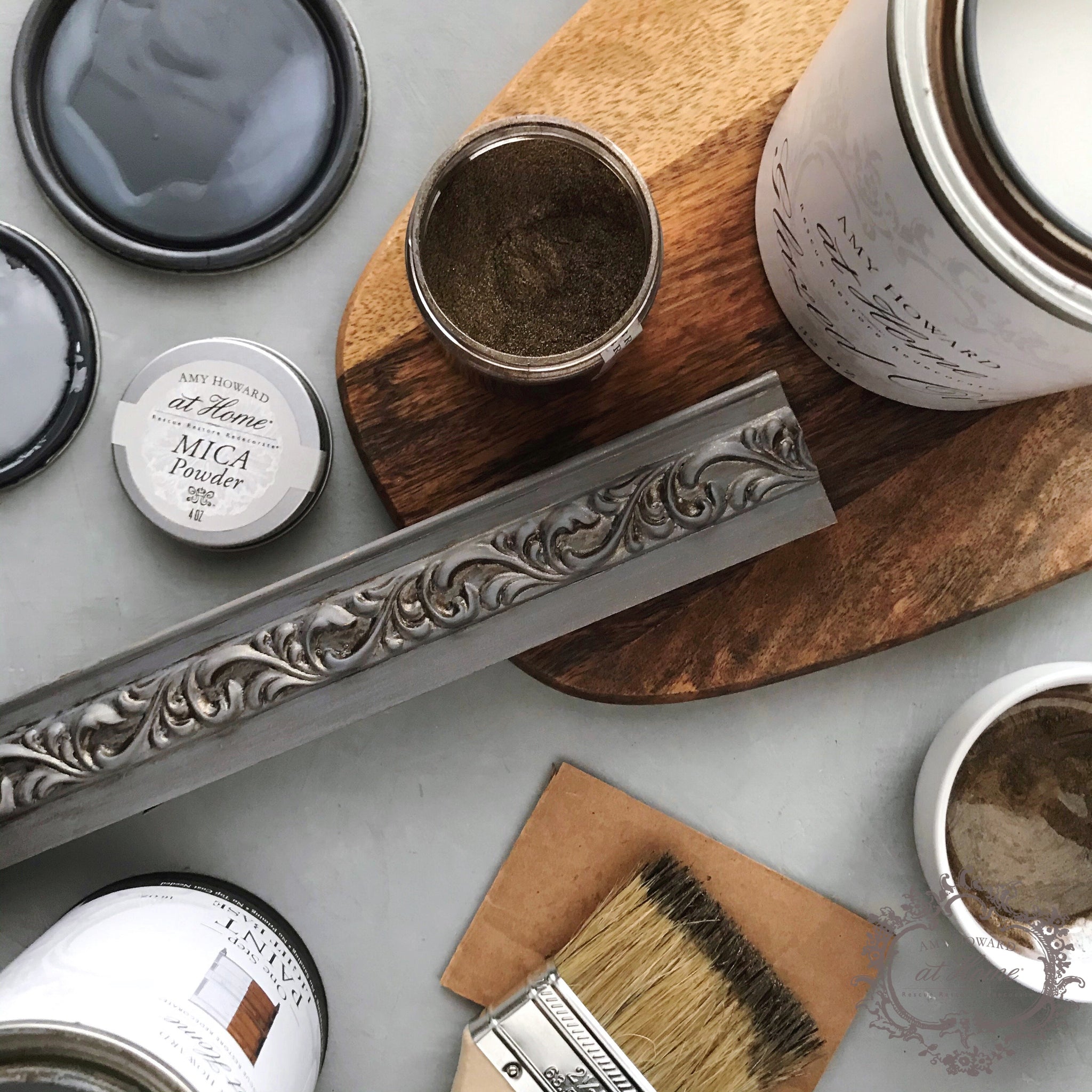 Mica Powder adds even more intensity and drama to Toscana Milk Paint’s old world look by providing a pearly, metallic finish. Mica Powder can be used for several other processes, like creating a custom metallic wax or making an antique mirror appear Eglomisé or glass-gilded.