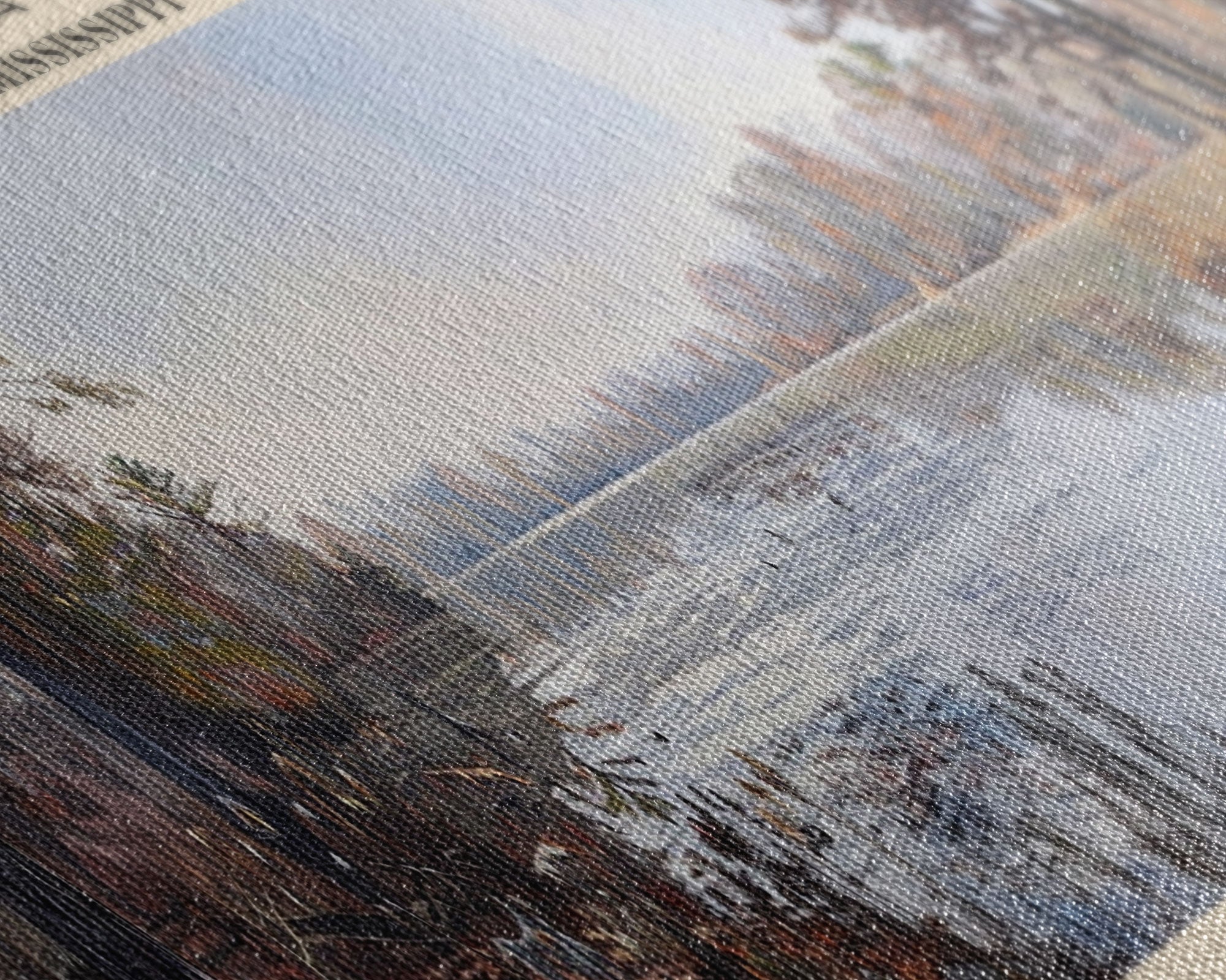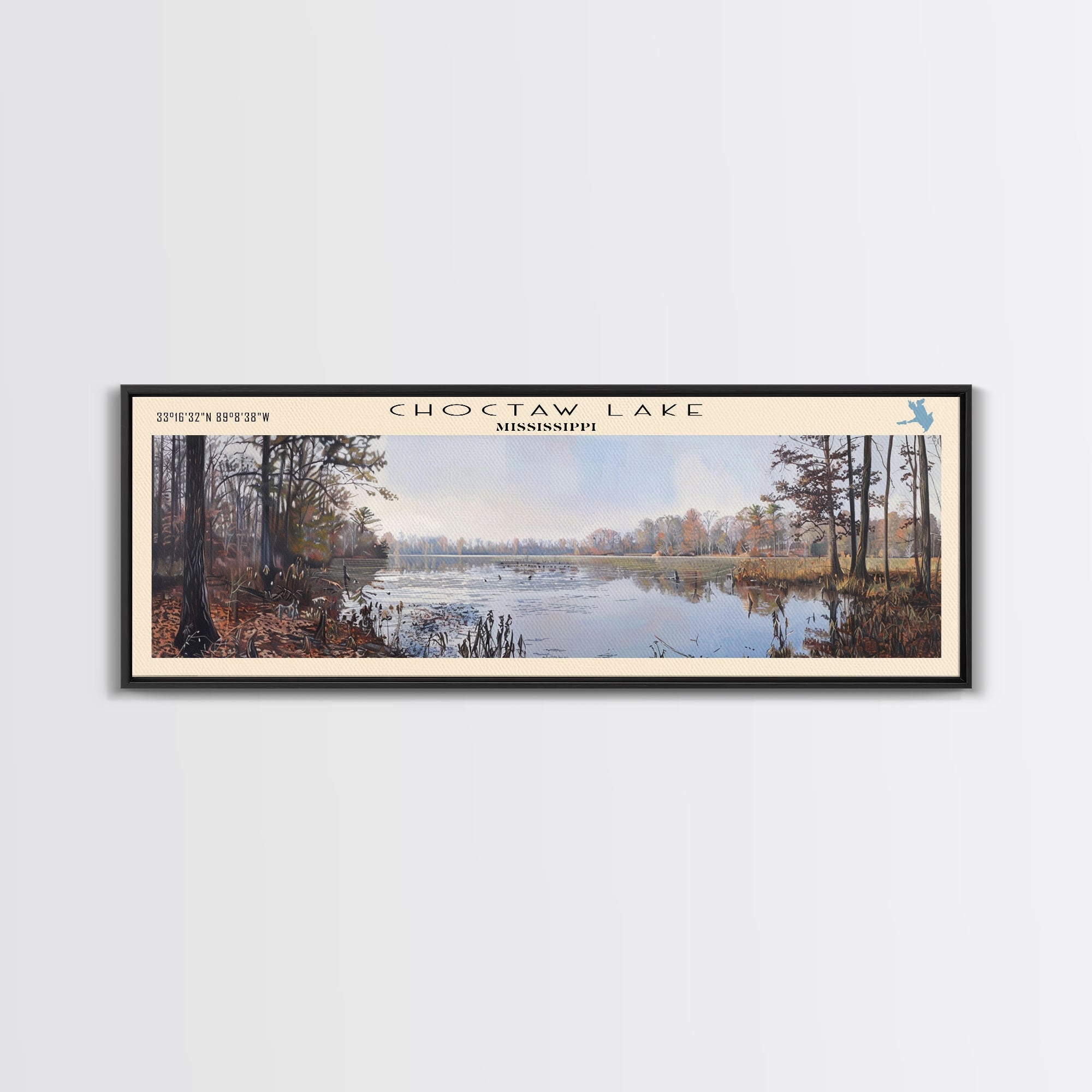 Choctaw Lake Mississippi Framed Canvas Print, Lake House Art, Panoramic Wide Wall Art, Travel Poster, Rustic Lake Painting, Home Decor