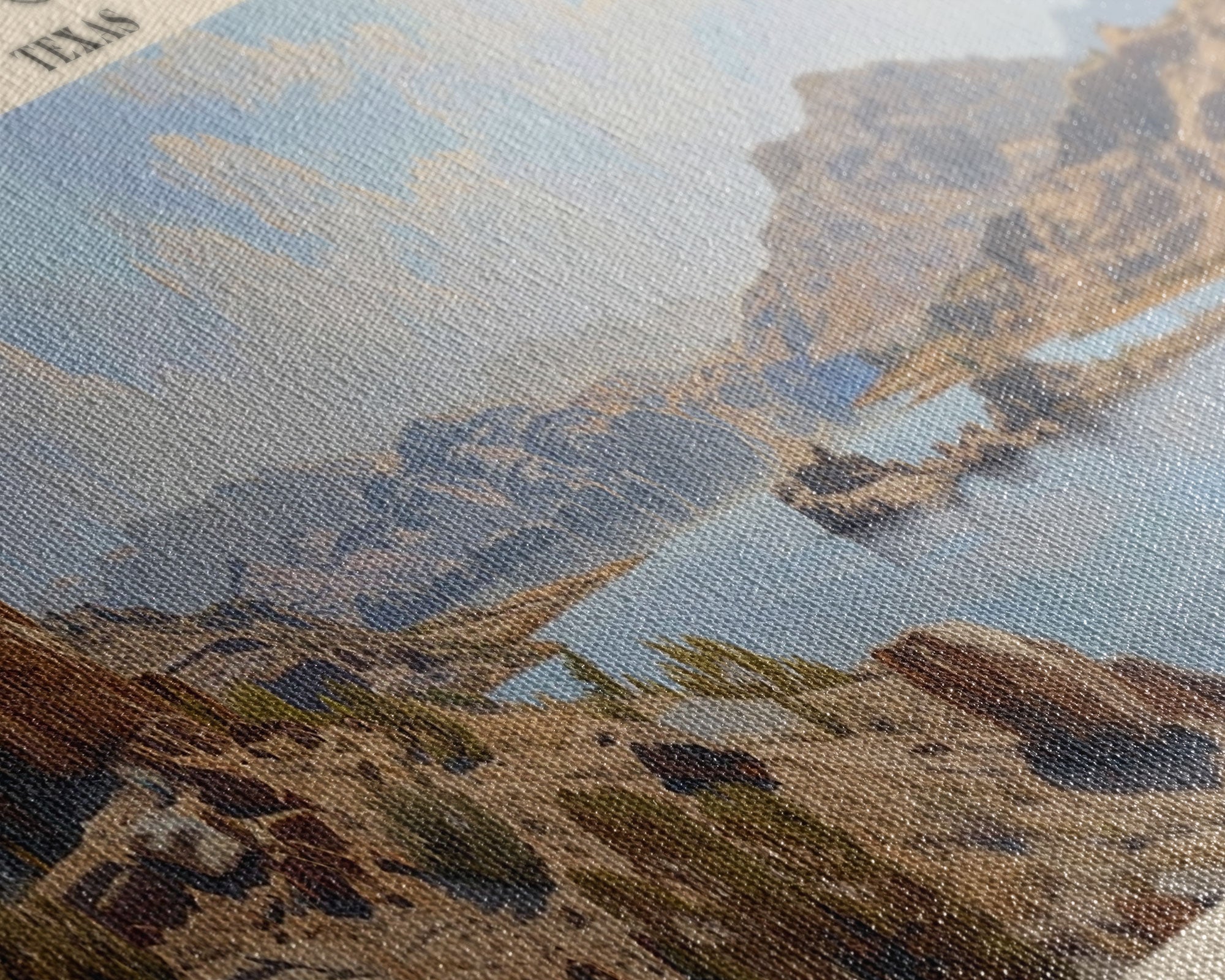 Choke Canyon Reservoir Framed Canvas Print, Panoramic Lake House Decor, Wide Wall Art, Travel Poster, Modern Lake Painting, Nature Art