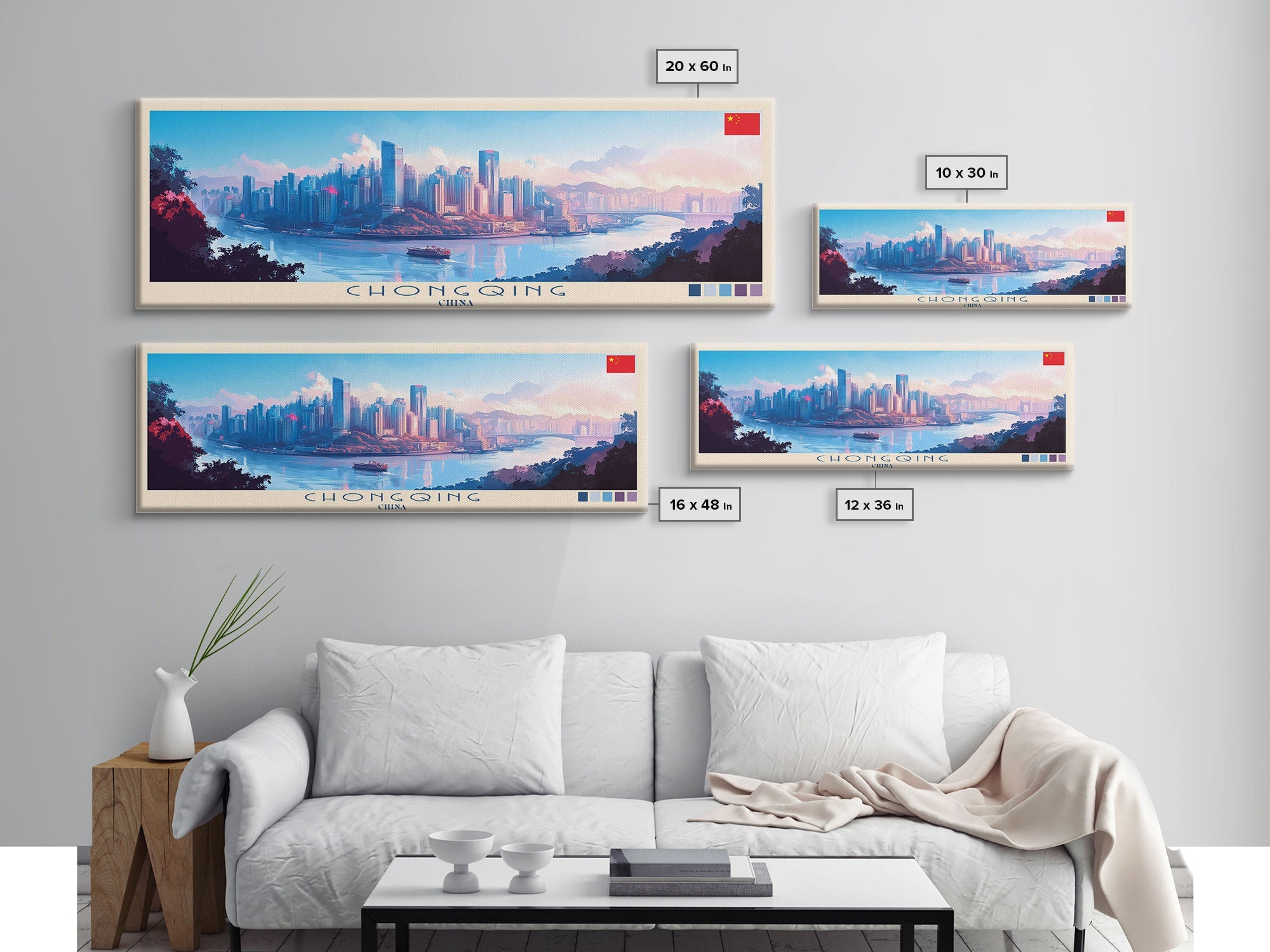 Chongqing, China Panoramic Travel Poster Canvas Print, Chongqing, China Painting, China Art, Chongqing Travel Art, Guest Room Painting