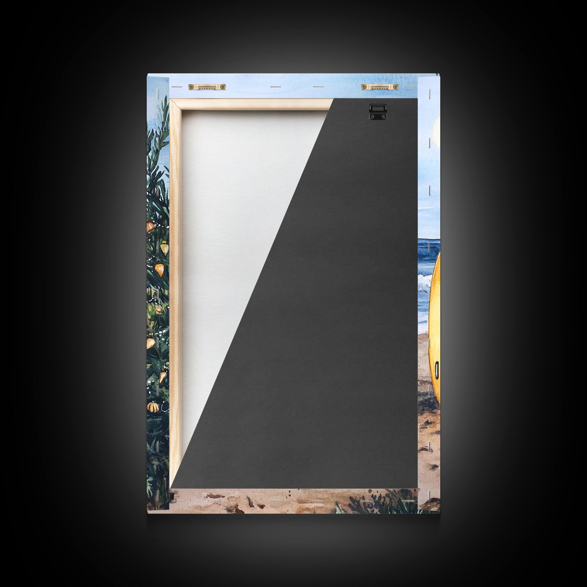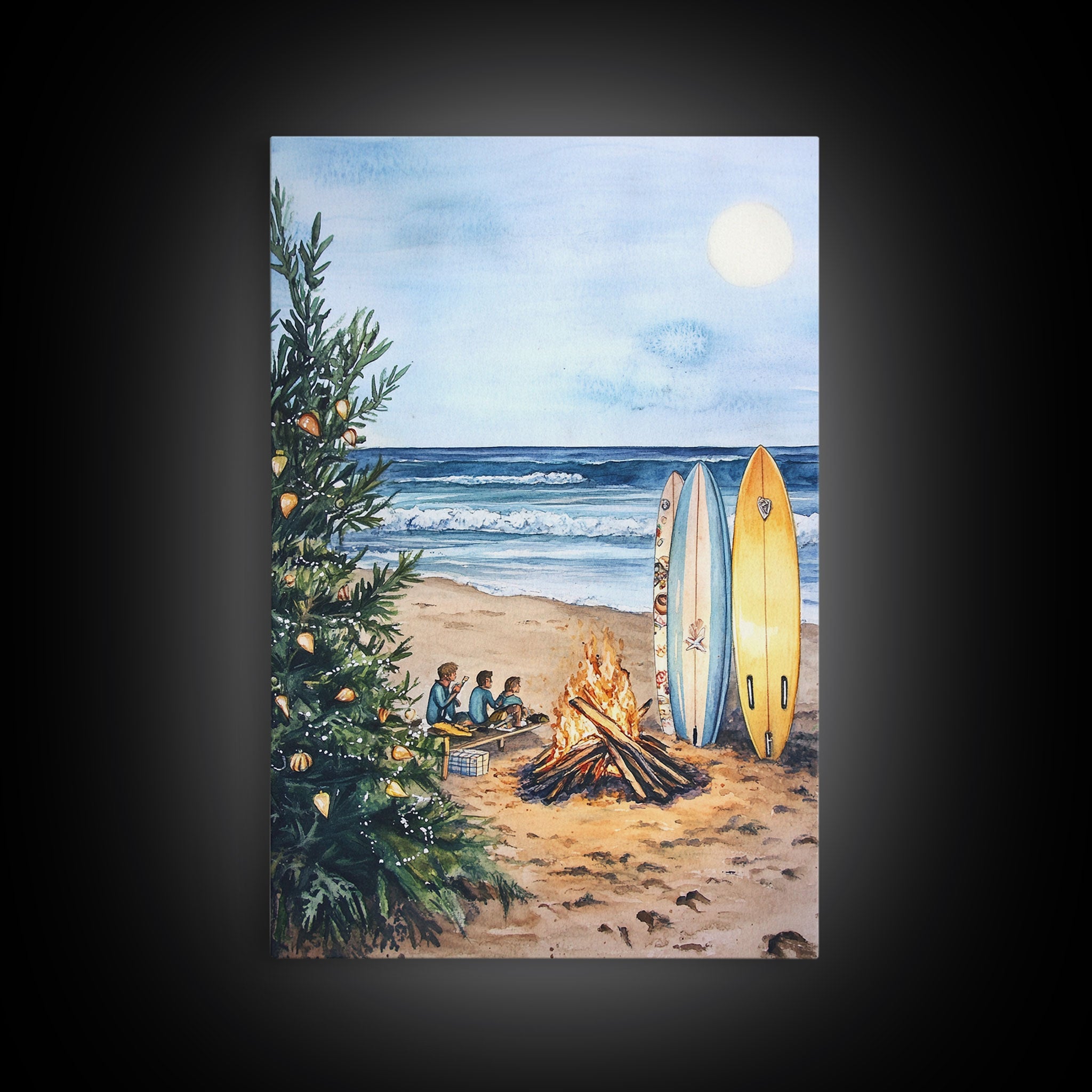Christmas At The Beach, Framed Canvas Print, Christmas Decor, Christmas Art, Christmas Art Prints, Tropical Christmas, Beach House Art