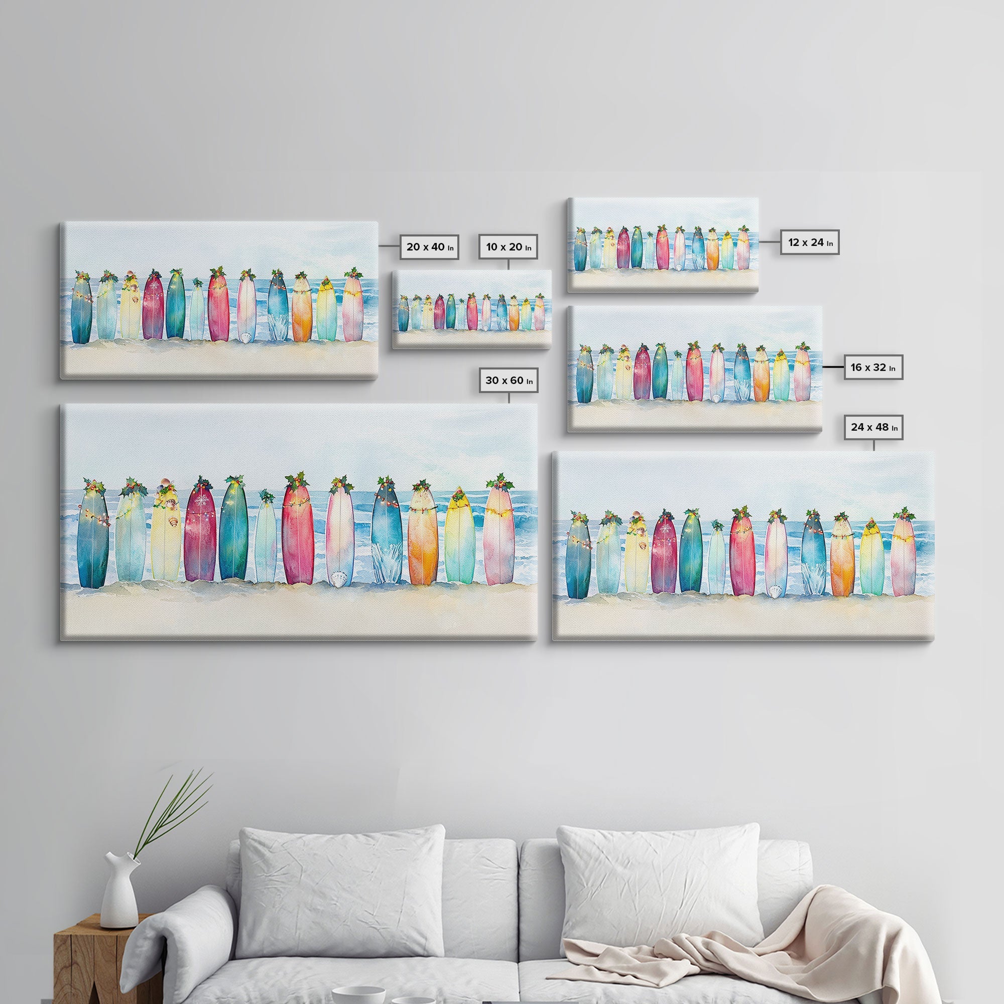 Christmas beach art, tropical Christmas decor, canvas print, Christmas wall art, beach Christmas decor, holiday wall art