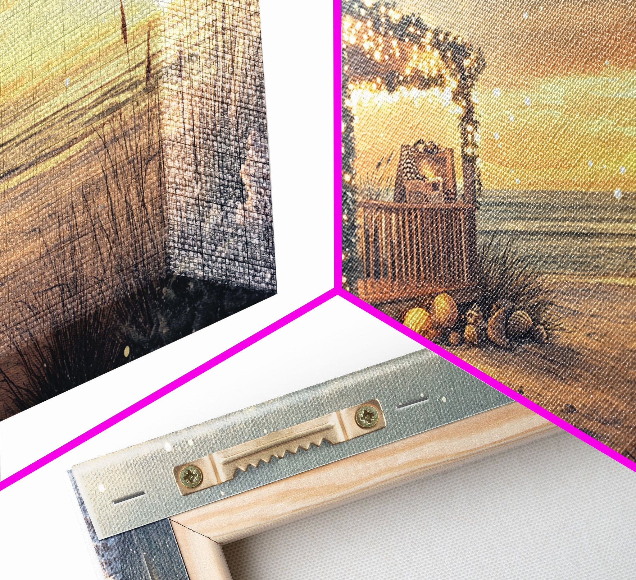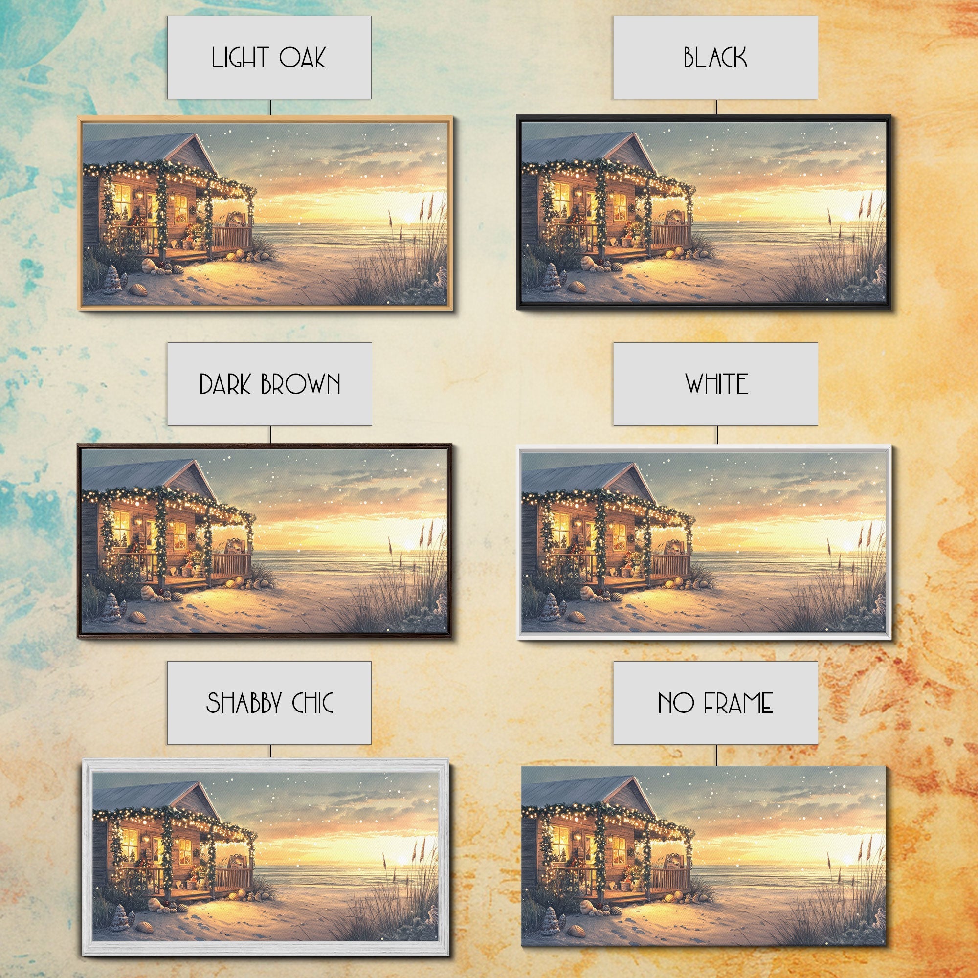 Christmas beach house decor, coastal holiday home art, seaside Christmas wall art, festive beach house print, framed canvas print