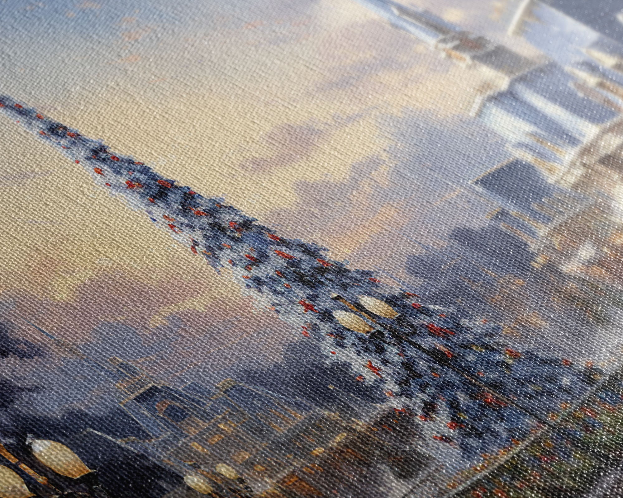 Most of our canvases are made in the USA, with the exception of canvases ordered with the light oak unstained frames, and any large canvases (24x48, 30x60, 16x48 and 20x60) ordered WITH a frame. These are temporarily made in and shipped from Europe, while we try to find a more consistent supplier in the USA.