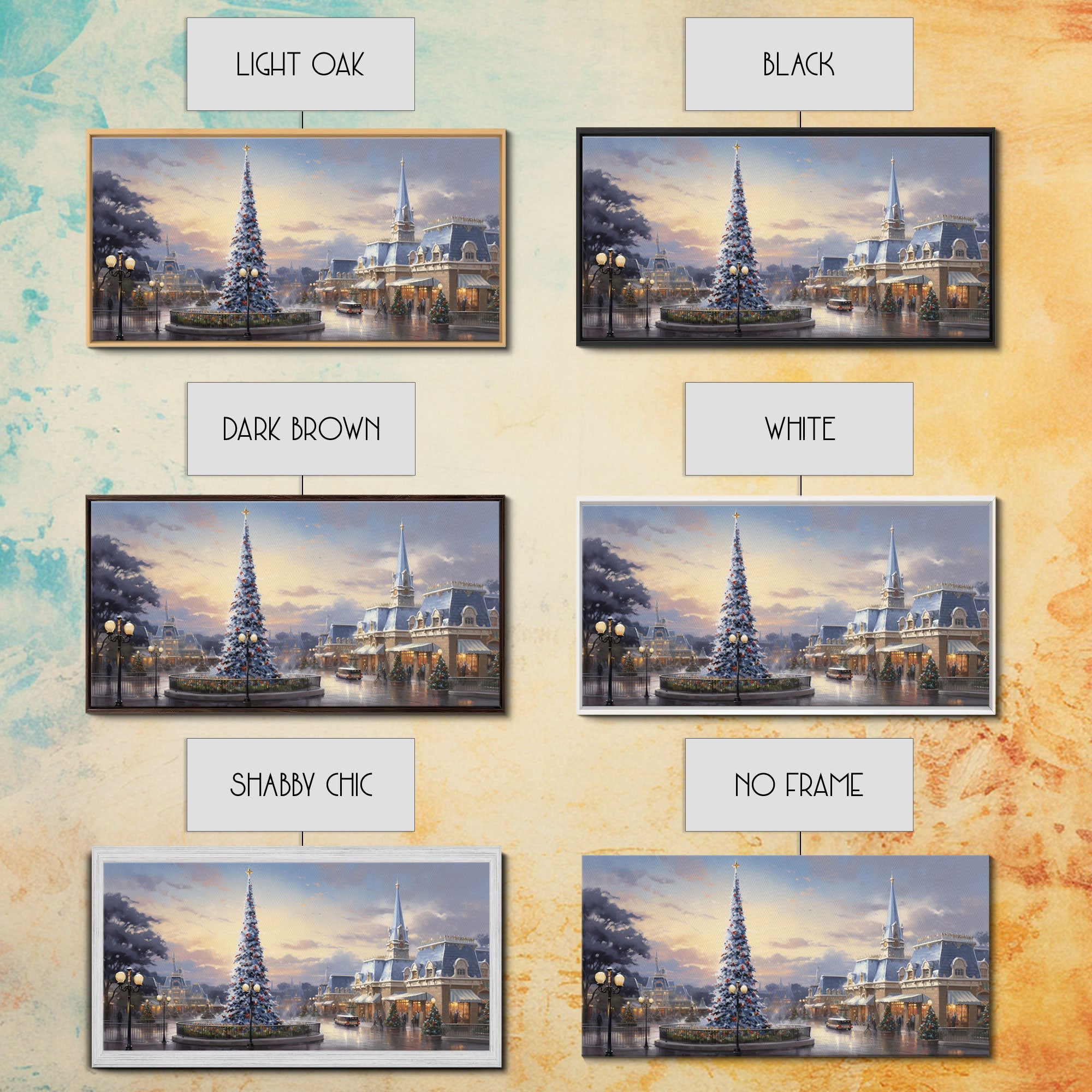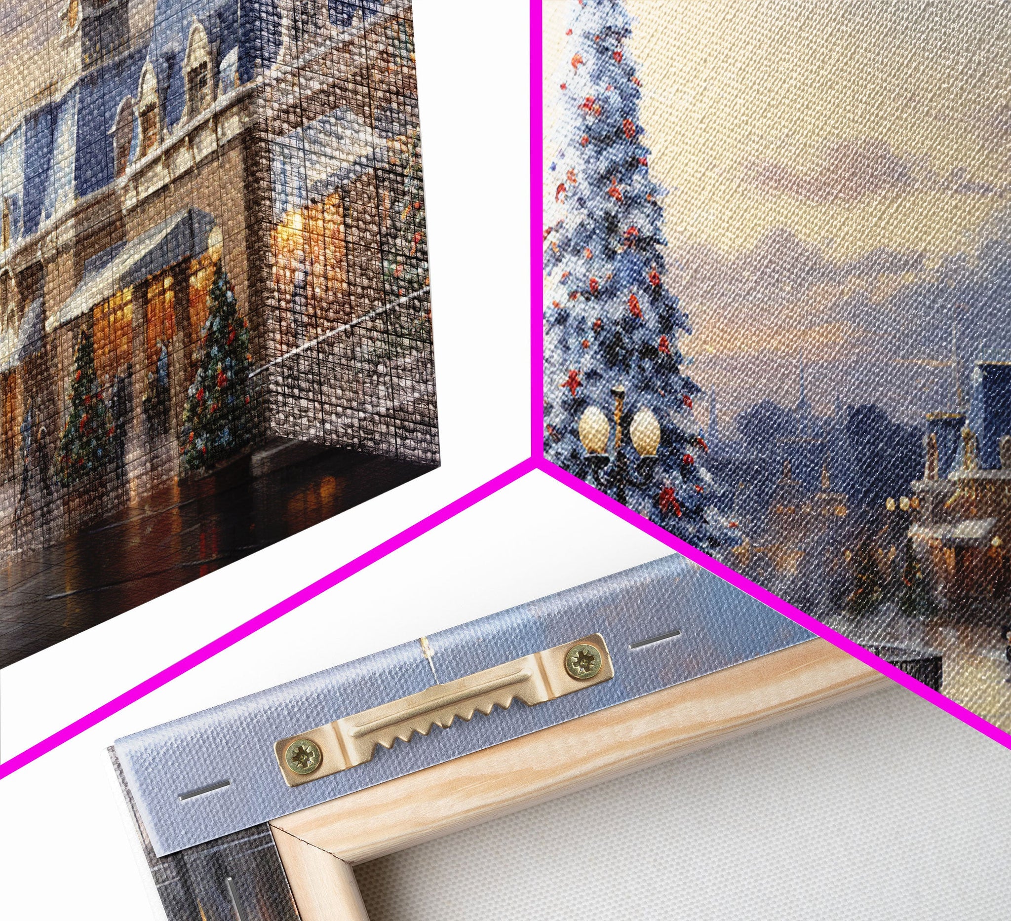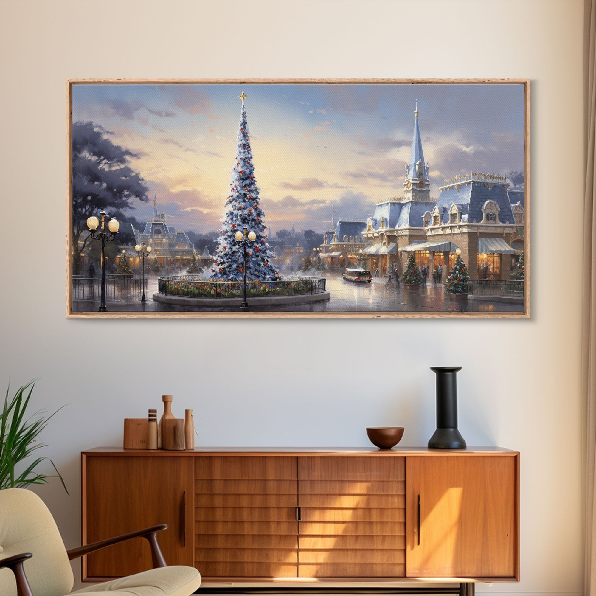 Christmas Decor Handmade, Framed Canvas Print, Beautiful Winter Wonderland Christmas Village, Christmas Tree Art