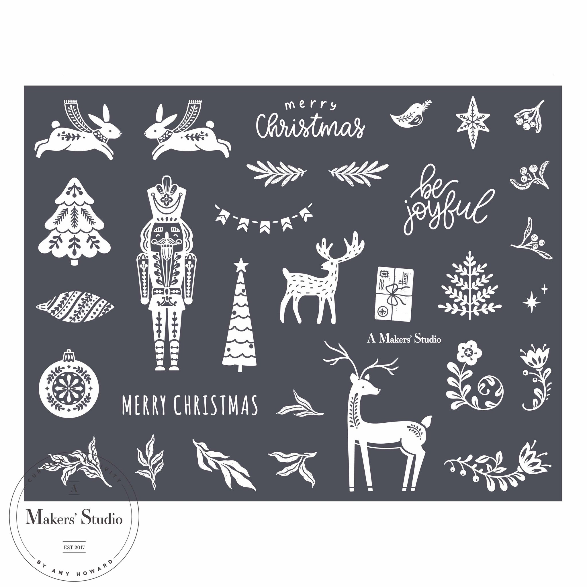 Christmas Folk Art - Mesh Stencil 8.5x11