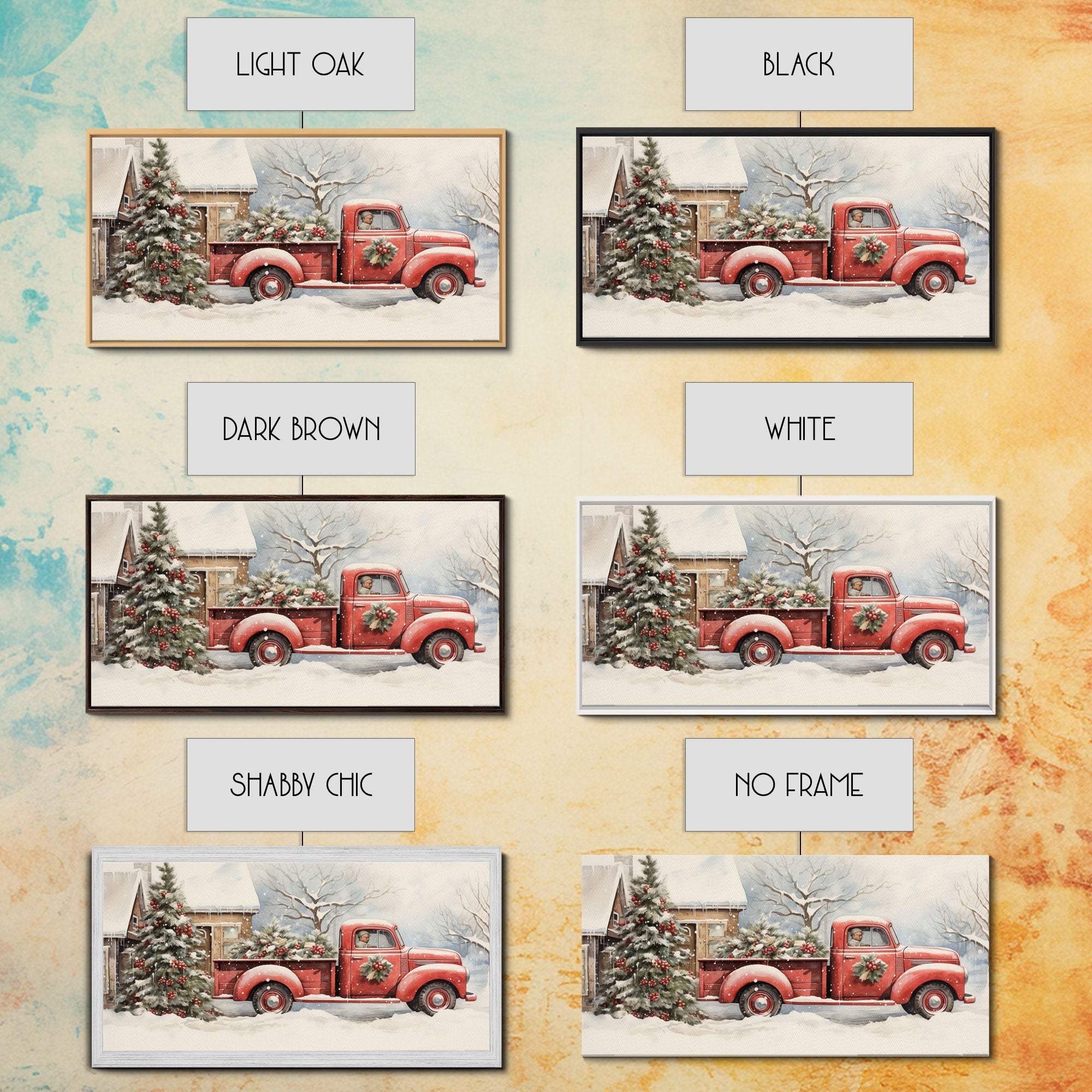 • Cargar imagen en el visor de la galería, Christmas Tree Delivery - Retro Farmhouse Christmas Decor - Old Red Truck Delivering Christmas Trees - Framed Canvas Print - Holiday Decor