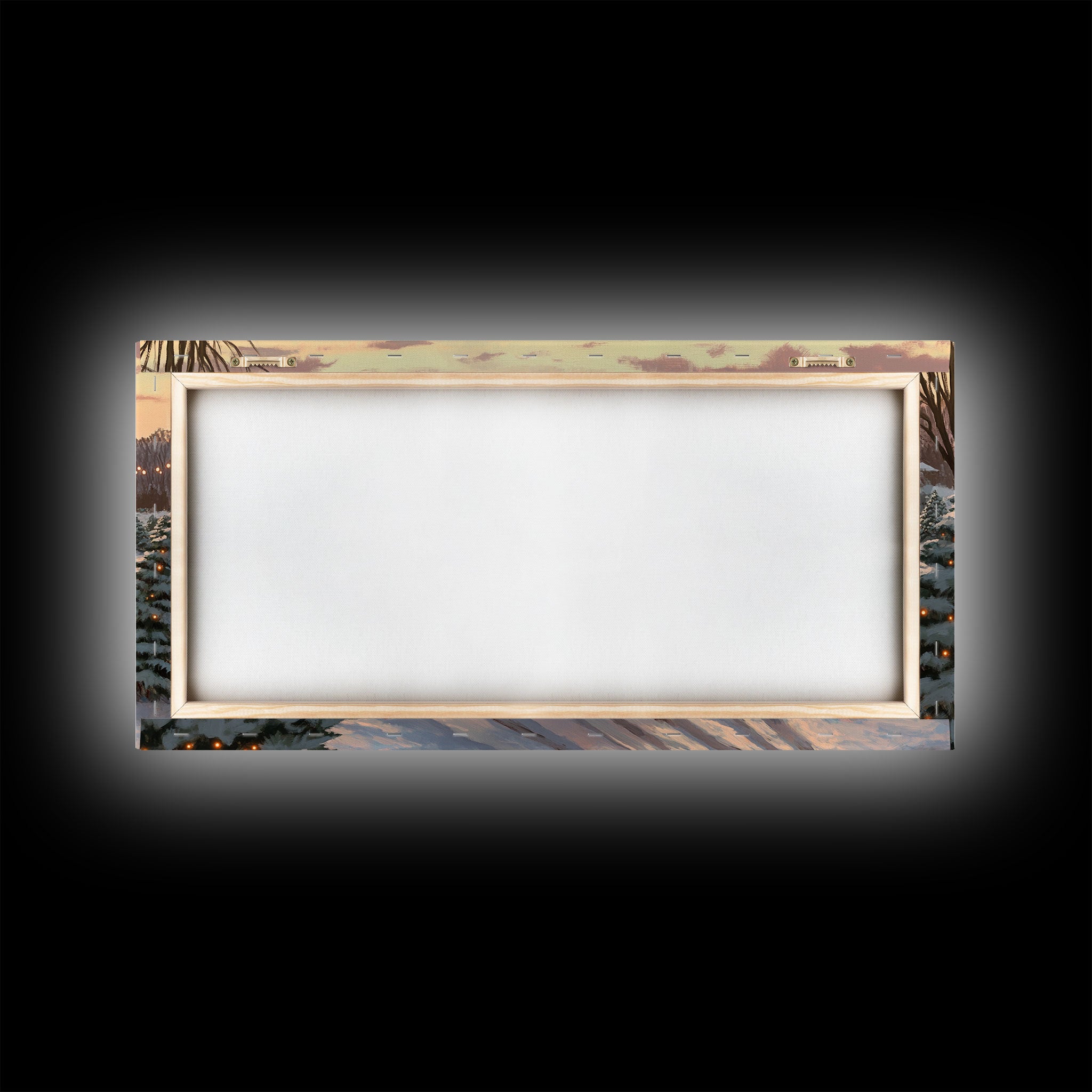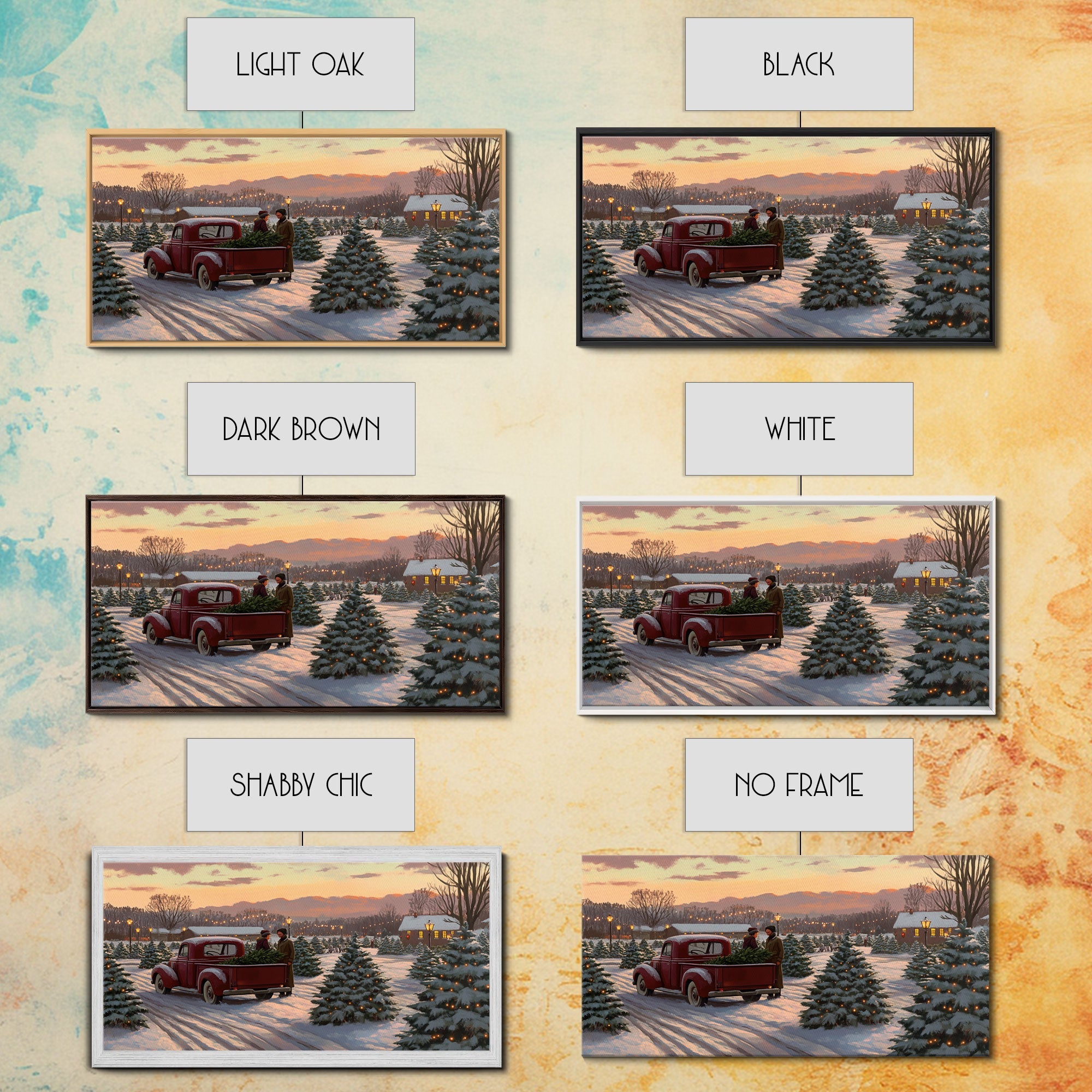 Christmas Tree Farm Framed Canvas Print, Red Truck Winter Scene, Farmhouse Christmas Decor, Christmas Vacation Decor, Holiday Art Gift