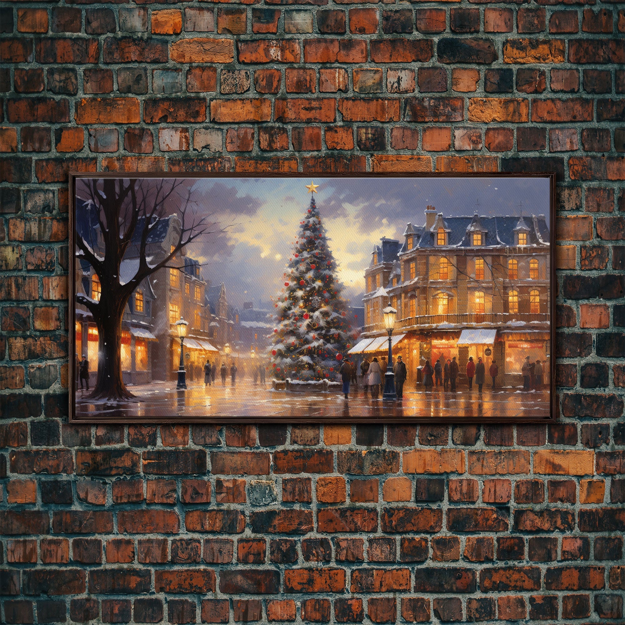 Christmas Tree In The Town Square - Winter Wonderland Canvas Print - Christmas Village - Christmas Decor - Winter Centerpiece