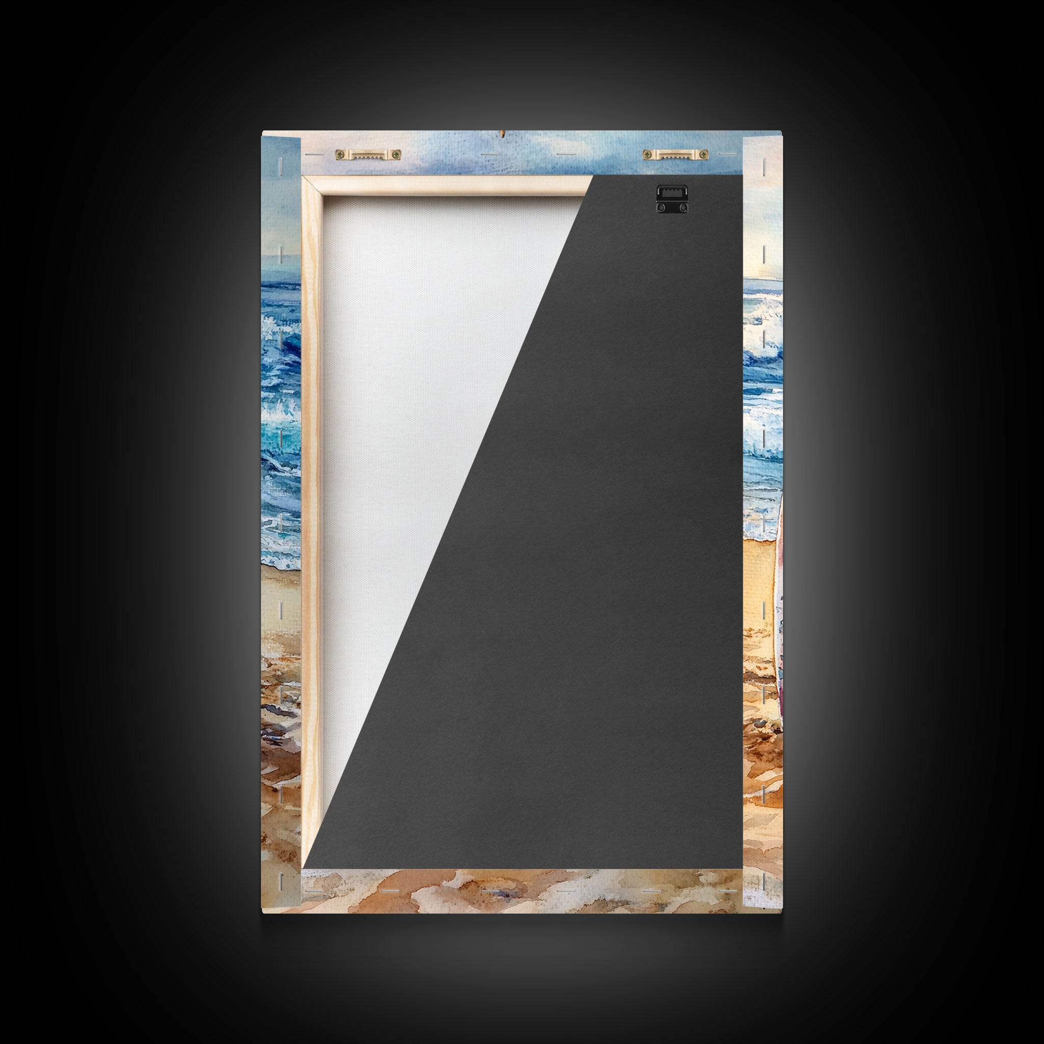 Christmas tree with surfboards on the beach, Framed Canvas Print tropical holiday wall art perfect beach Christmas decor holiday gift idea