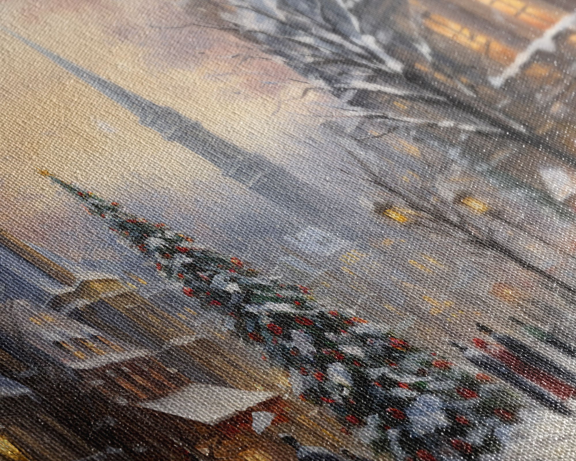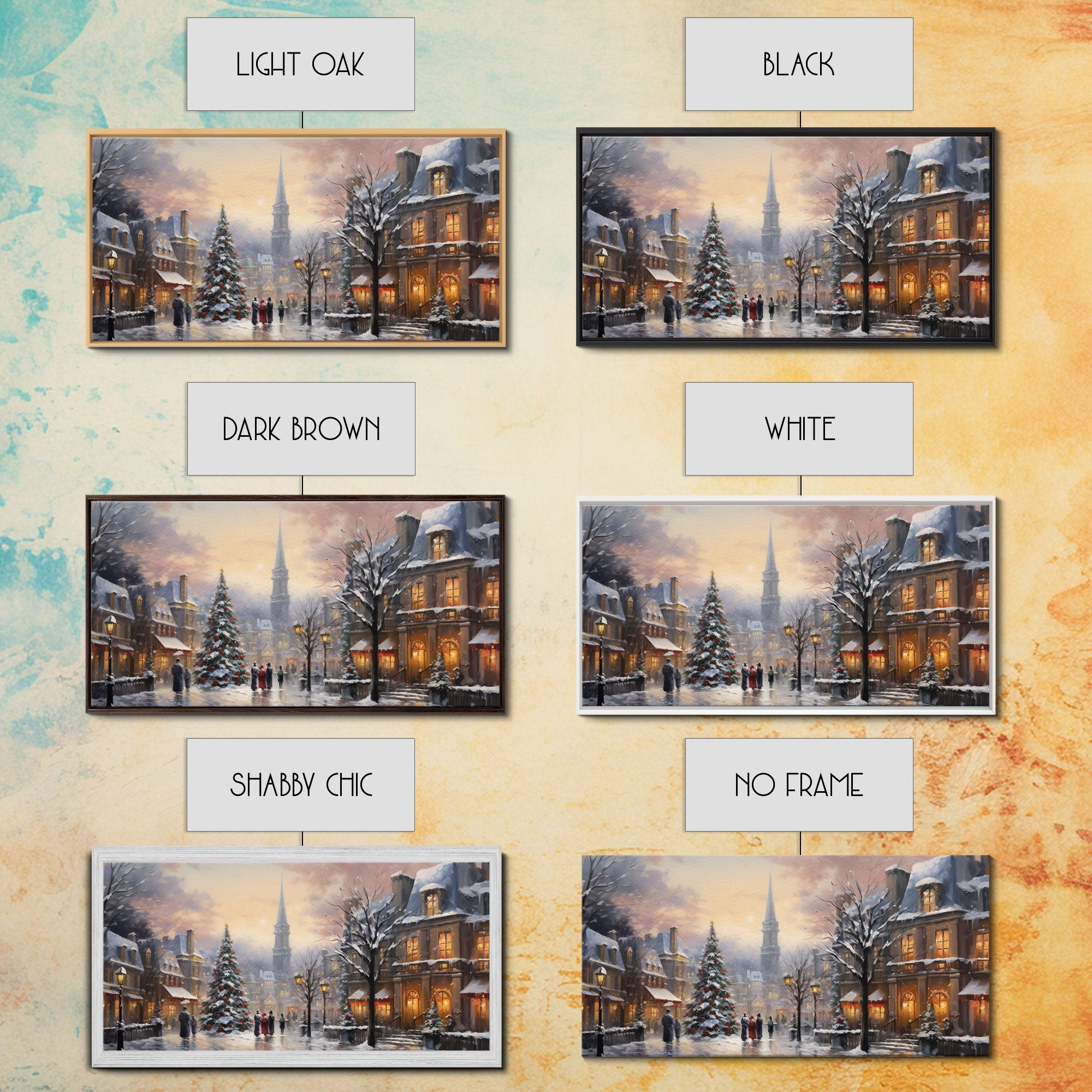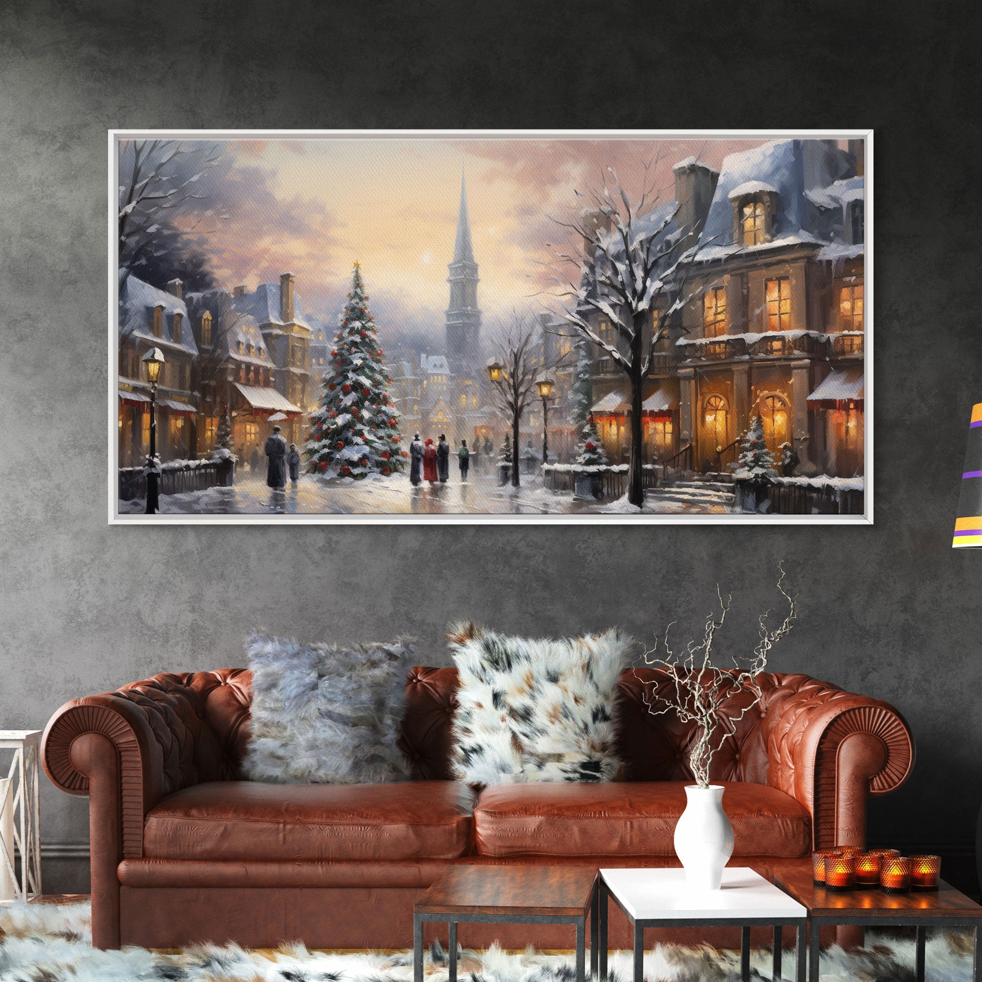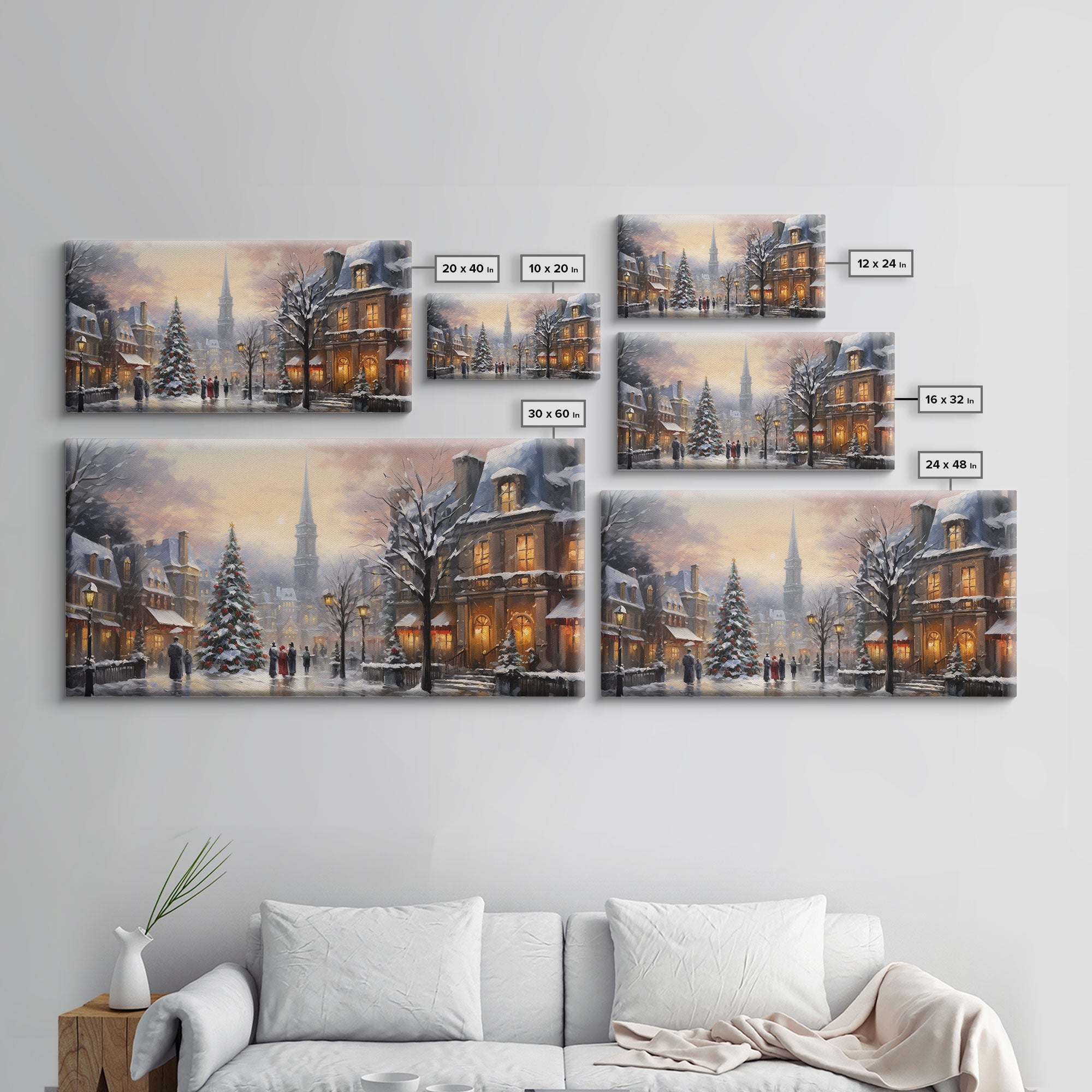 Christmas Village Winter Wonderland Canvas Print, Framed Wall Art, Christmas Decor, Retro Christmas Oil Painting, Christmas Art