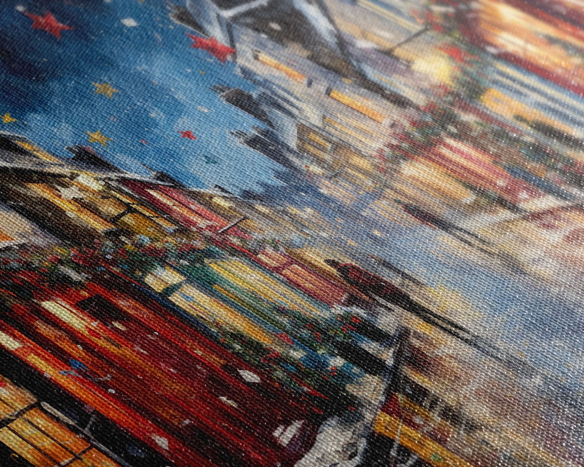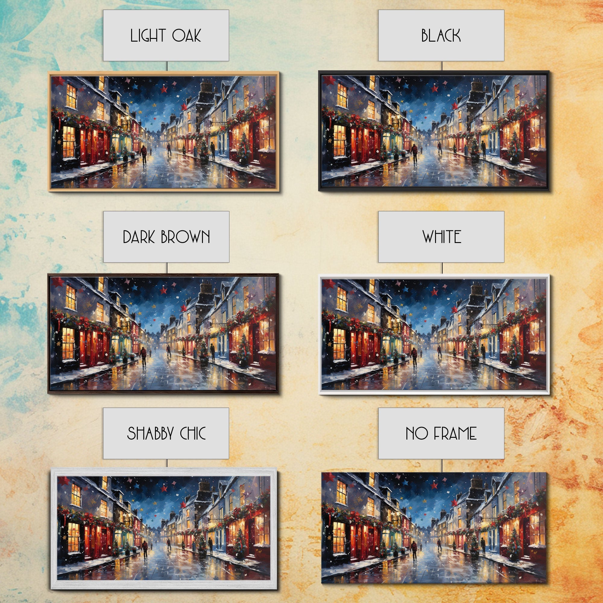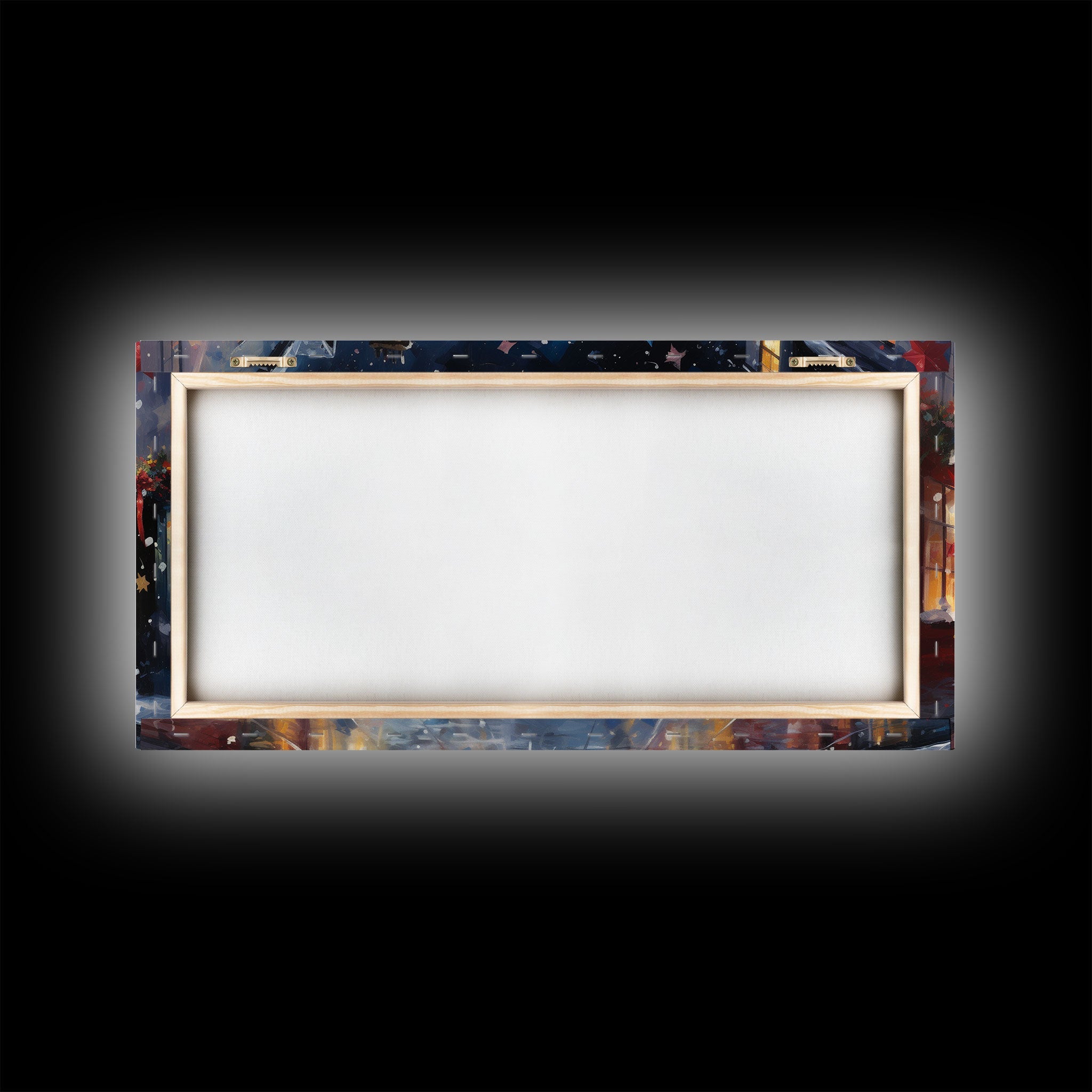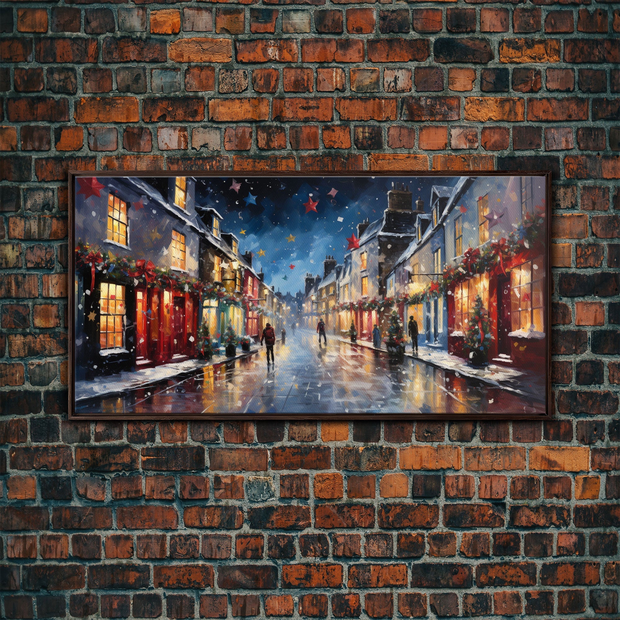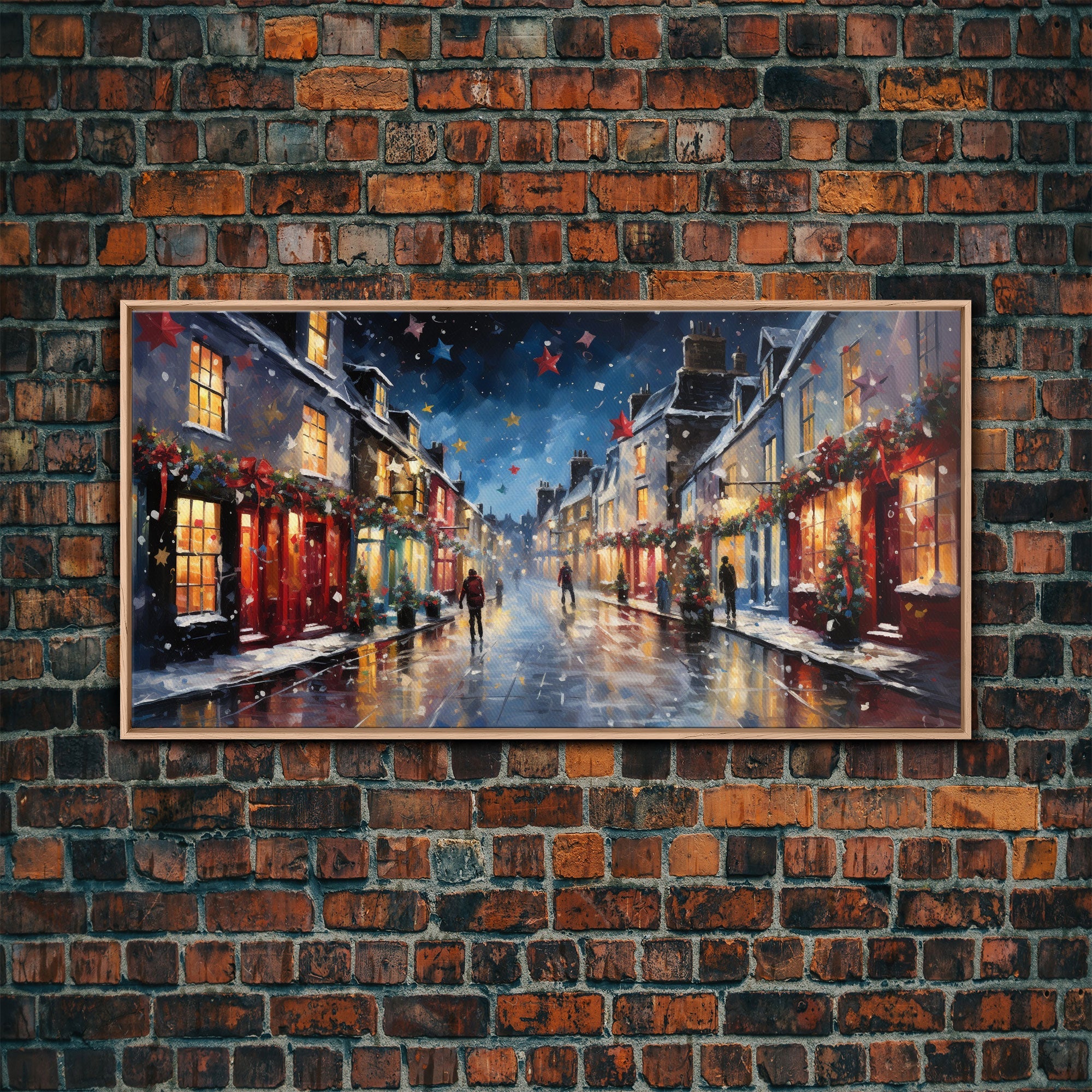 Christmas Wall Art - Framed Canvas Print - Winter Wonderland Victorian Village Decorated for Christmas - Christmas Canvas Wall Art