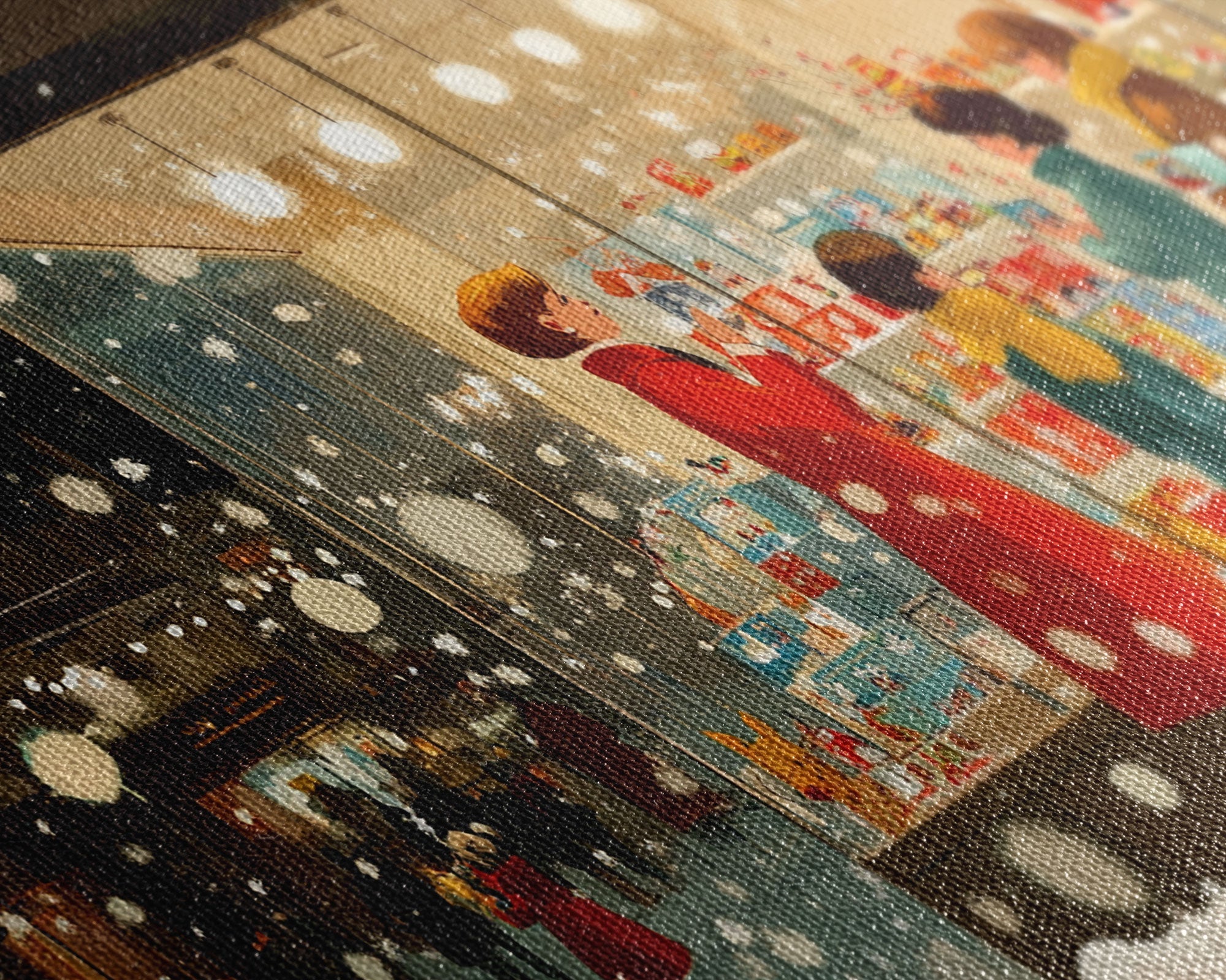 • Cargar imagen en el visor de la galería, Christmas Window Shopping Scene Framed Canvas Print, Nostalgic Winter Holiday Wall Art Decor, Best Christmas Gift Idea, City Christmas Decor