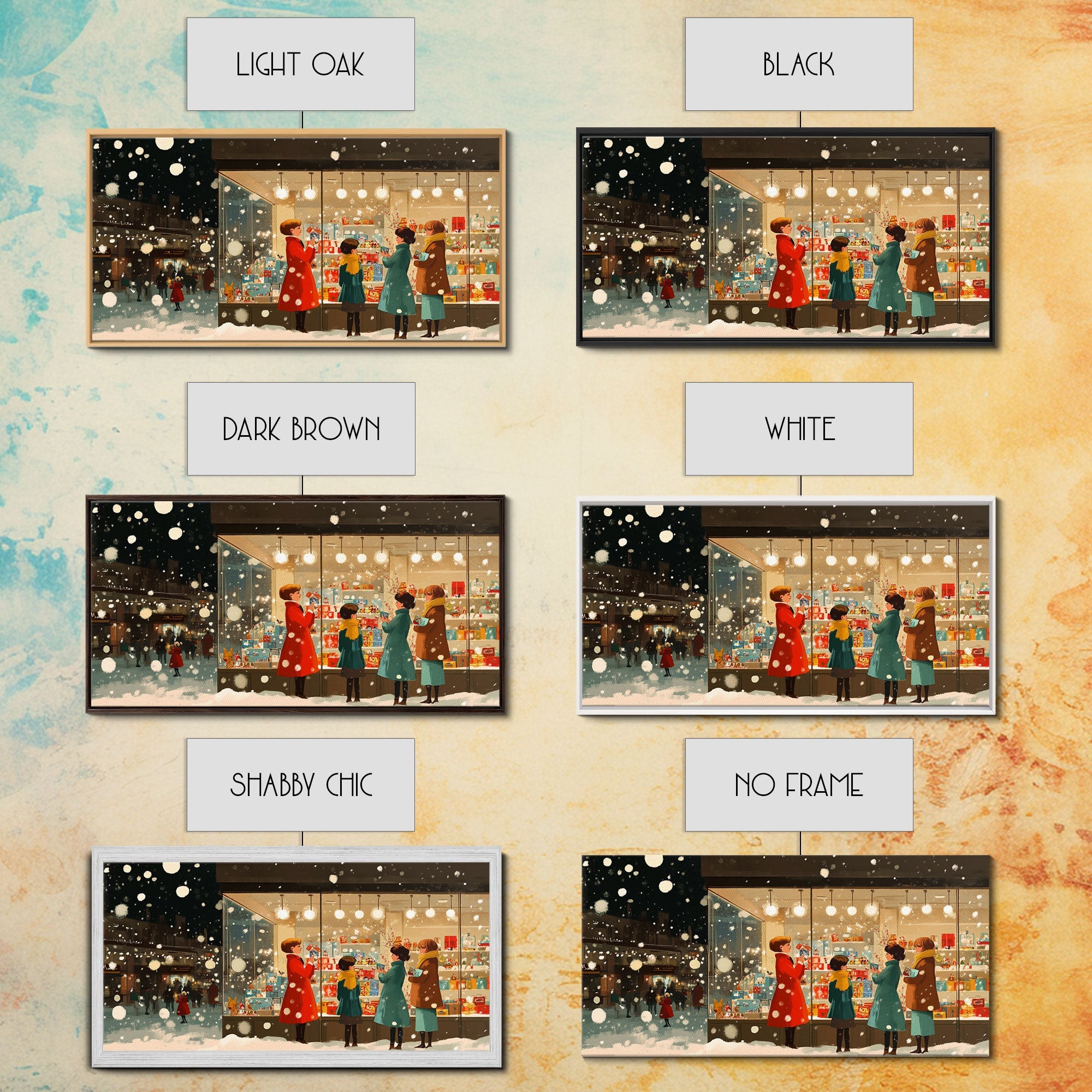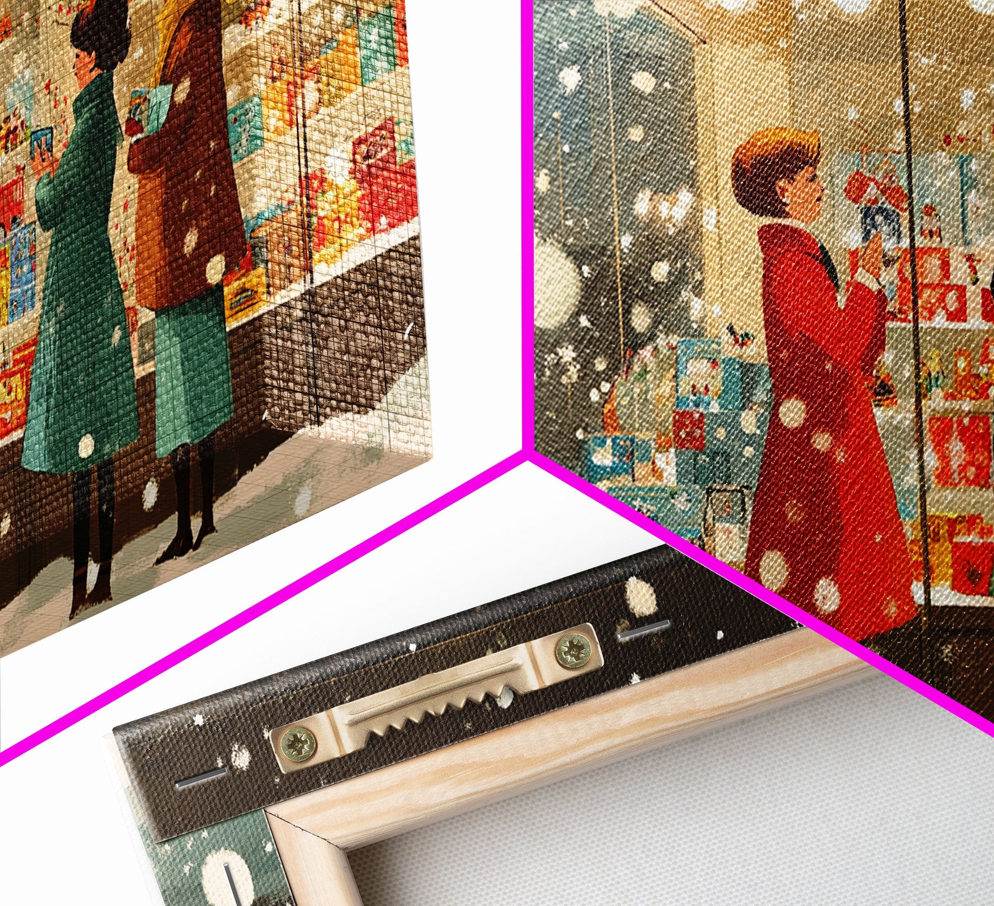 Christmas Window Shopping Scene Framed Canvas Print, Nostalgic Winter Holiday Wall Art Decor, Best Christmas Gift Idea, City Christmas Decor