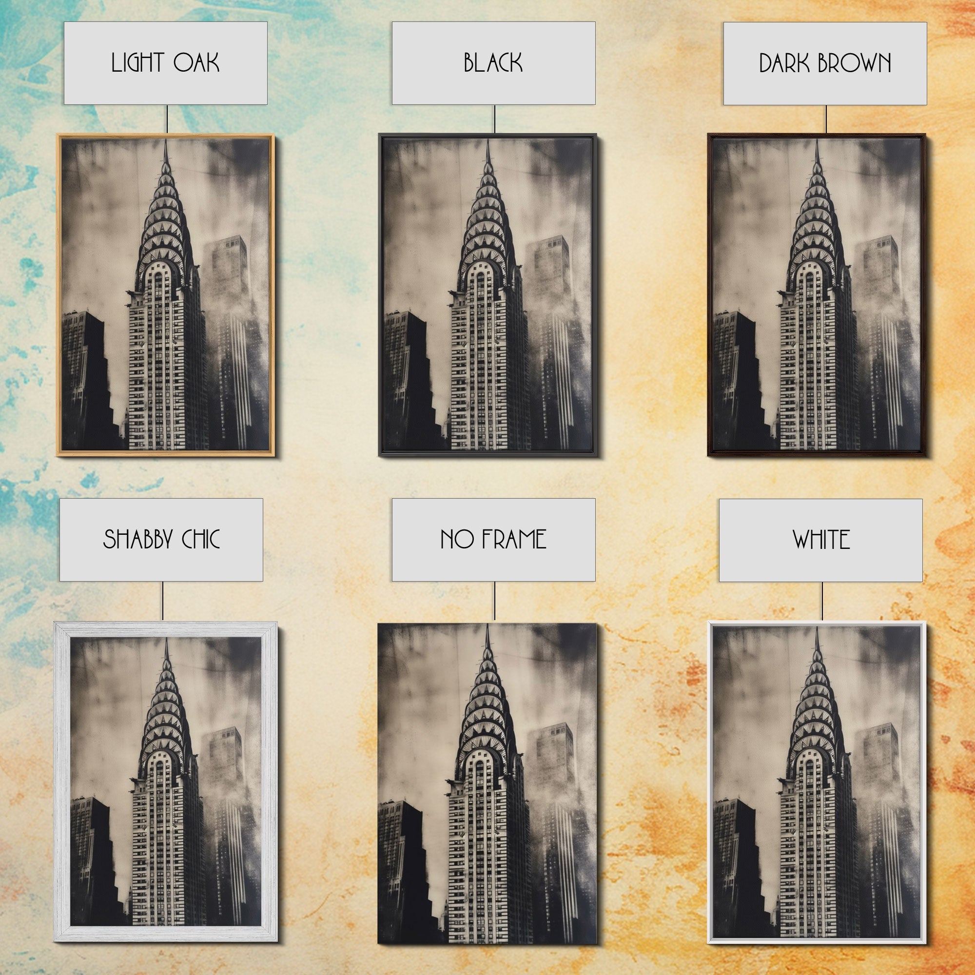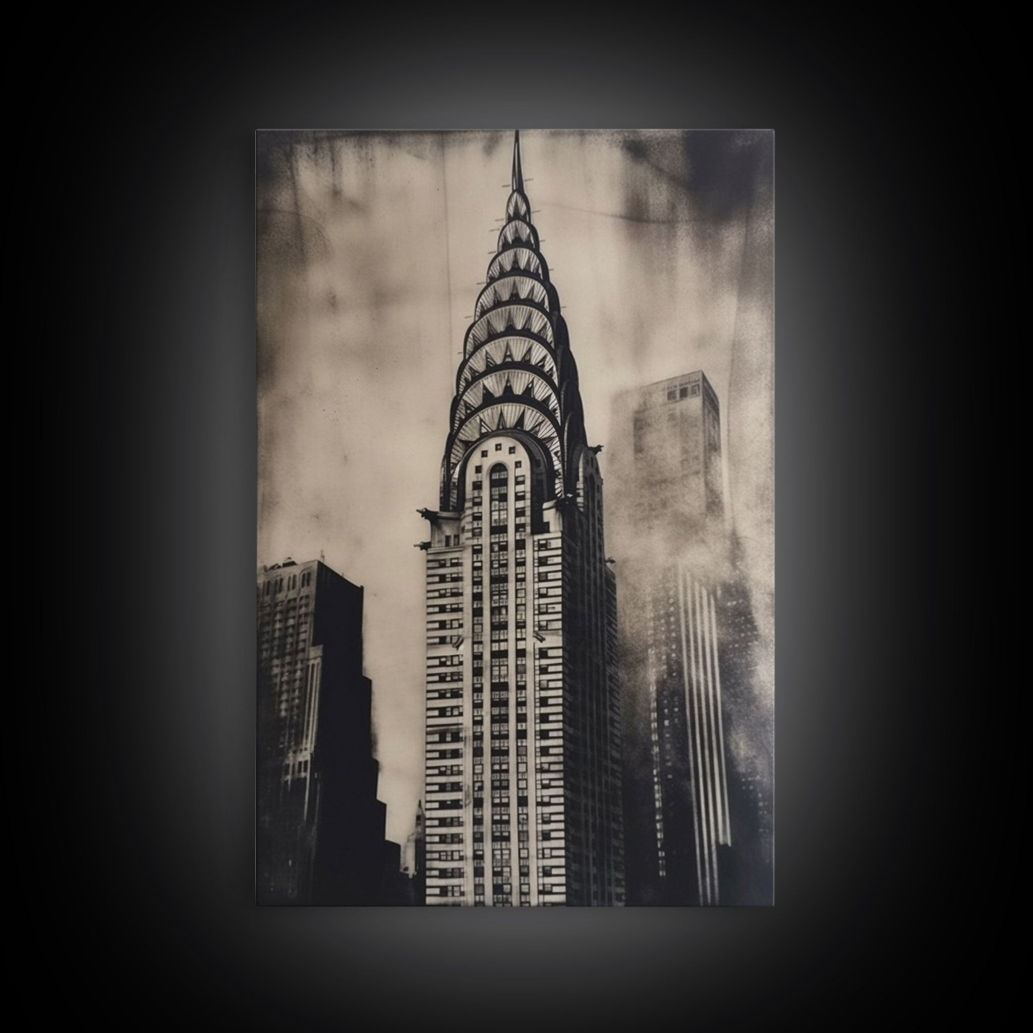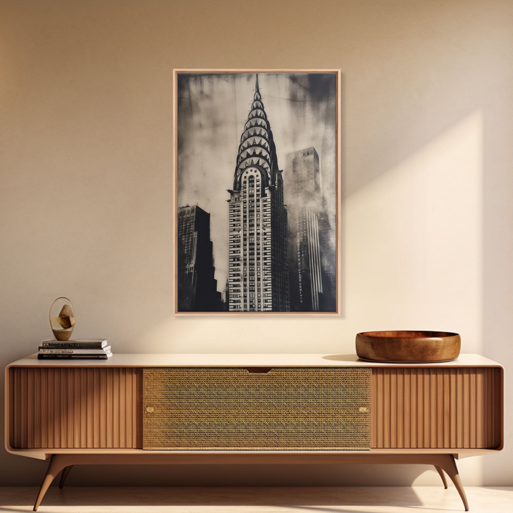 Chrysler Building Painting Framed Canvas Print, NYC Art, Art Deco Wall Decor, New York City Historic Art