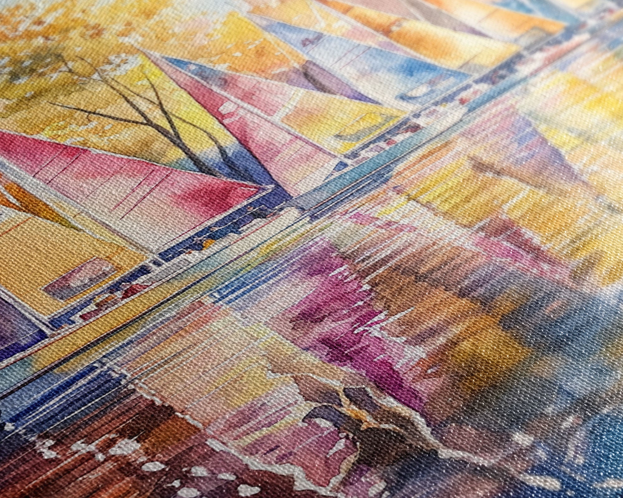 Most of our canvases are made in the USA, with the exception of canvases ordered with the light oak unstained frames, and any large canvases (24x48, 30x60, 16x48 and 20x60) ordered WITH a frame. These are temporarily made in and shipped from Europe, while we try to find a more consistent supplier in the USA.