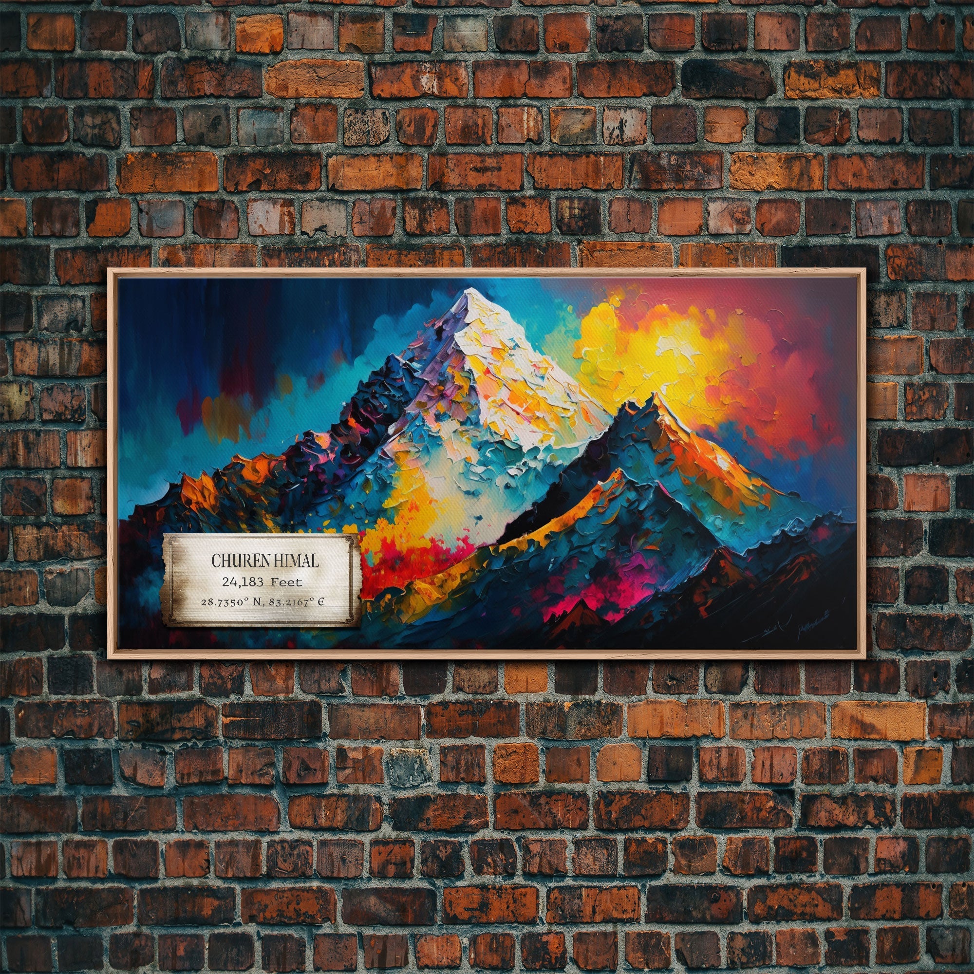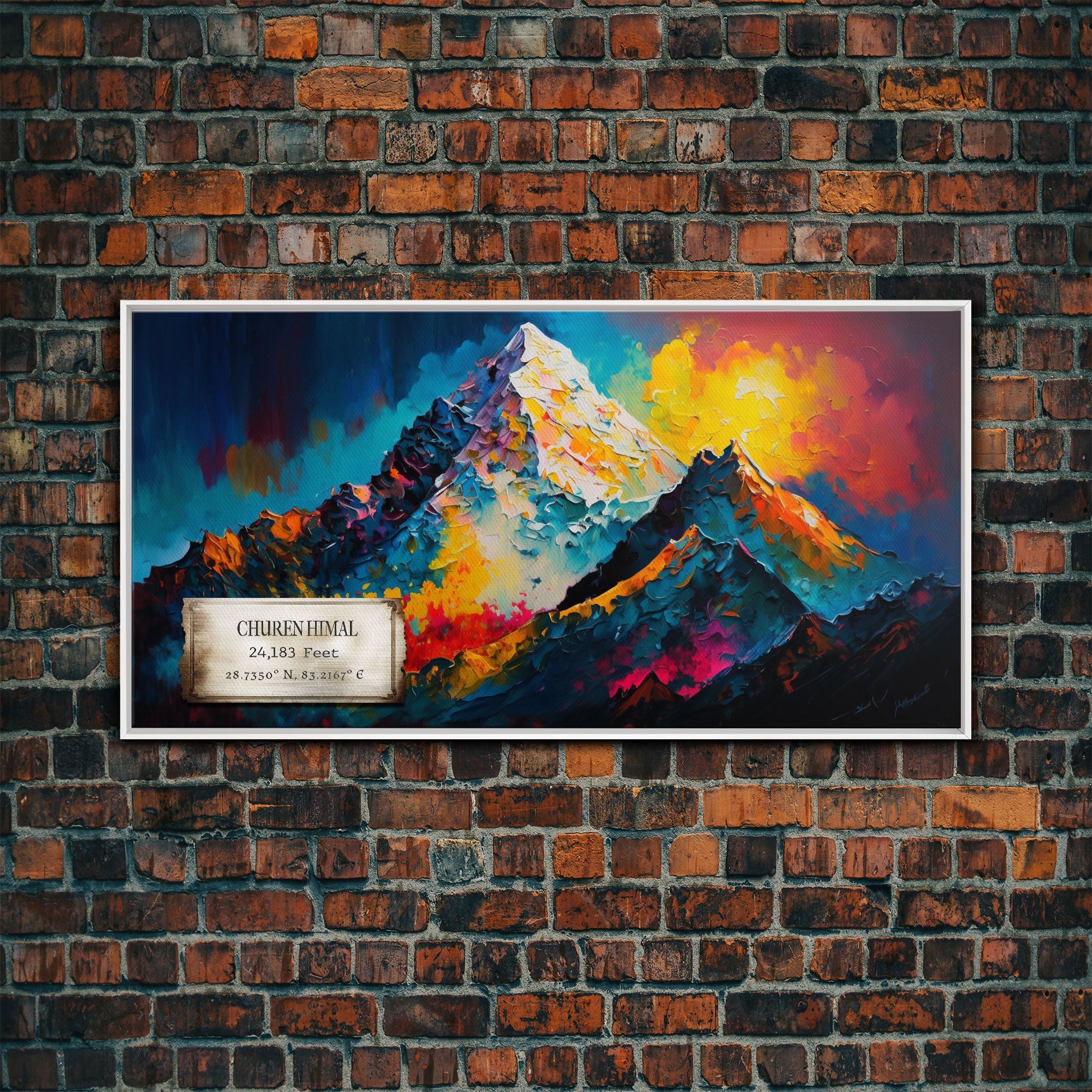 Churen Himal, Travel Poster Wall Art, Framed Canvas Print, Mountain Art, Mountain Landscape Painting