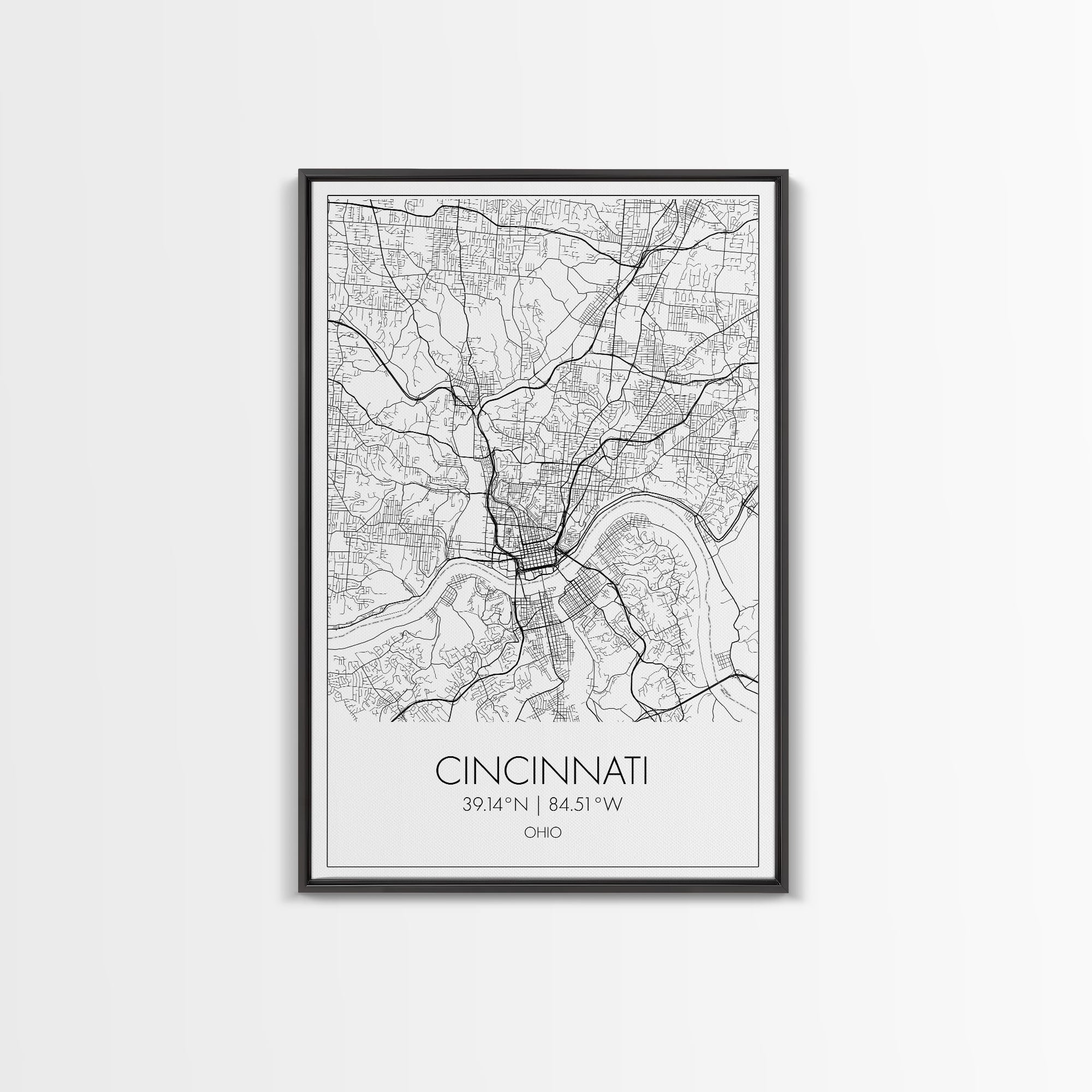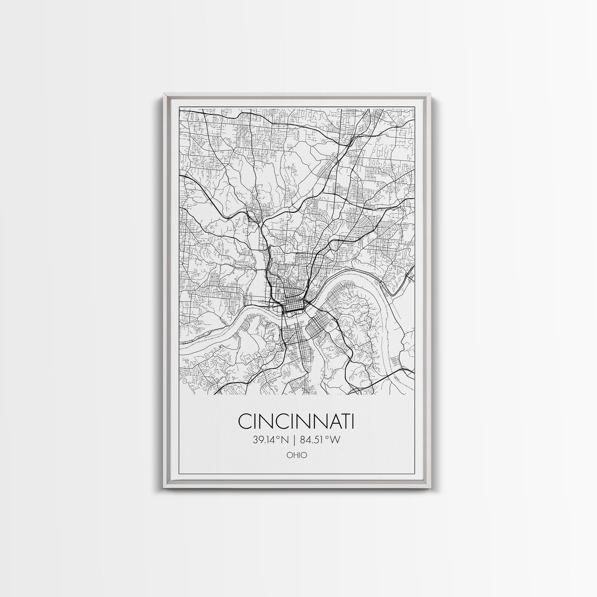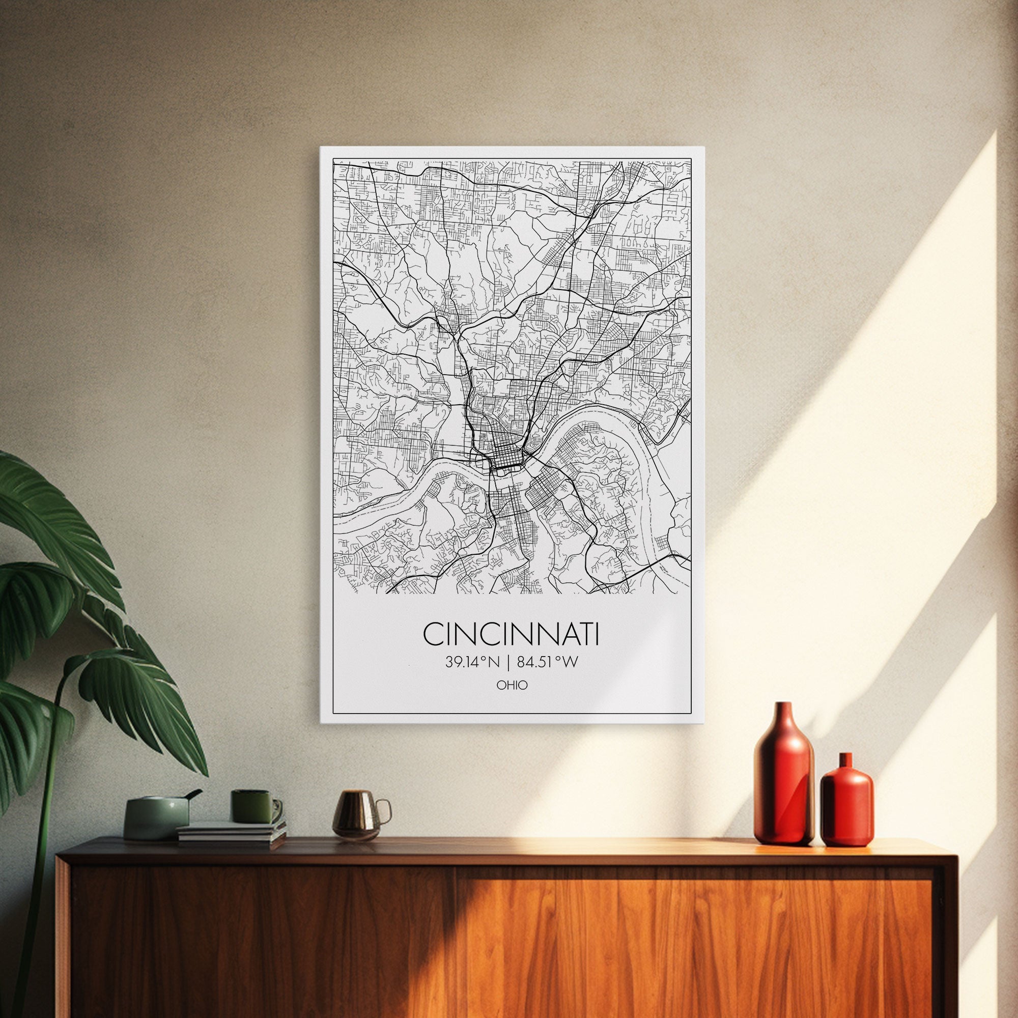 Cincinnati Street Map, Ohio Map, City Map Art, Minimalist Art, Wall Art, Canvas Print, Canvas Wall Art, Travel Wall Décor, Gift For Her
