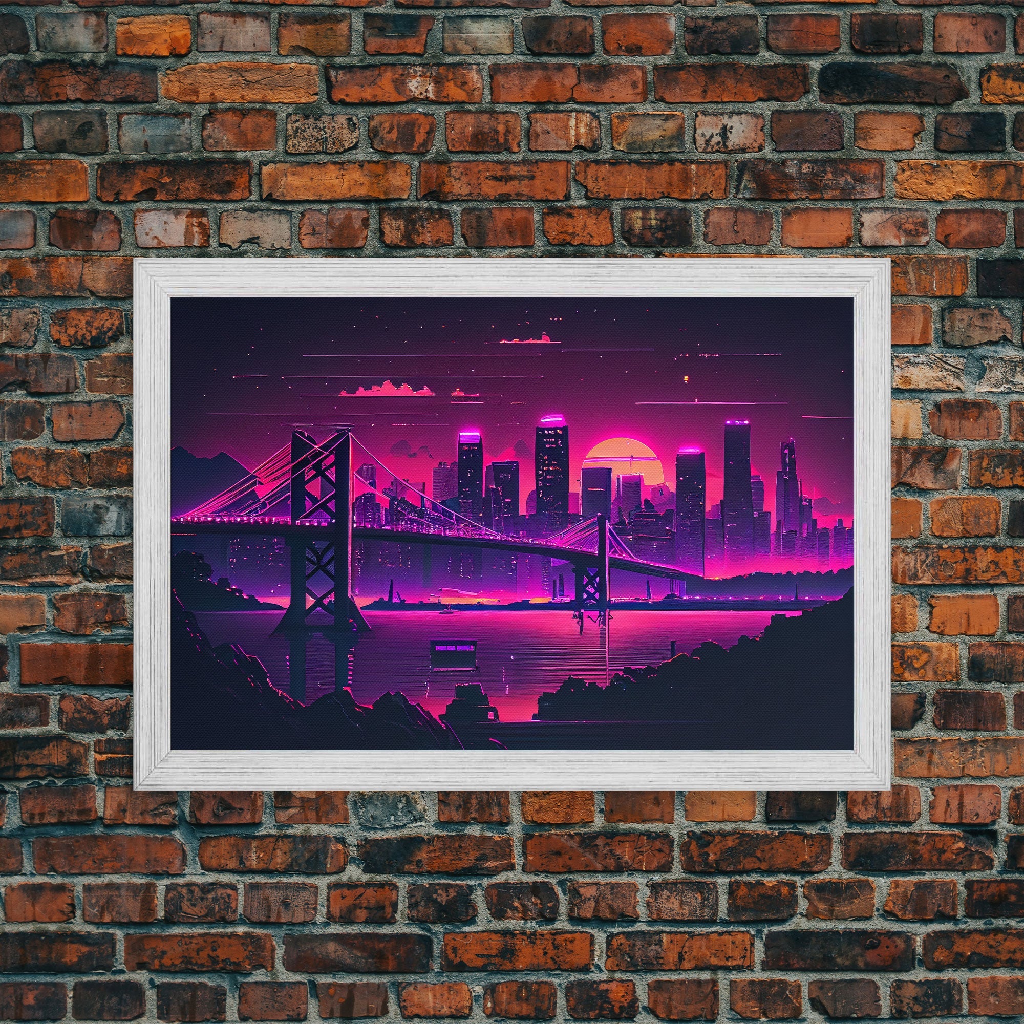 Cityscape Bridge Full Moon Purple Night Fine Art Print, Wall Decor, Wall Art Print, Wall Poster