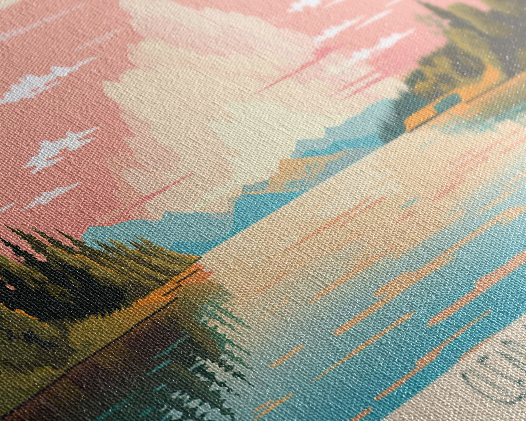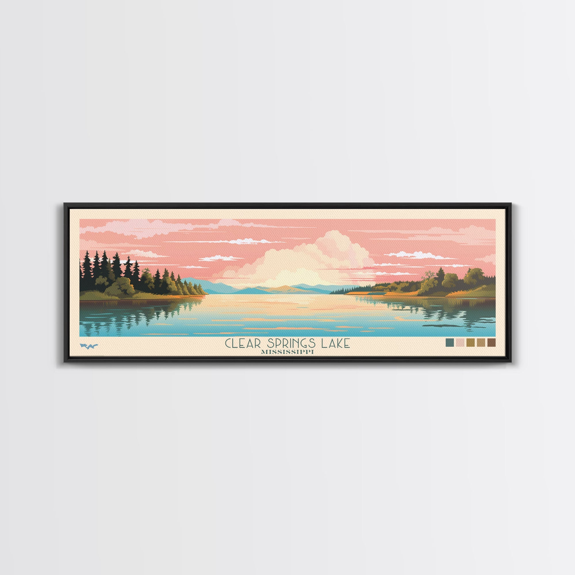 Clear Springs Lake Mississippi Framed Canvas Print, Pop Art Panoramic Travel Poster, Midcentury Modern, Wall Art, Scenic Nature Painting, Bedroom Decor, Living Room Art