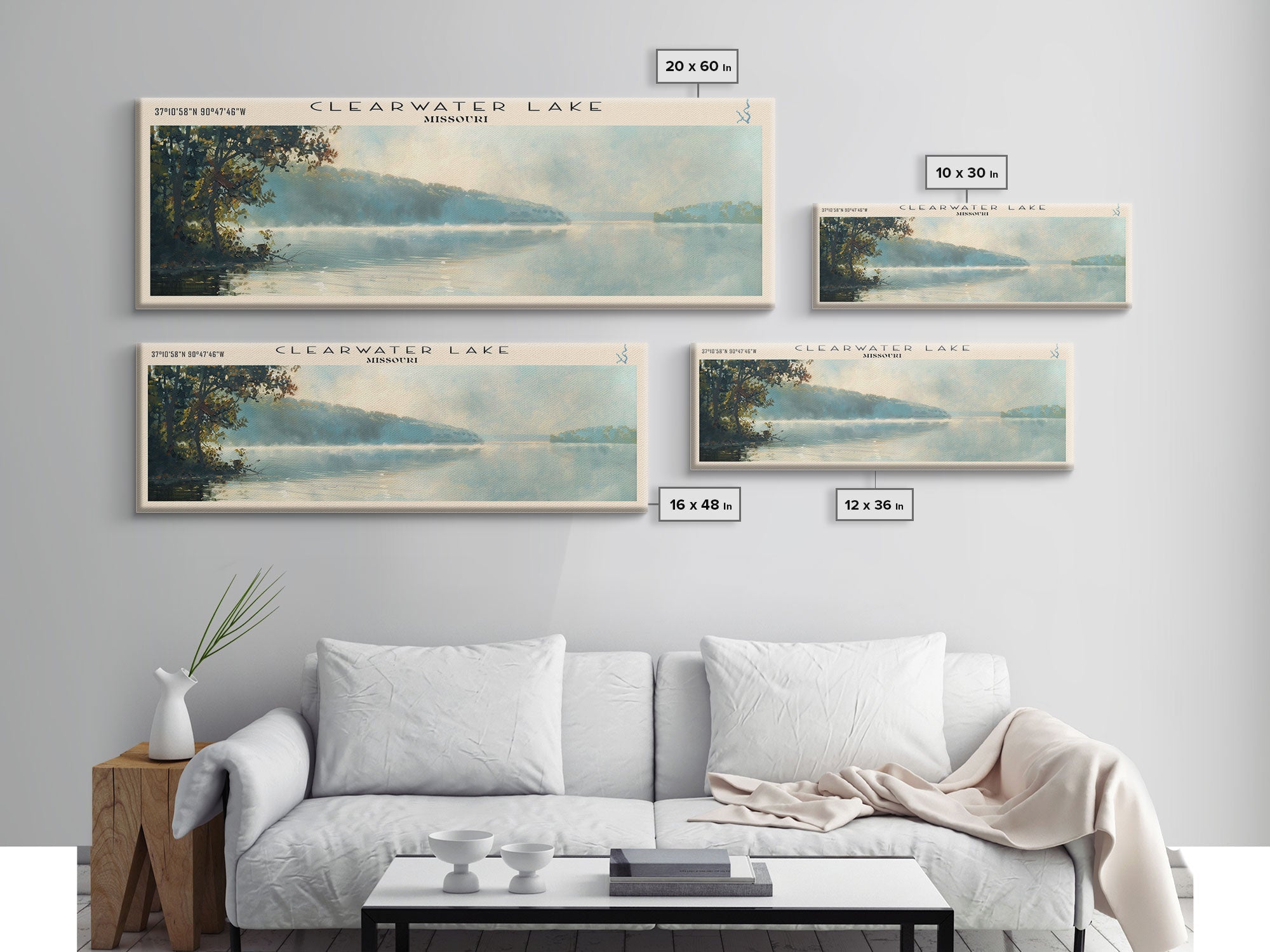 Clearwater Lake Missouri Framed Canvas Print, Lake House Decor, Panoramic Wide Art, Travel Poster, Rustic Lake Painting, Nature Art