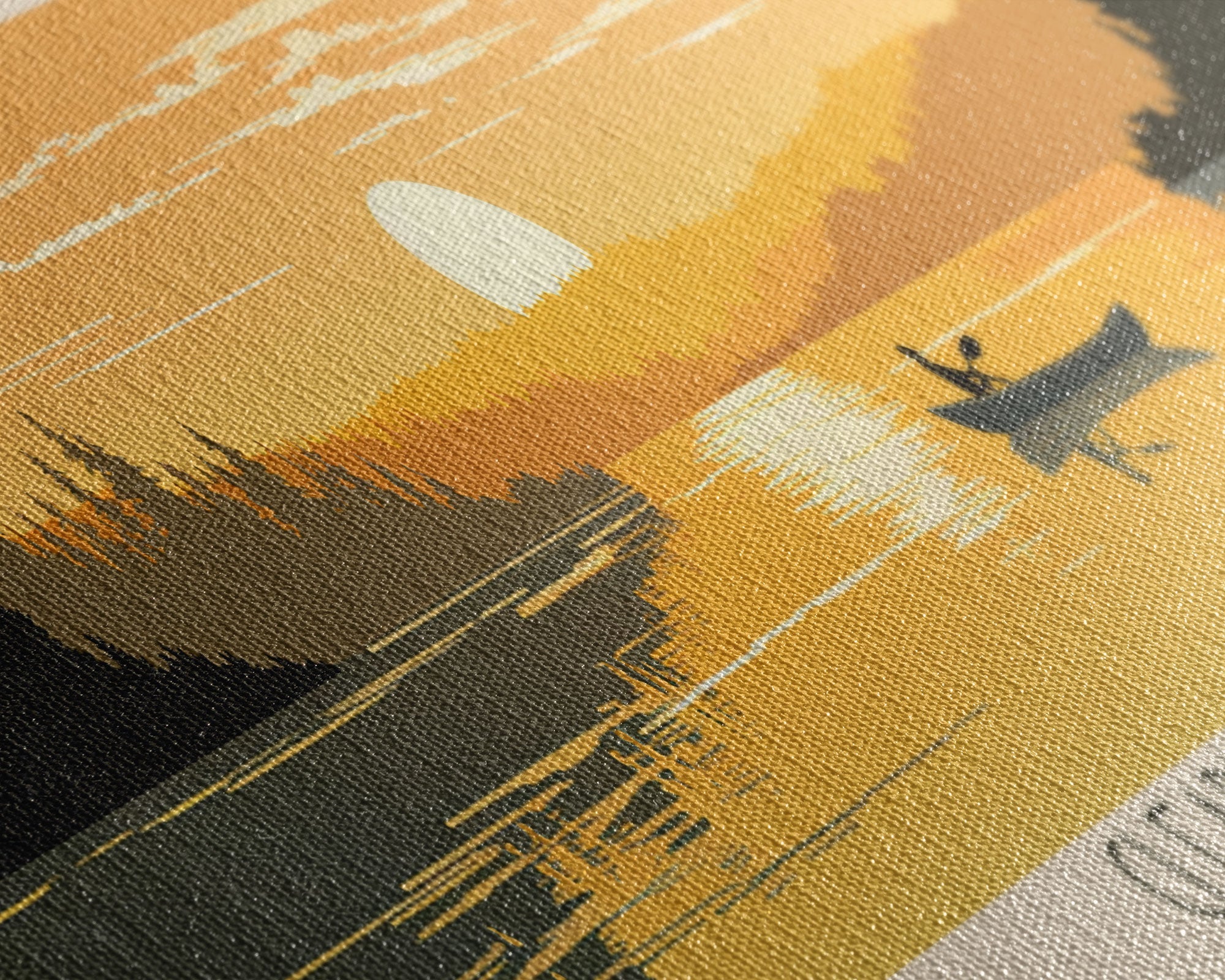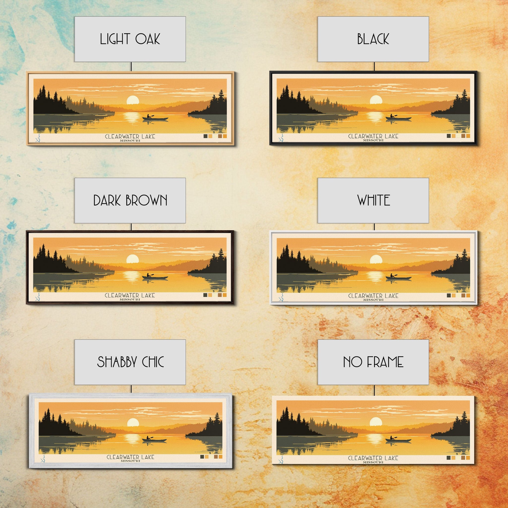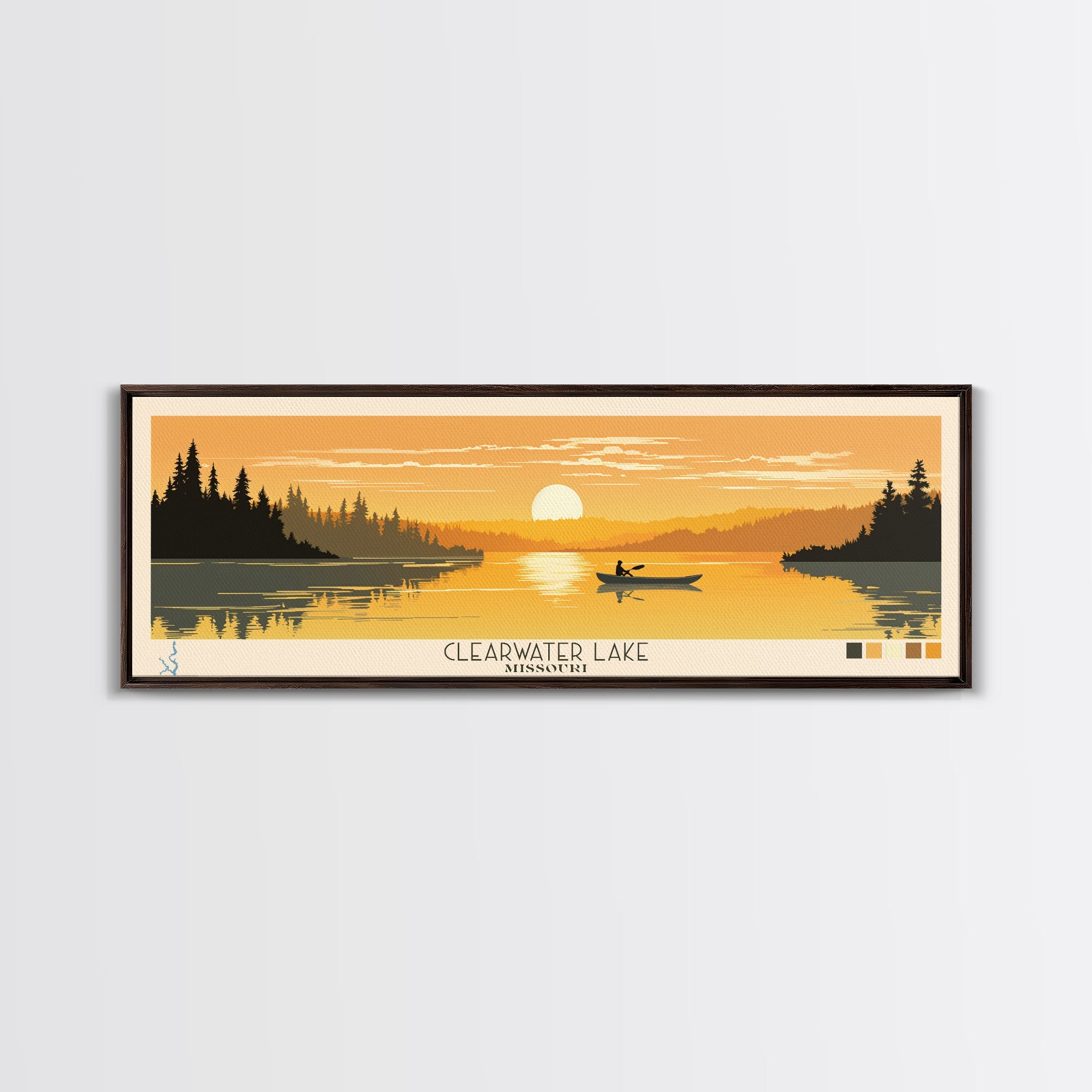 Clearwater Lake Missouri Framed Canvas Print, Pop Art Panoramic Travel Poster, Midcentury Modern, Wall Art, Scenic Nature Painting, Bedroom Decor, Living Room Art