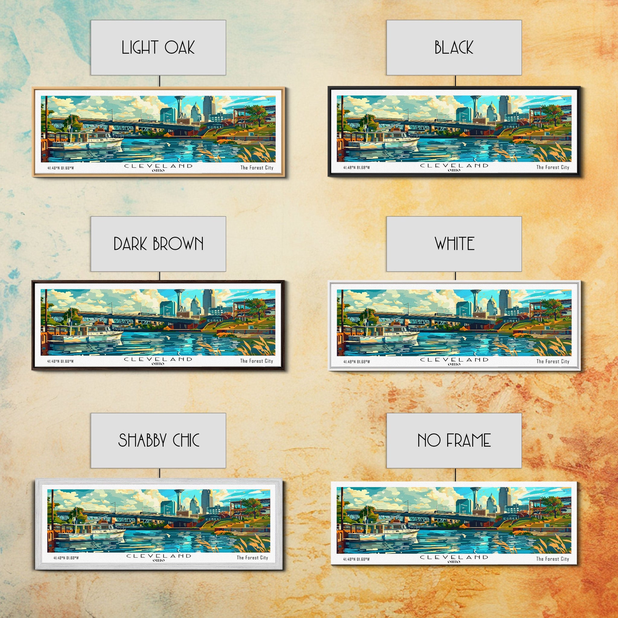 Cleveland Ohio Panoramic Wall Art Framed Canvas Print, Mid Century Modern Art, Pop Art Style, Travel Poster, Home Decor, Retro Style