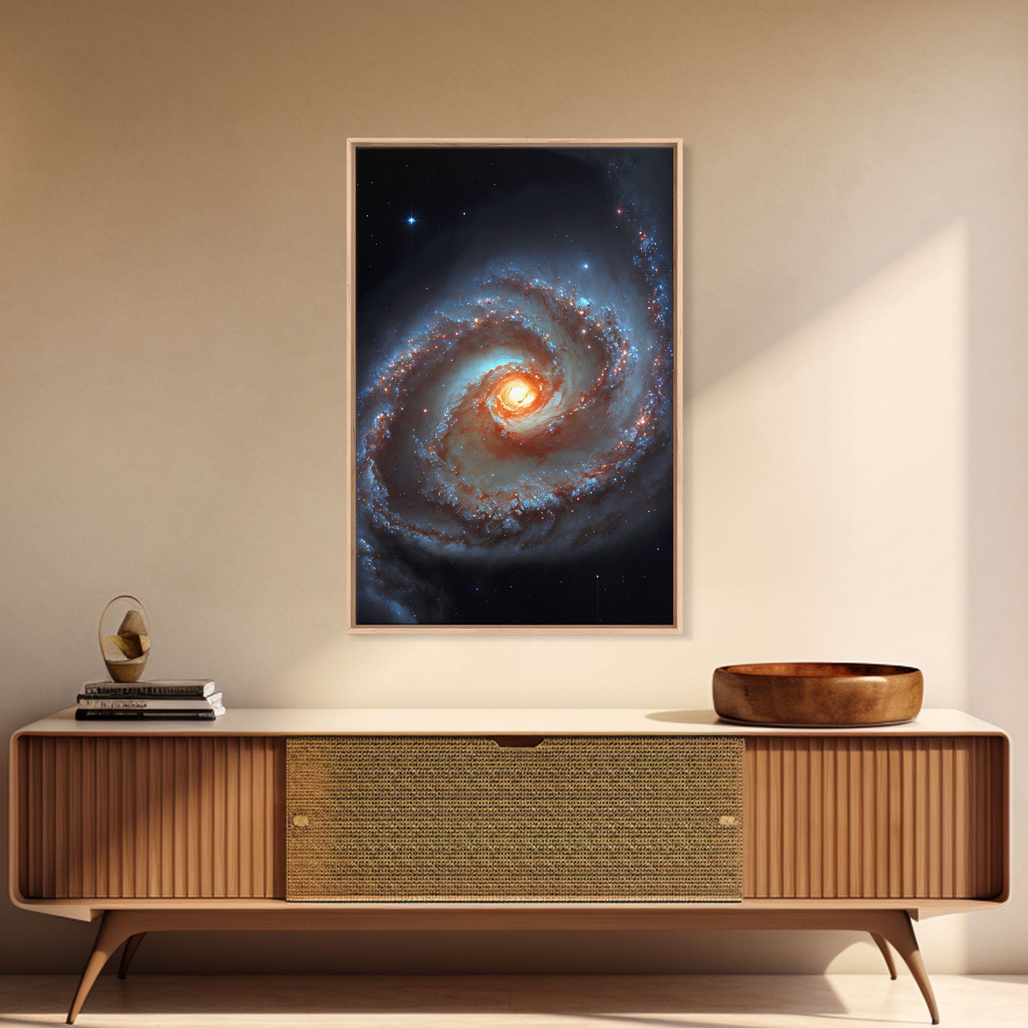 Close up view of a spiral galaxy, space art, framed canvas print, astronomy art