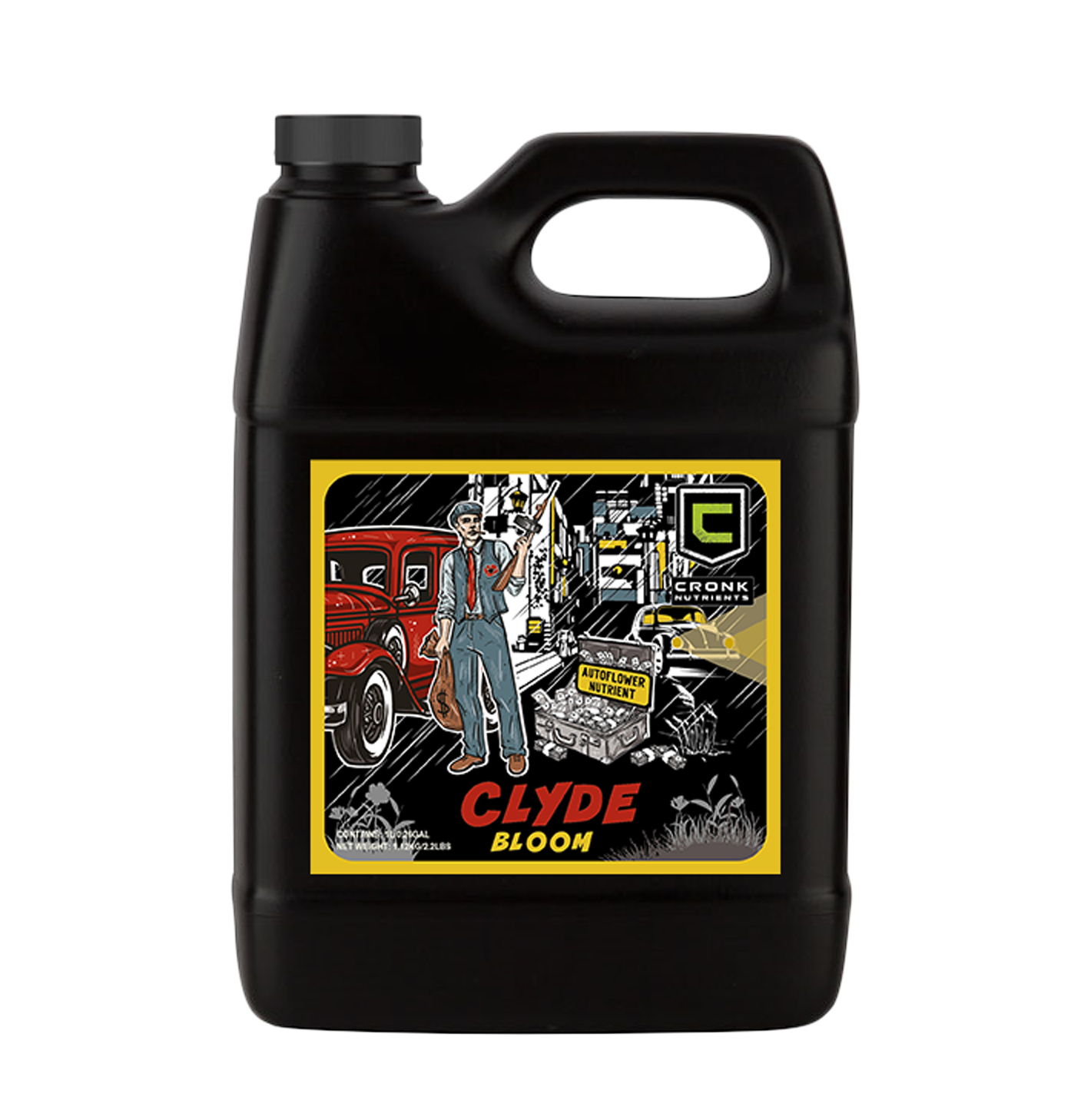 Attention growers: Clyde by Cronk Nutrients is our premium autoflower flowering nutrient that's a vital component of our autoflower nutrient regimen. Use Clyde with our CalMag during the flowering stage for optimal growth. During the vegetative stage, use Bonnie with our CalMag for the best results. Remember, Bonnie and Clyde, are used during different stages and are never used together at the same time.