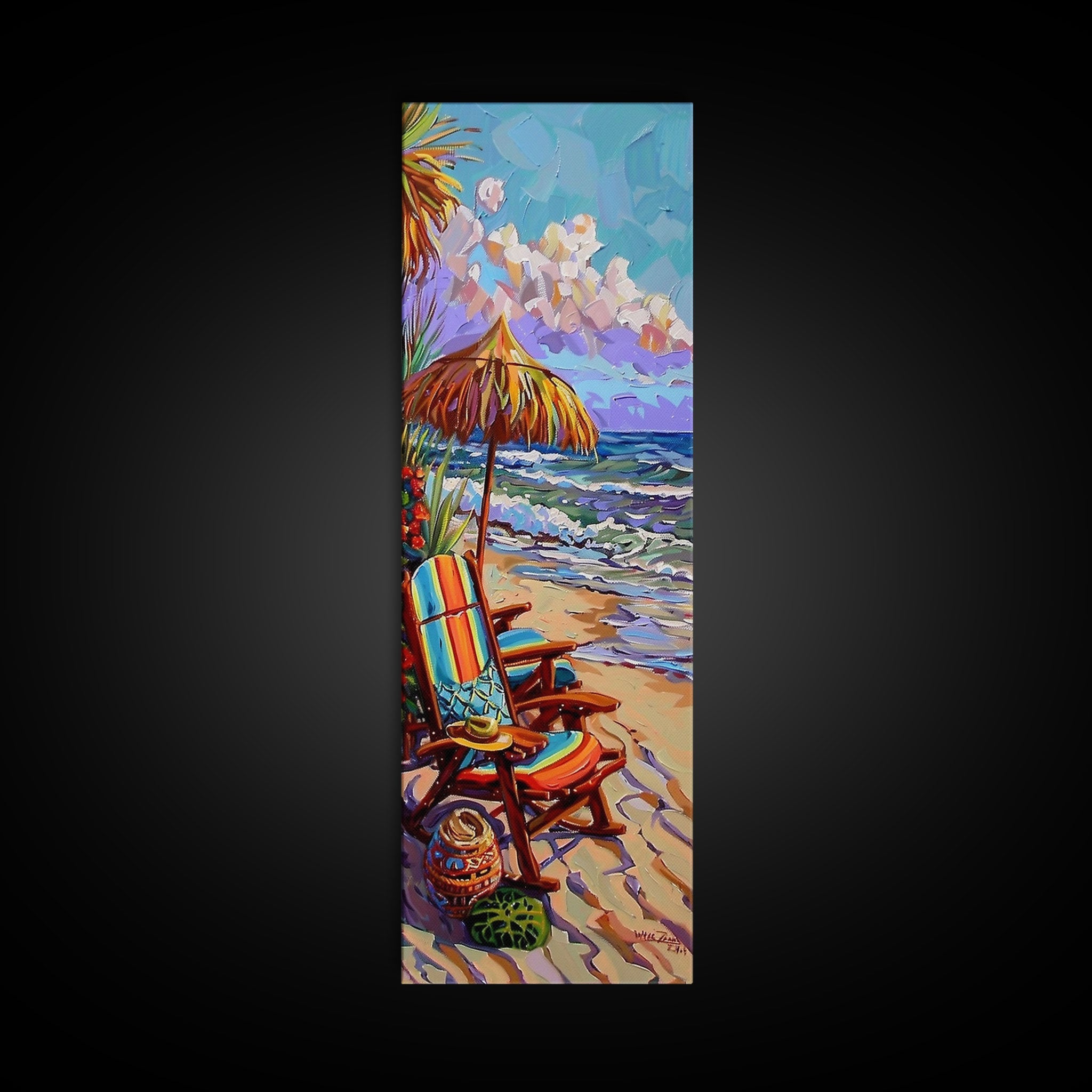 Coastal Printed Canvas Art, Beach Wall Art Framed, Contemporary Narrow Wall Art Print, New House Gift for Her, Surf Wall Art for Beach House