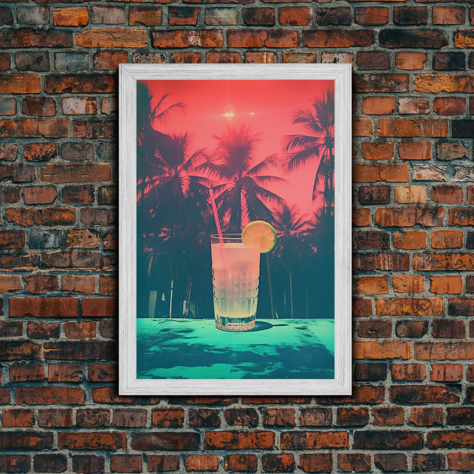 Cocktail Wall Print, Palm Tree Wall Art, Tropical Wall Art, Beach Wall Art, Canvas Print, Wall Hanging, Portrait Art, Bar Decor, RV Wall Art