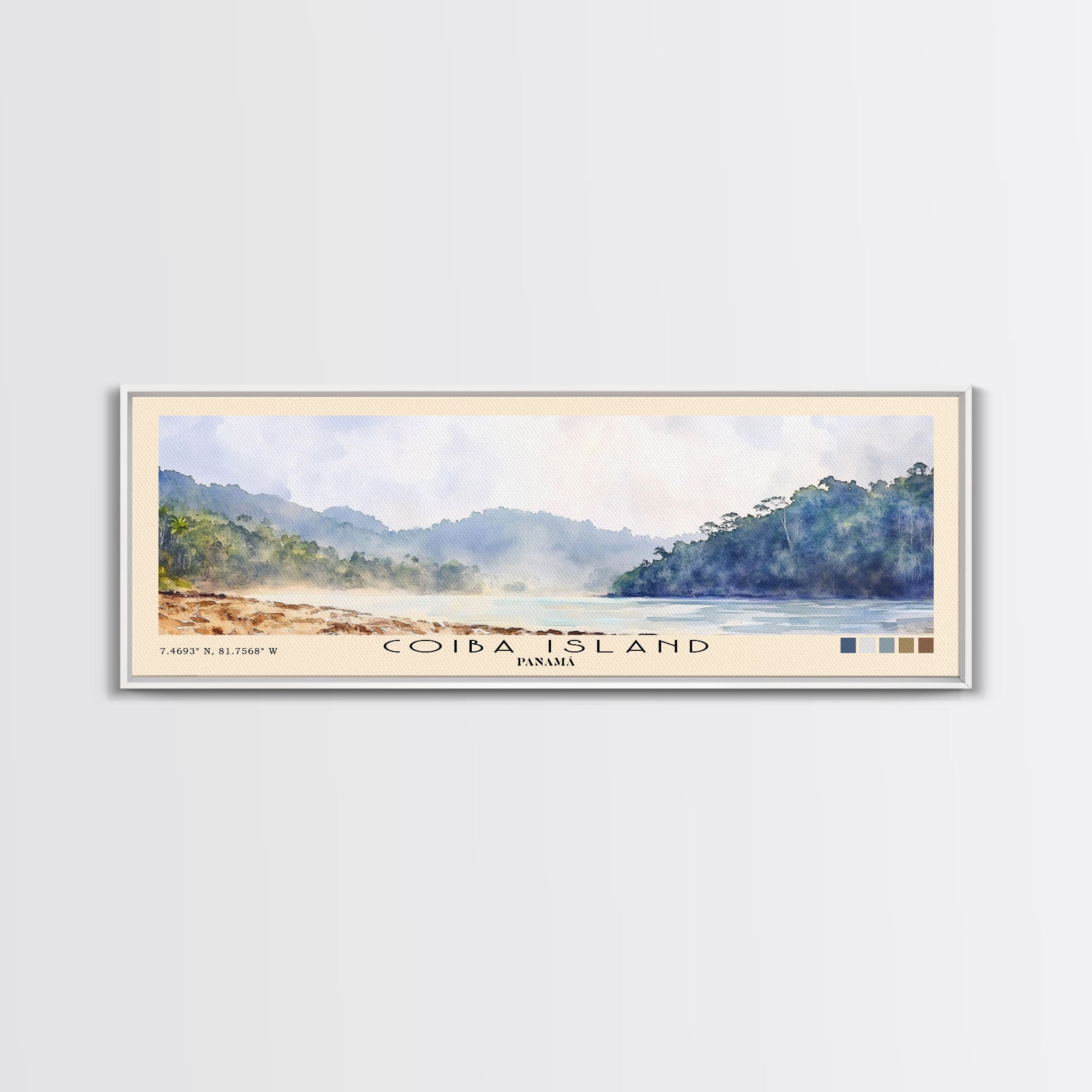 Coiba Island, Panamá Watercolor Beach Print, Vacation Gift, Panamá Wall Art, Framed Canvas Print, Framed Beach Painting
