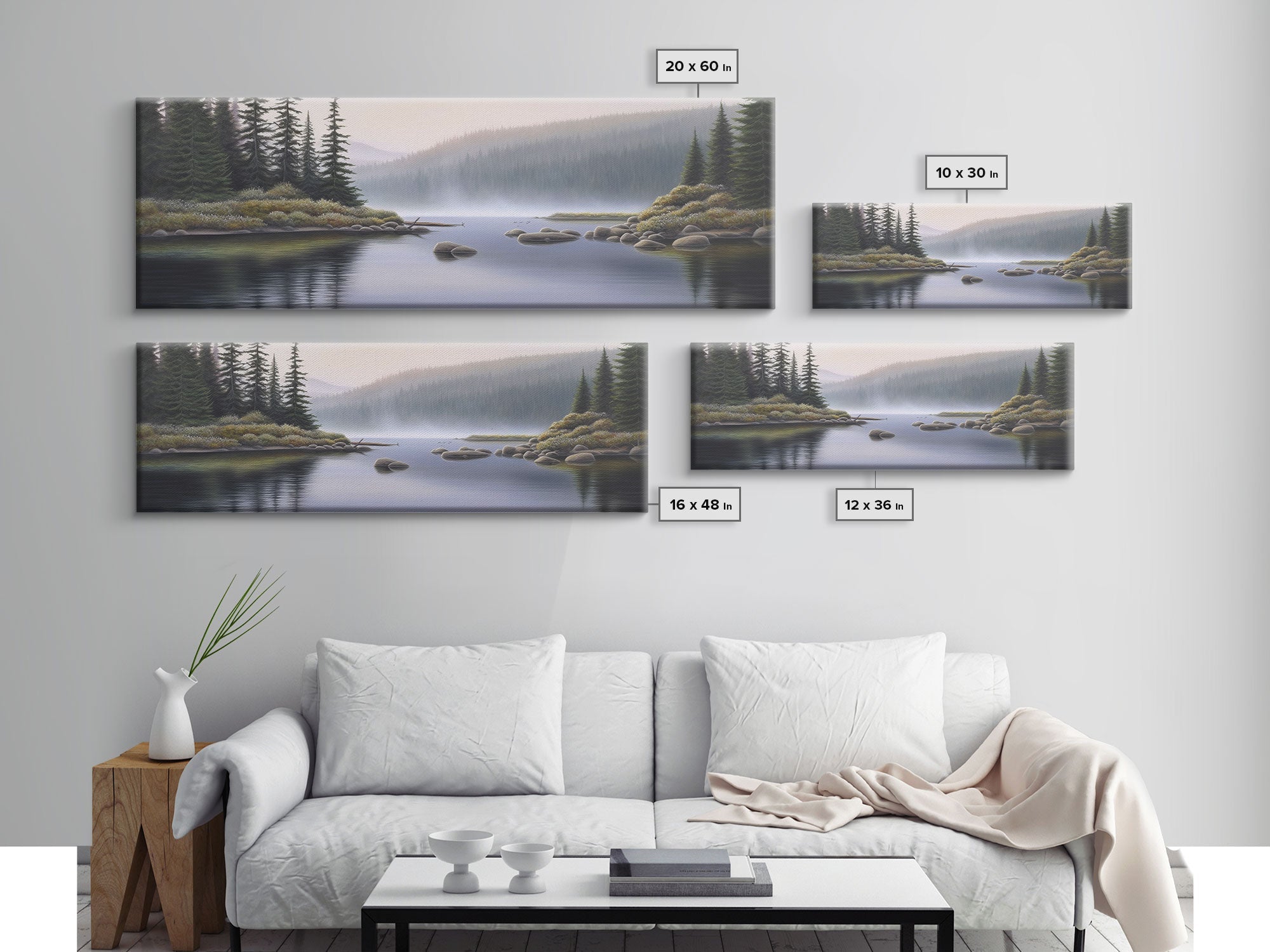 Colored Pencil Landscape Wall Art Print, Riverbank, River, Trees, Mountain, Nature Large Canvas Art Print, Panoramic, Wall Art, Canvas Print