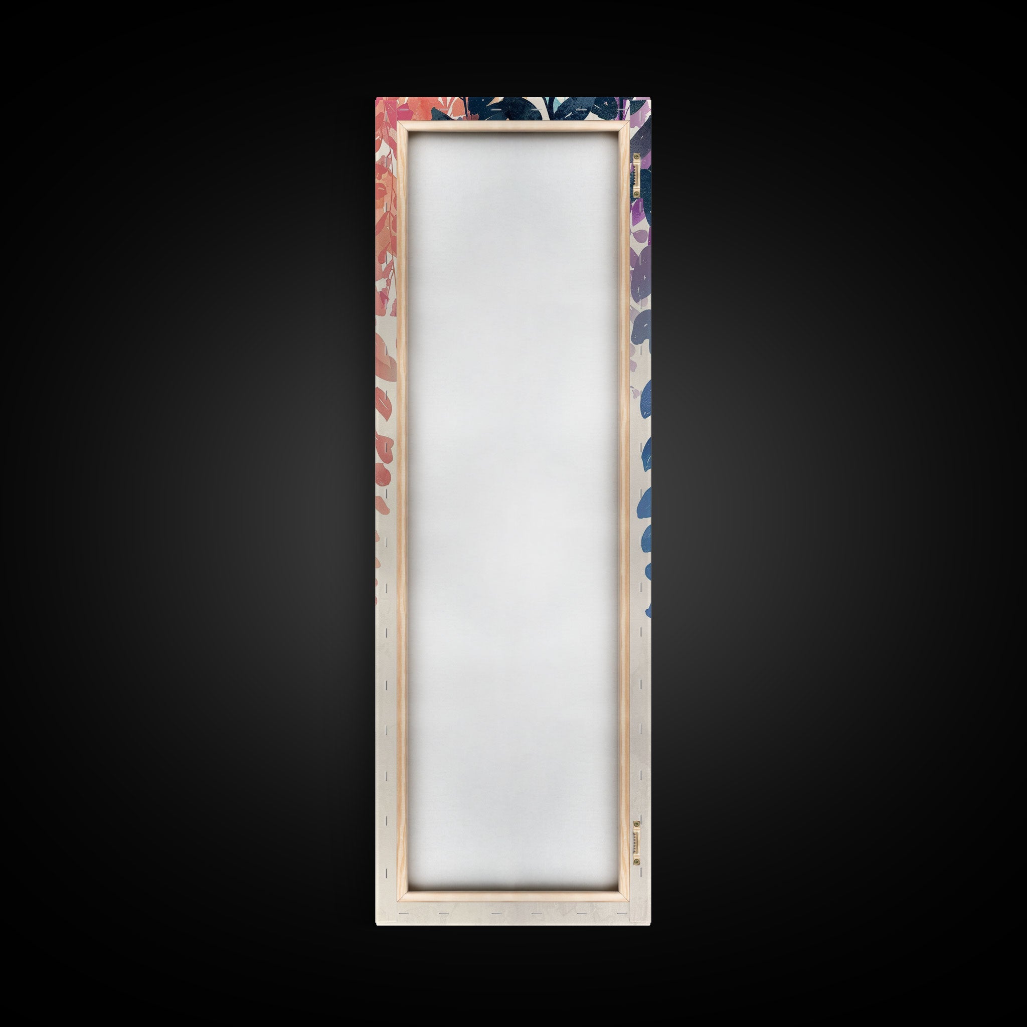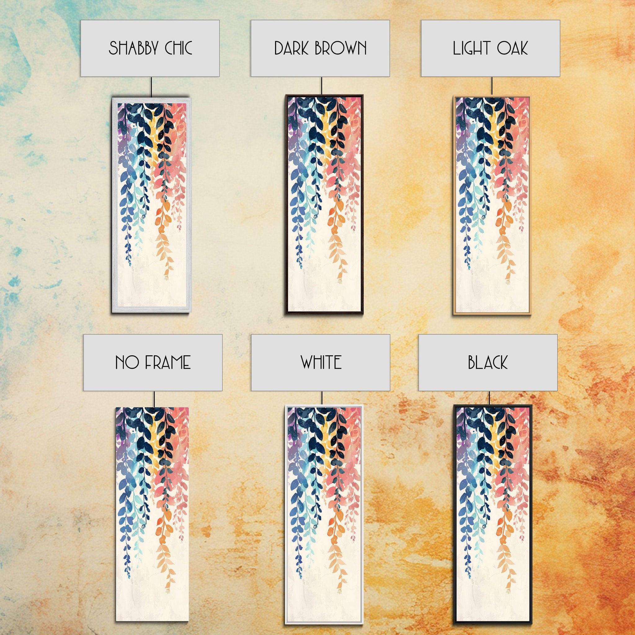 Colorful Leaves Hanging From Branches - Skinny Art Tall Art Framed Canvas Print Japanese Style Art Ukiyo-e Art