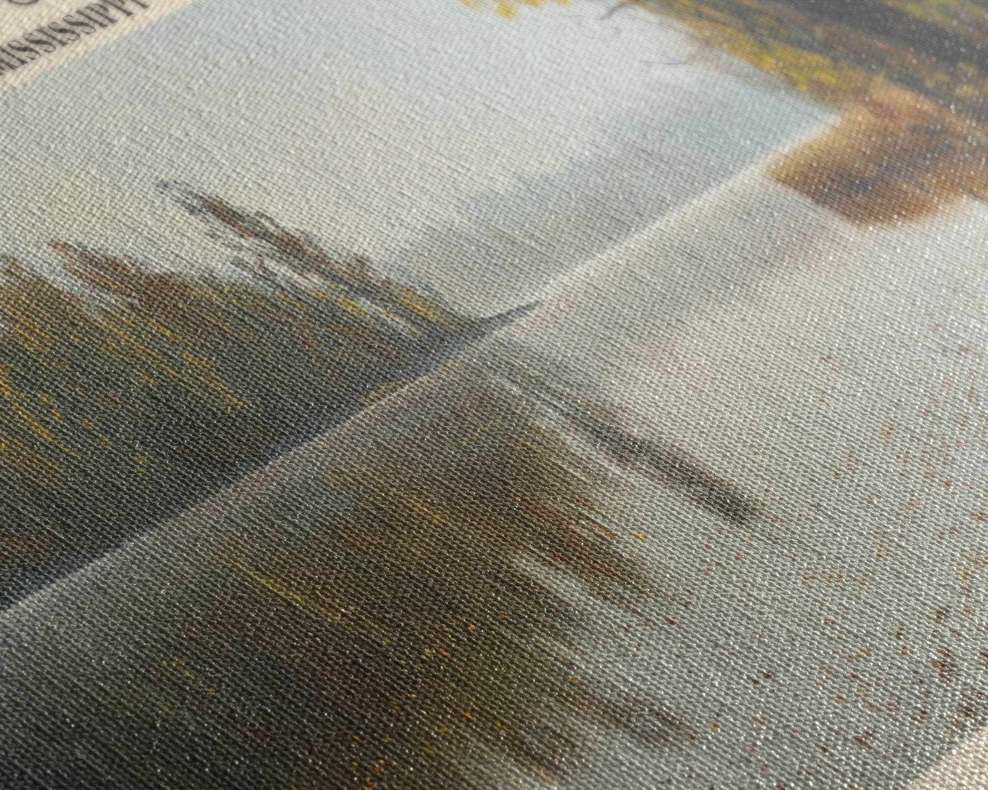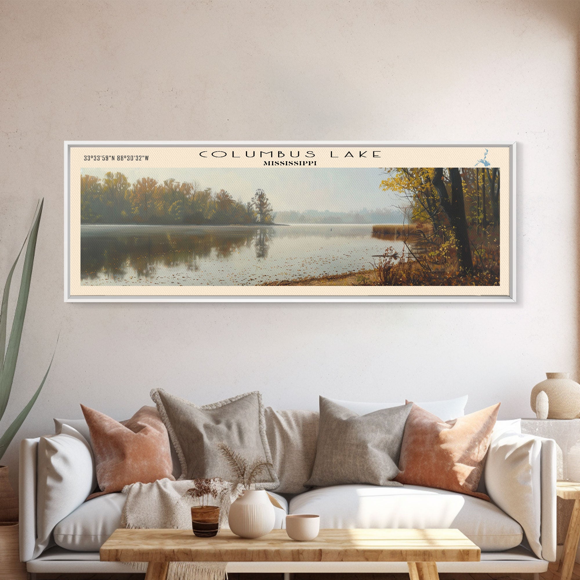 Columbus Lake Mississippi Framed Canvas Print, Panoramic Lake House Decor, Wide Wall Art, Travel Poster, Rustic Lake Painting, Nature Art