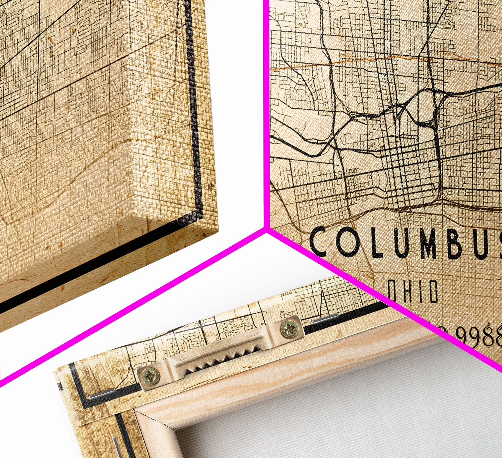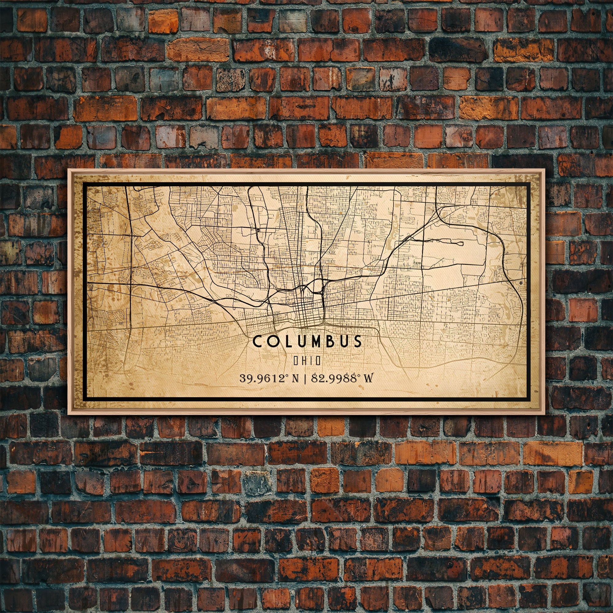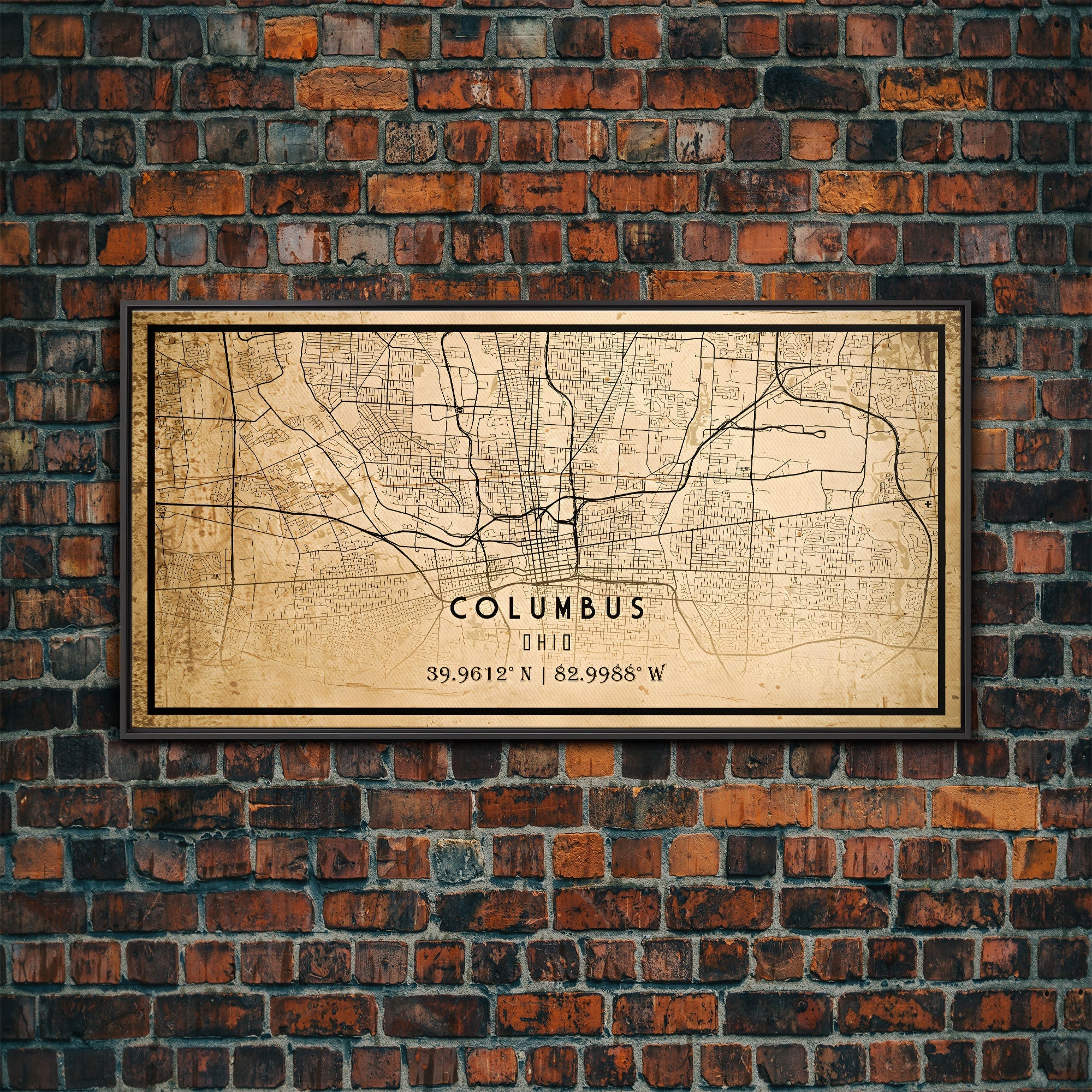 Columbus vintage map print poster or framed canvas, Ohio map print poster canvas, Columbus city map print poster canvas