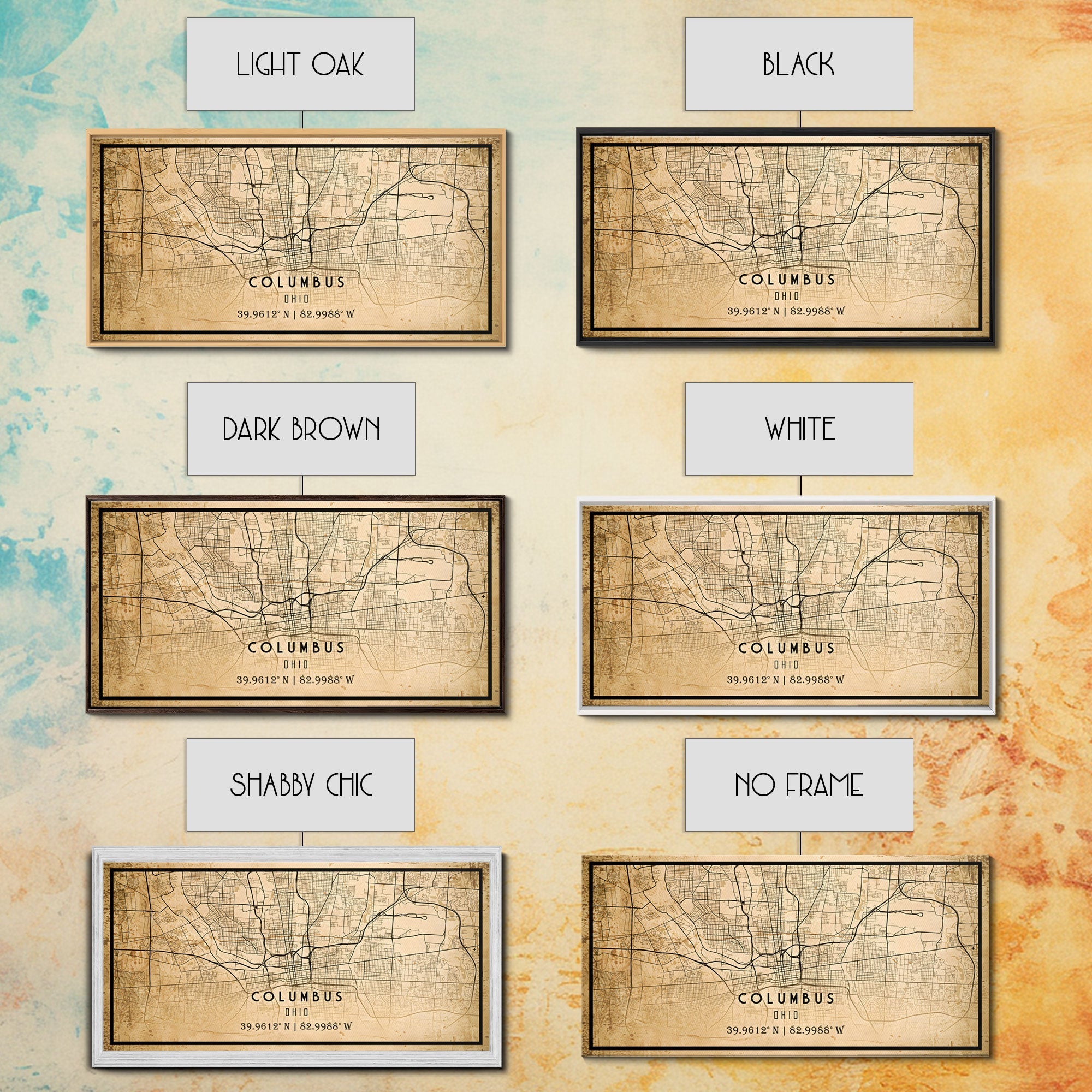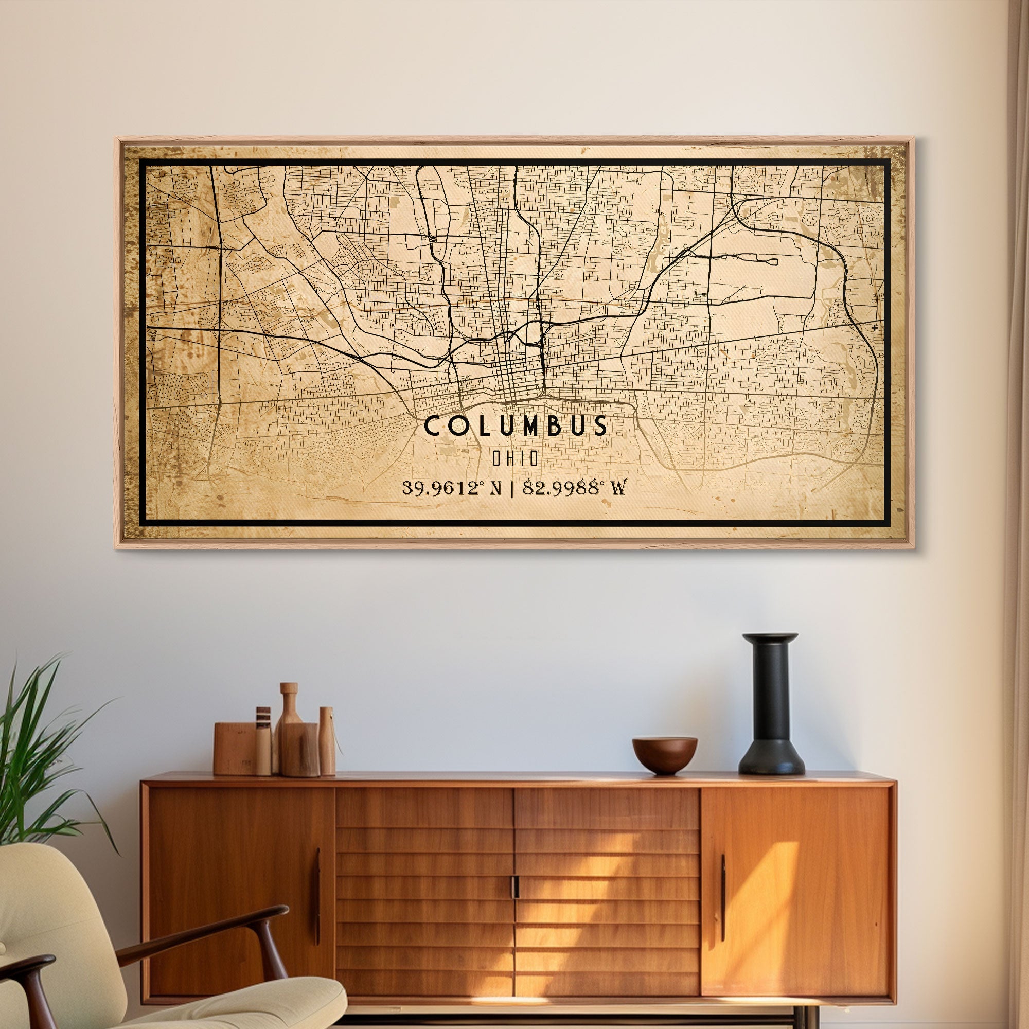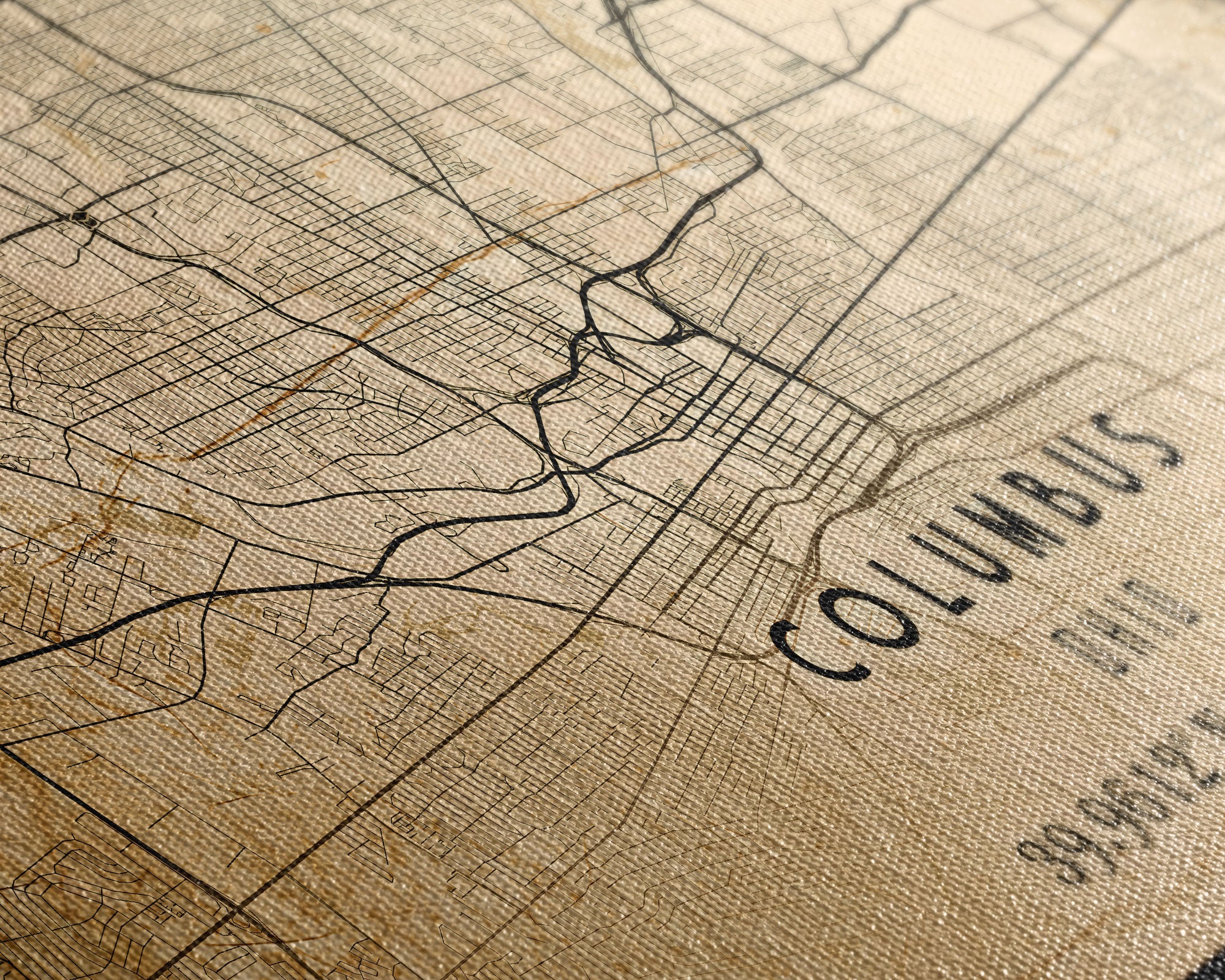 Columbus vintage map print poster or framed canvas, Ohio map print poster canvas, Columbus city map print poster canvas