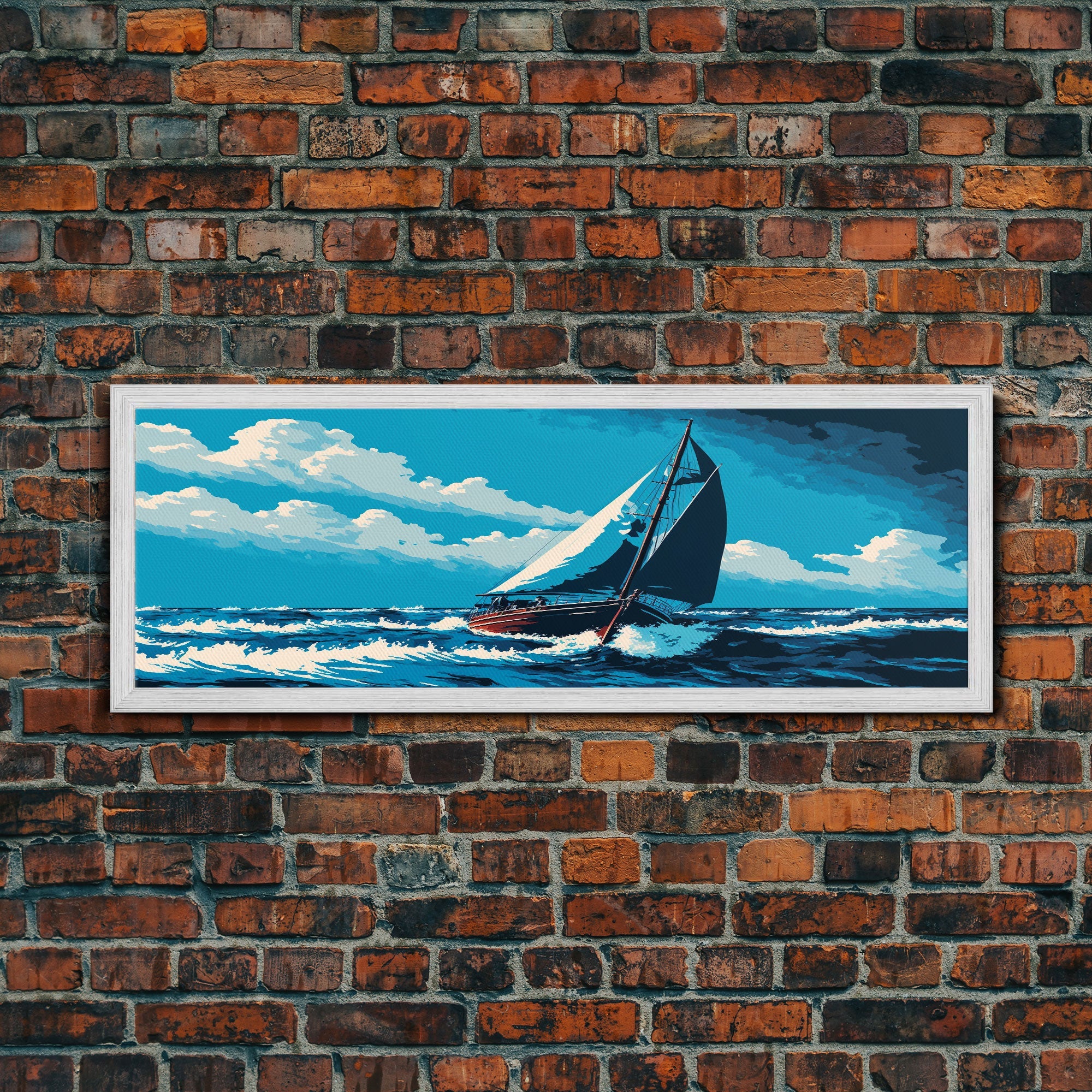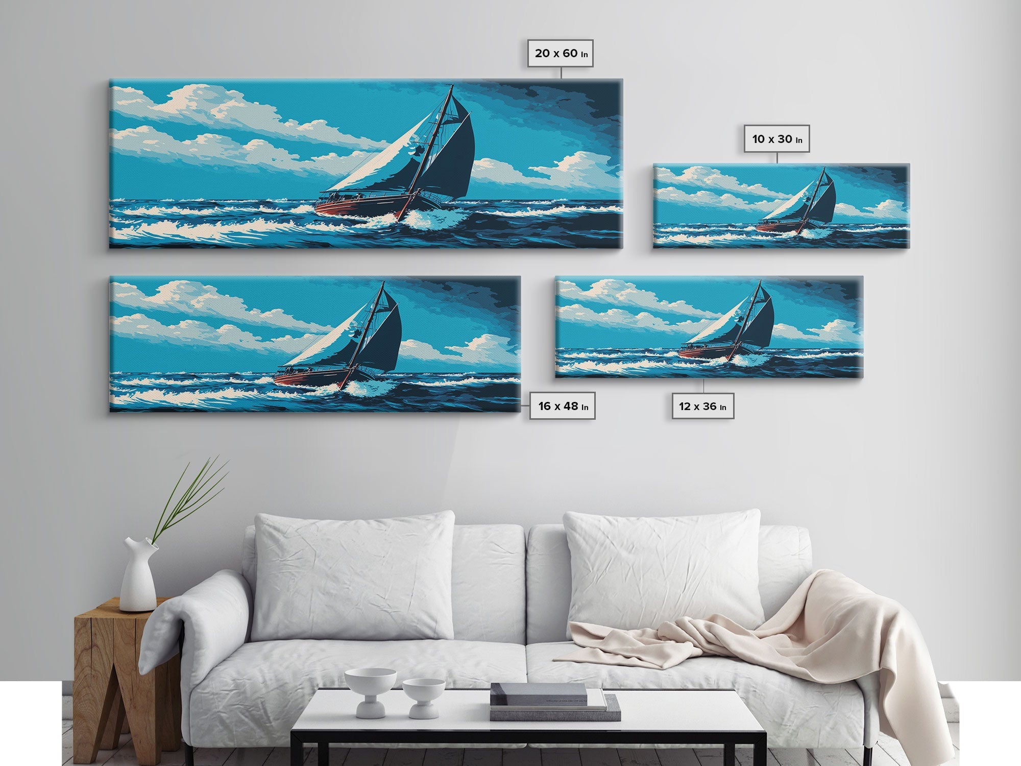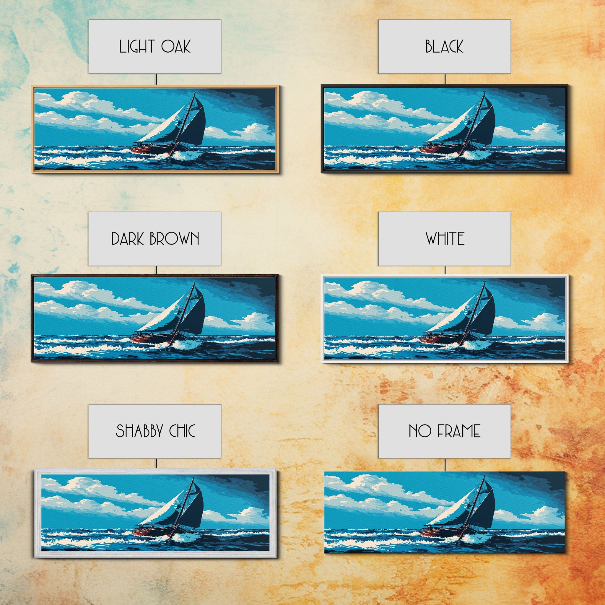 Come Sail Away - Panoramic Sail Boat Art - Framed Canvas Print - Oil Painting Reprint - Framed Art - Sailing On The Ocean Blue