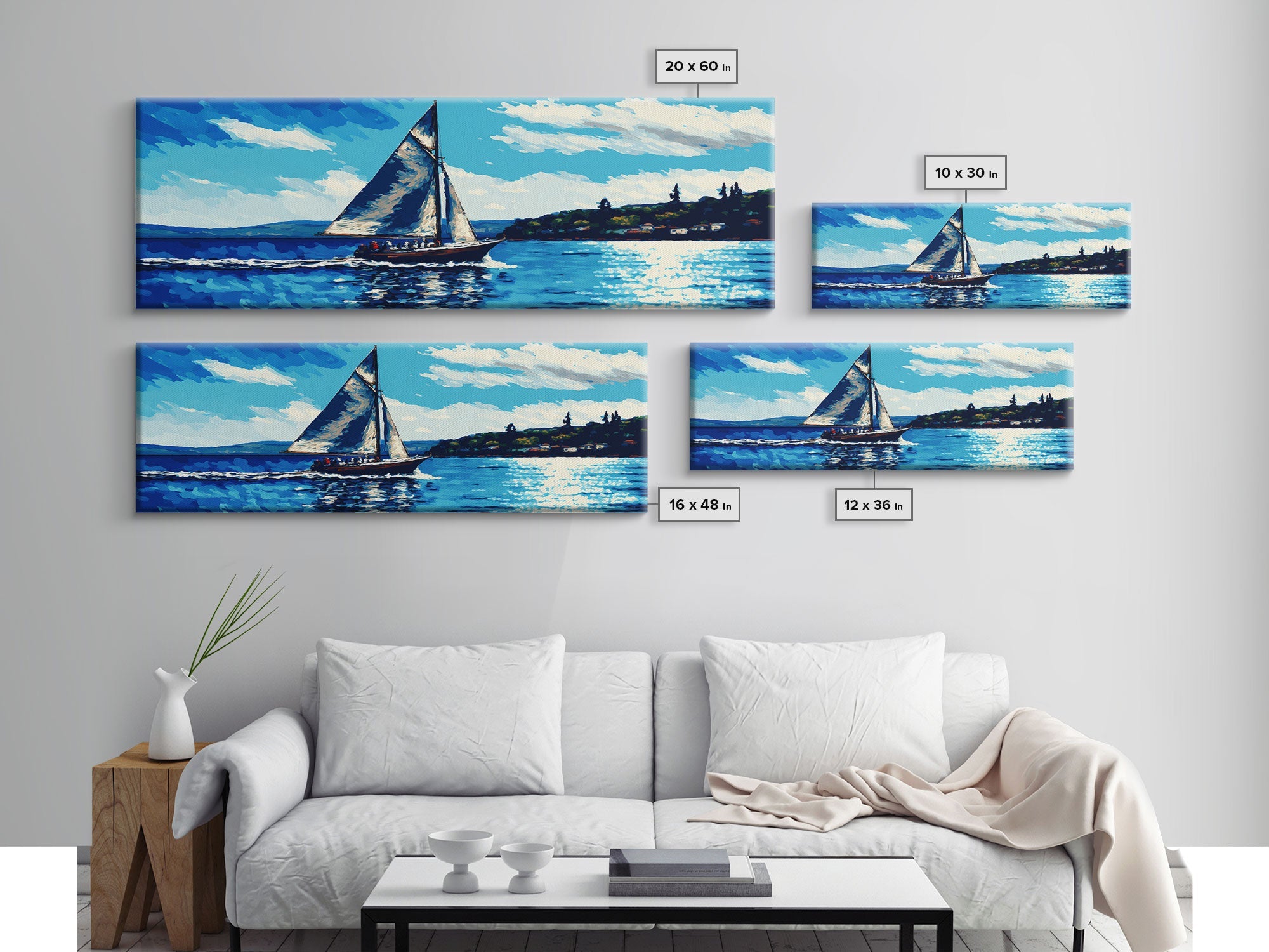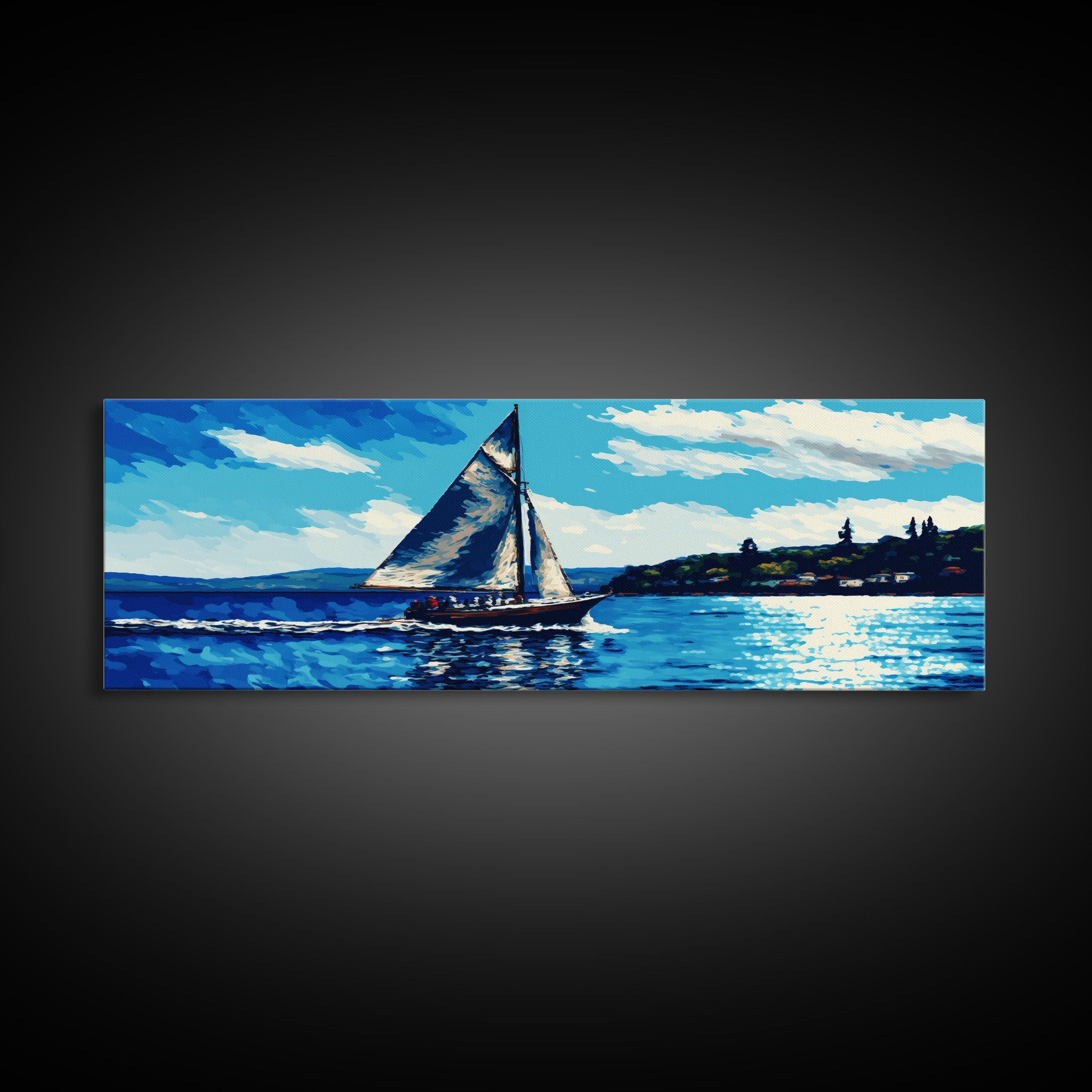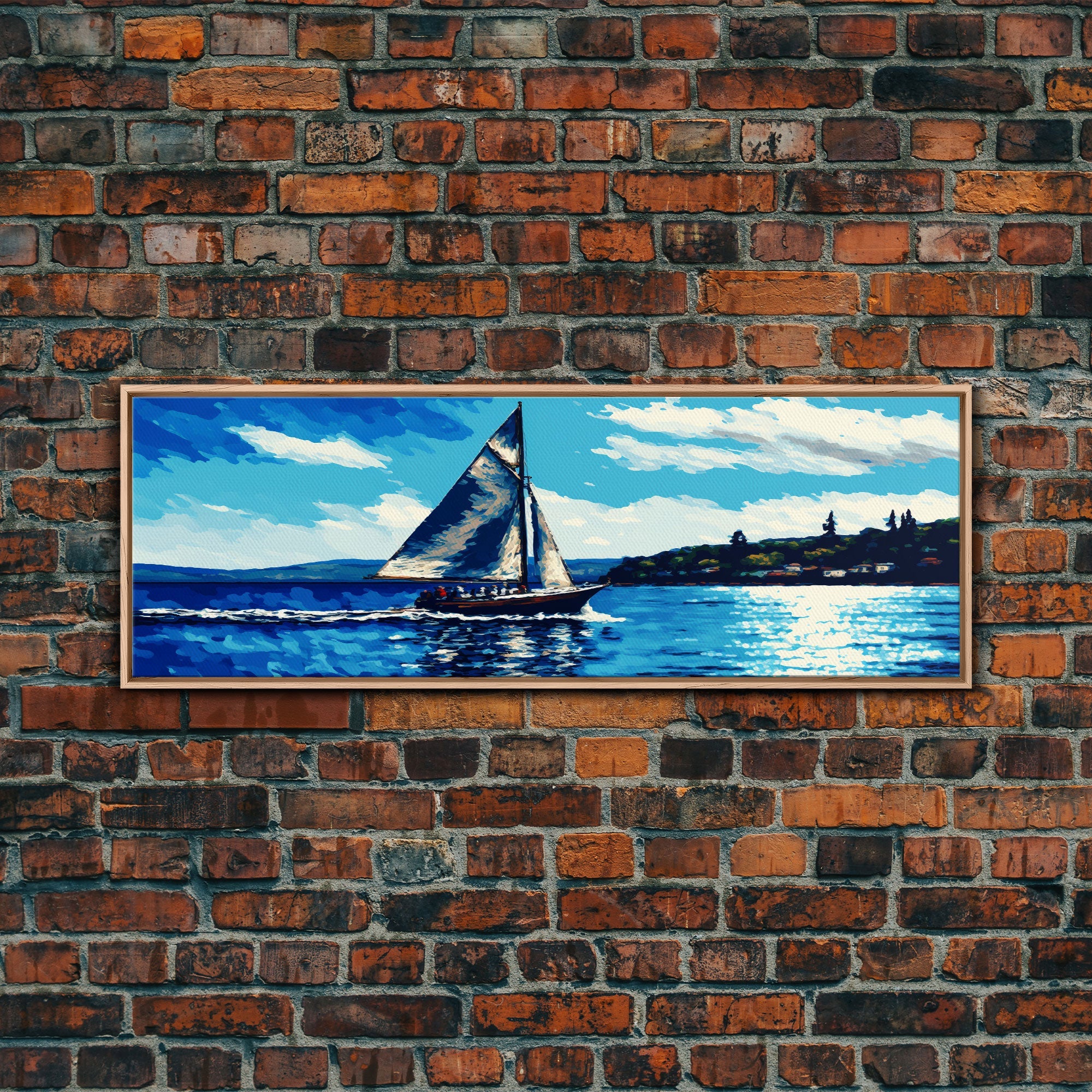 Come Sail Away - Panoramic Sail Boat Art - Framed Canvas Print - Oil Painting Reprint - Framed Art - Sailing On The Open Ocean