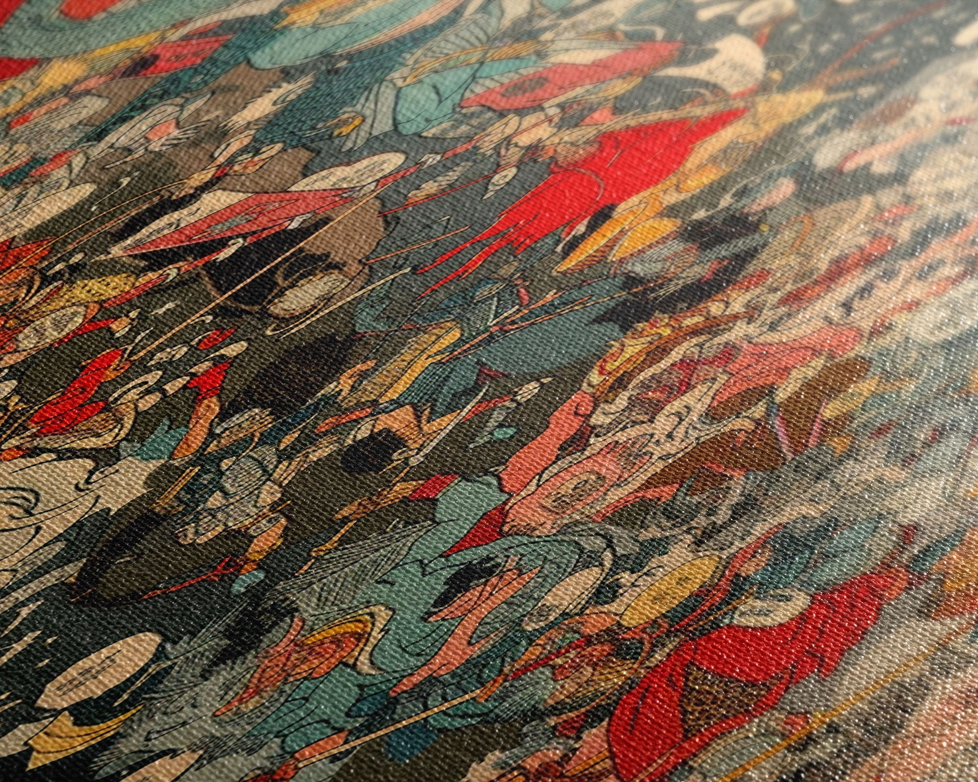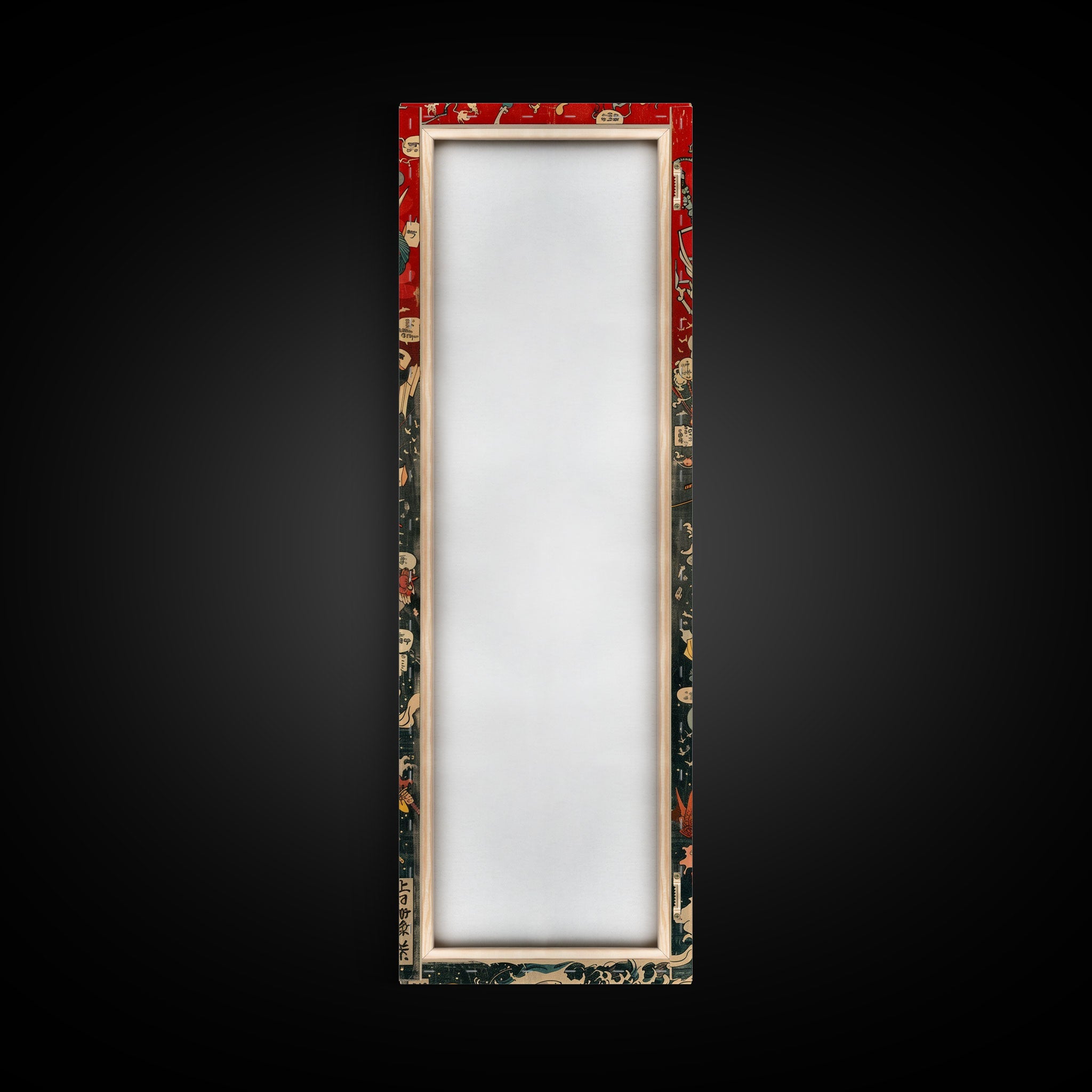 Complex Samurai Battle Scene With Mythical Creatures Framed Canvas Print Ukiyo-e Wall Art Wood Block Print Tall Art Japanese Style Skinny Art
